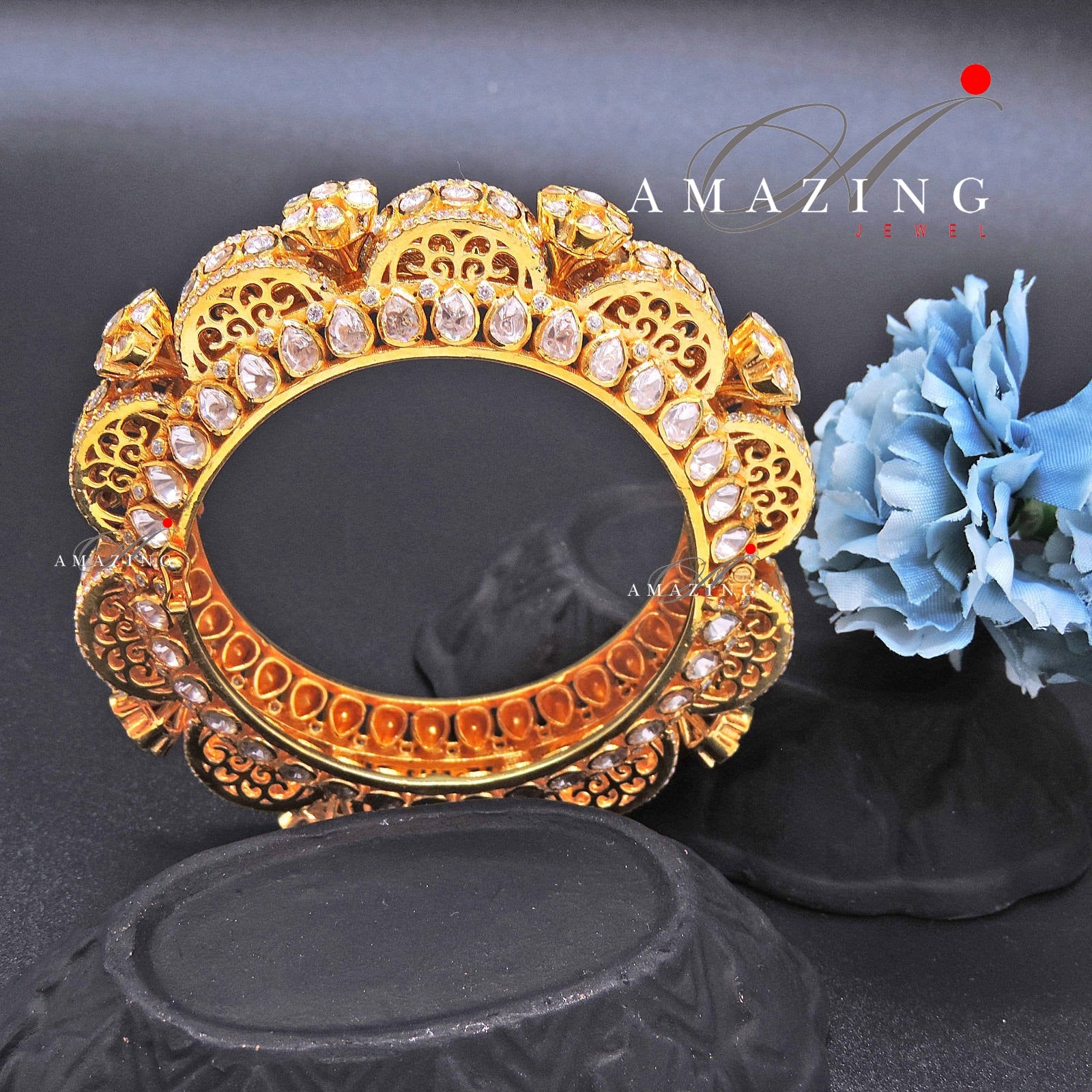 Silver Moissanite Polki Bangle, Indian Traditional Bangle, Wedding Polki Bangle, Bridal Bangle, Openable Bangle, Statement Bangle, Bangle