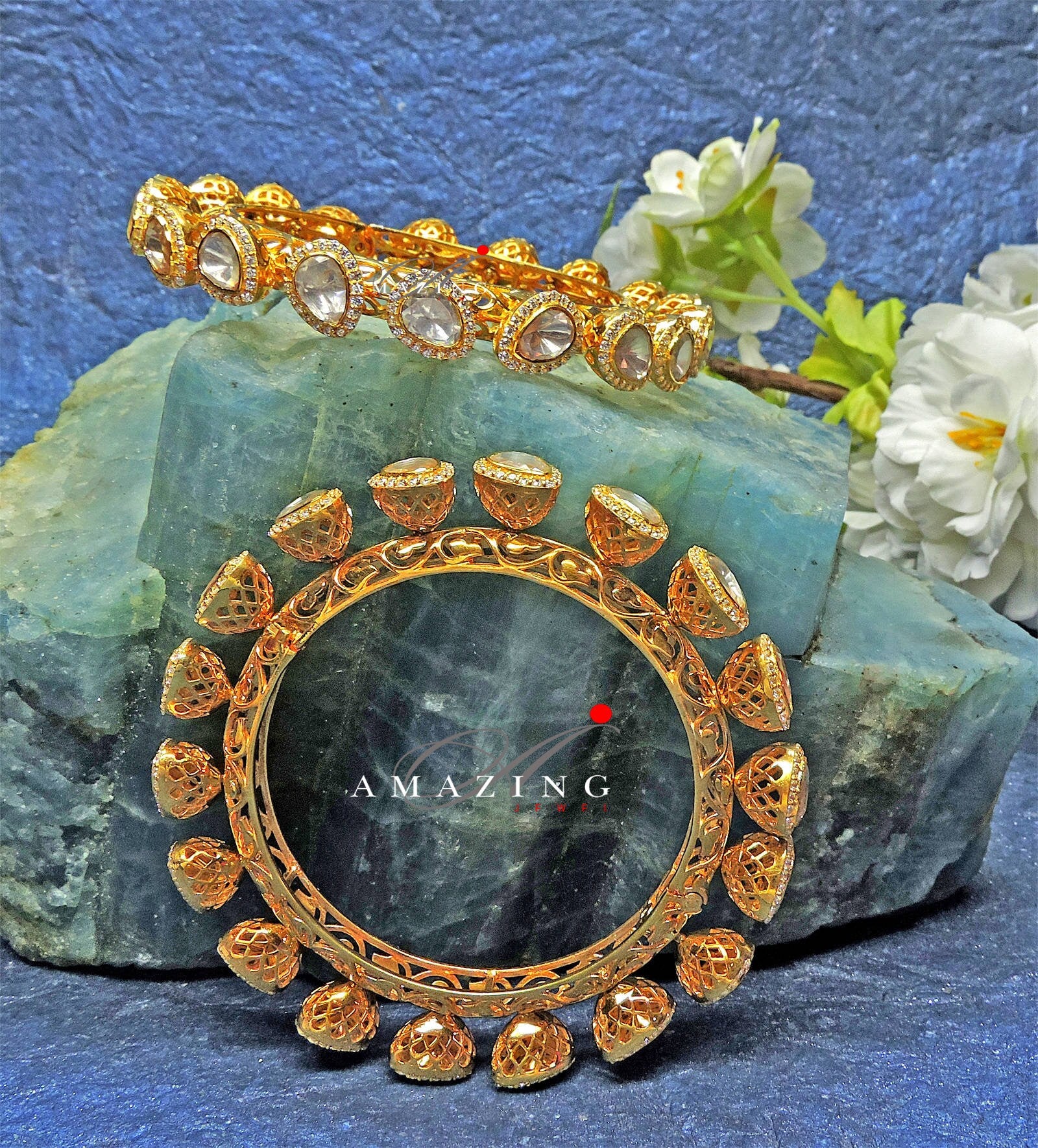 Silver Moissanite Polki Bangles , Moissanite Swarovski Bangles , Indian Traditional Jewelry , Statement Bangles , Indian Jewelry , Openable