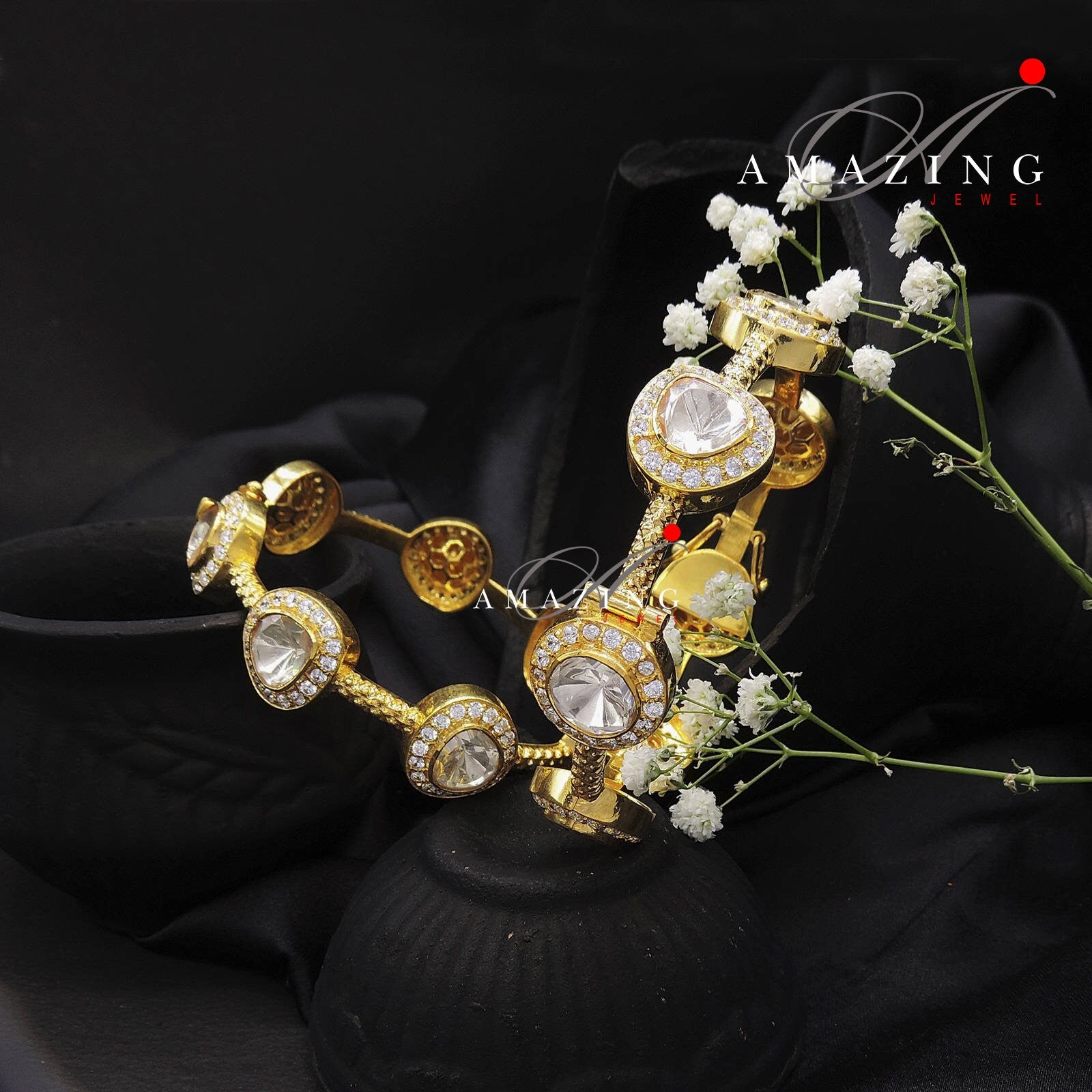 Silver Moissanite Polki Bangles , Swarovski Polki Indian Traditional Bangles , Indian Polki Bangles ,Wedding Polki Bangles, Openable Bangles
