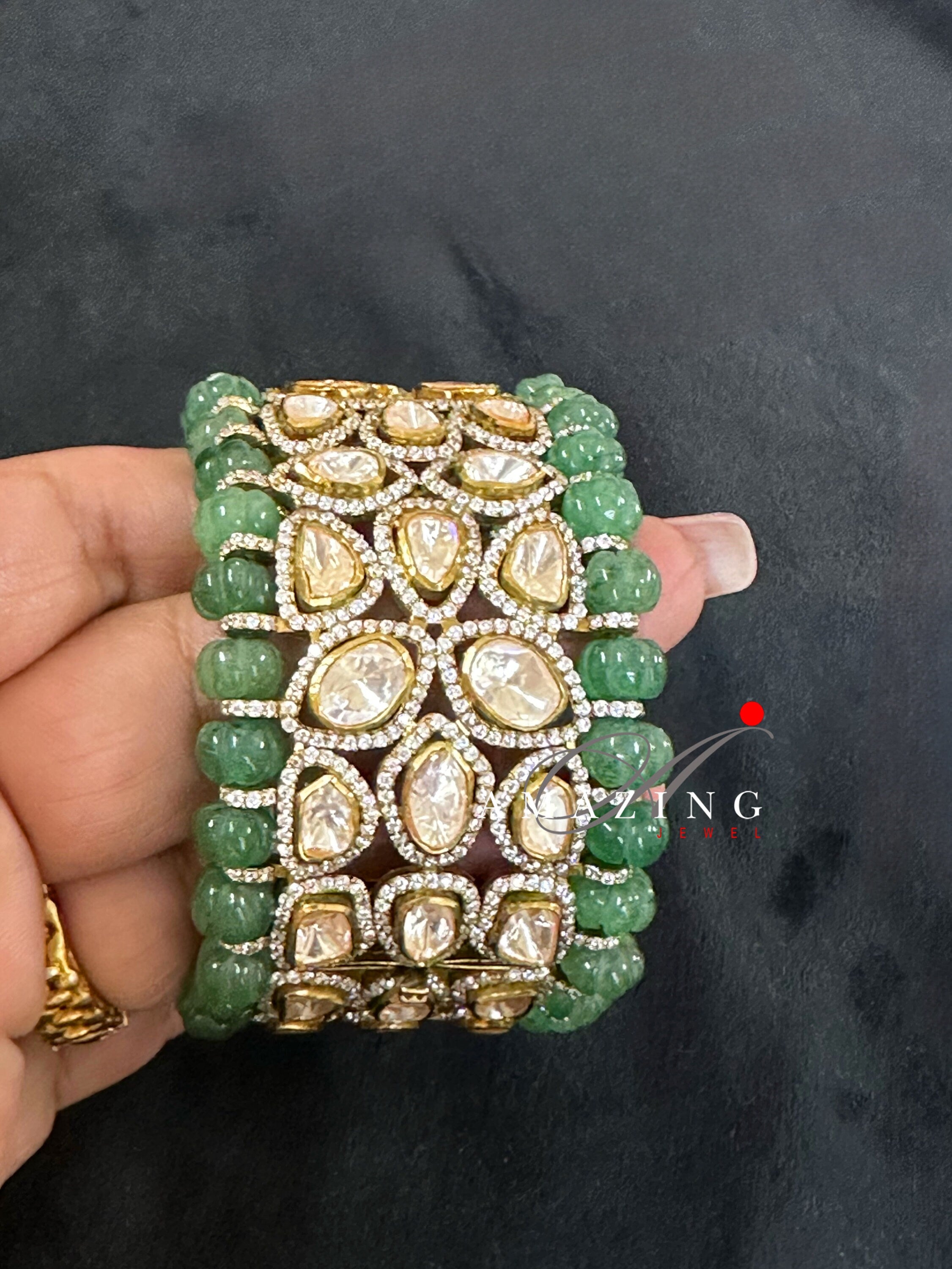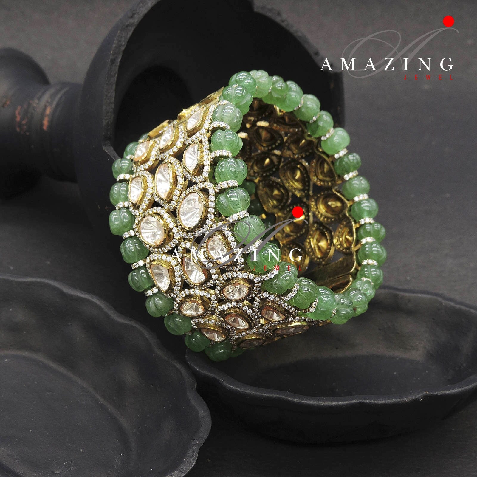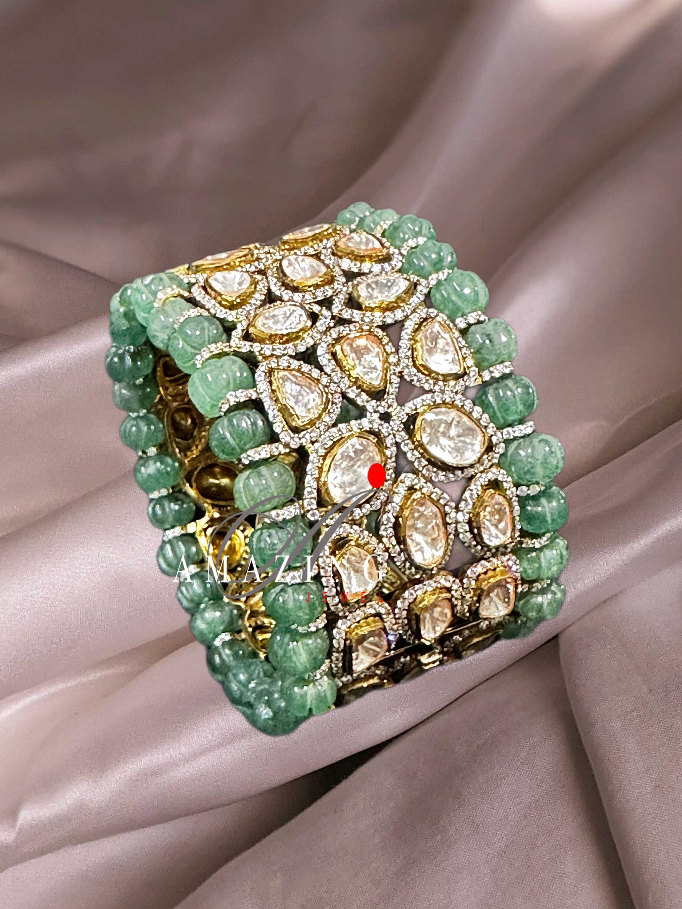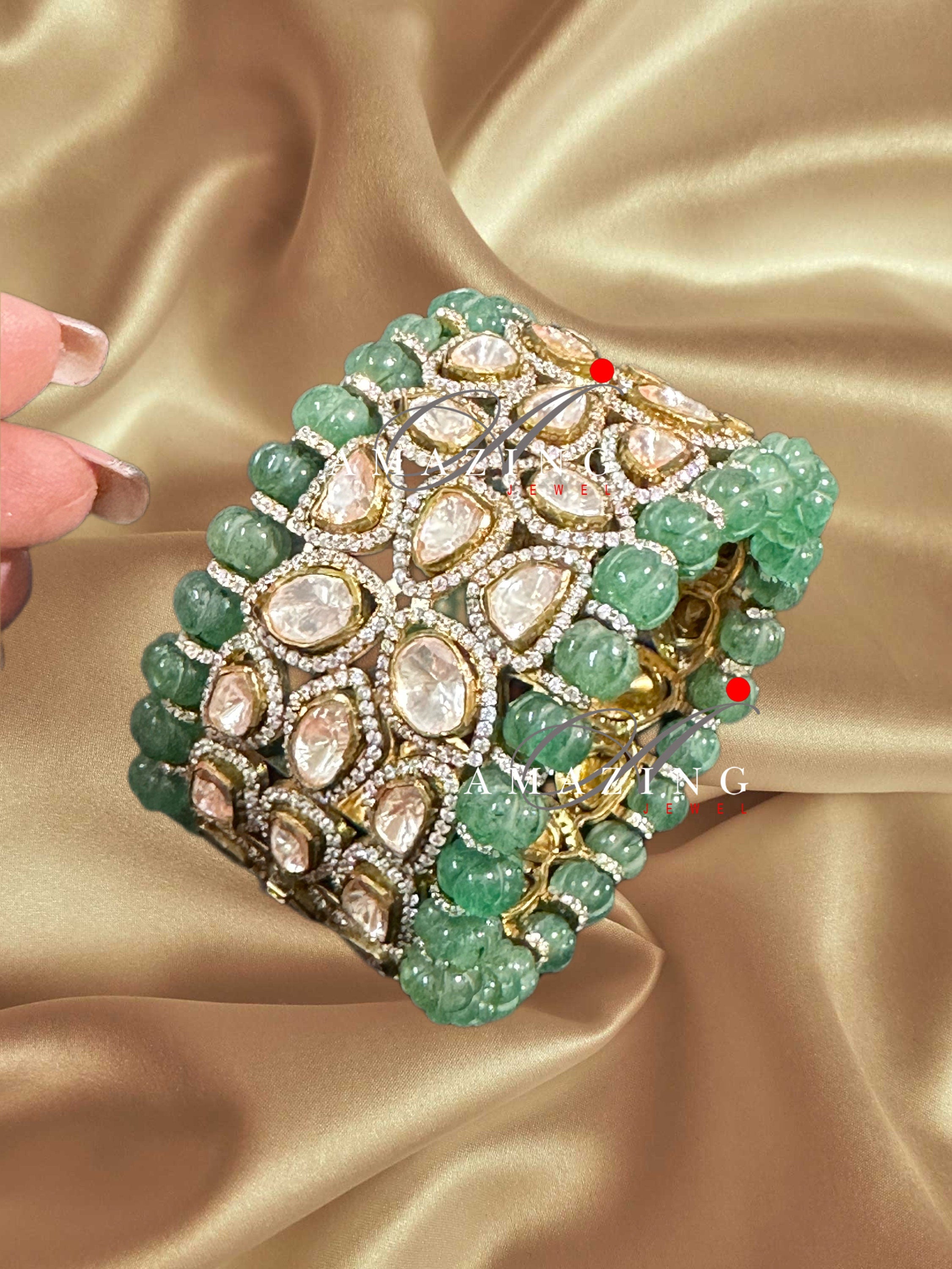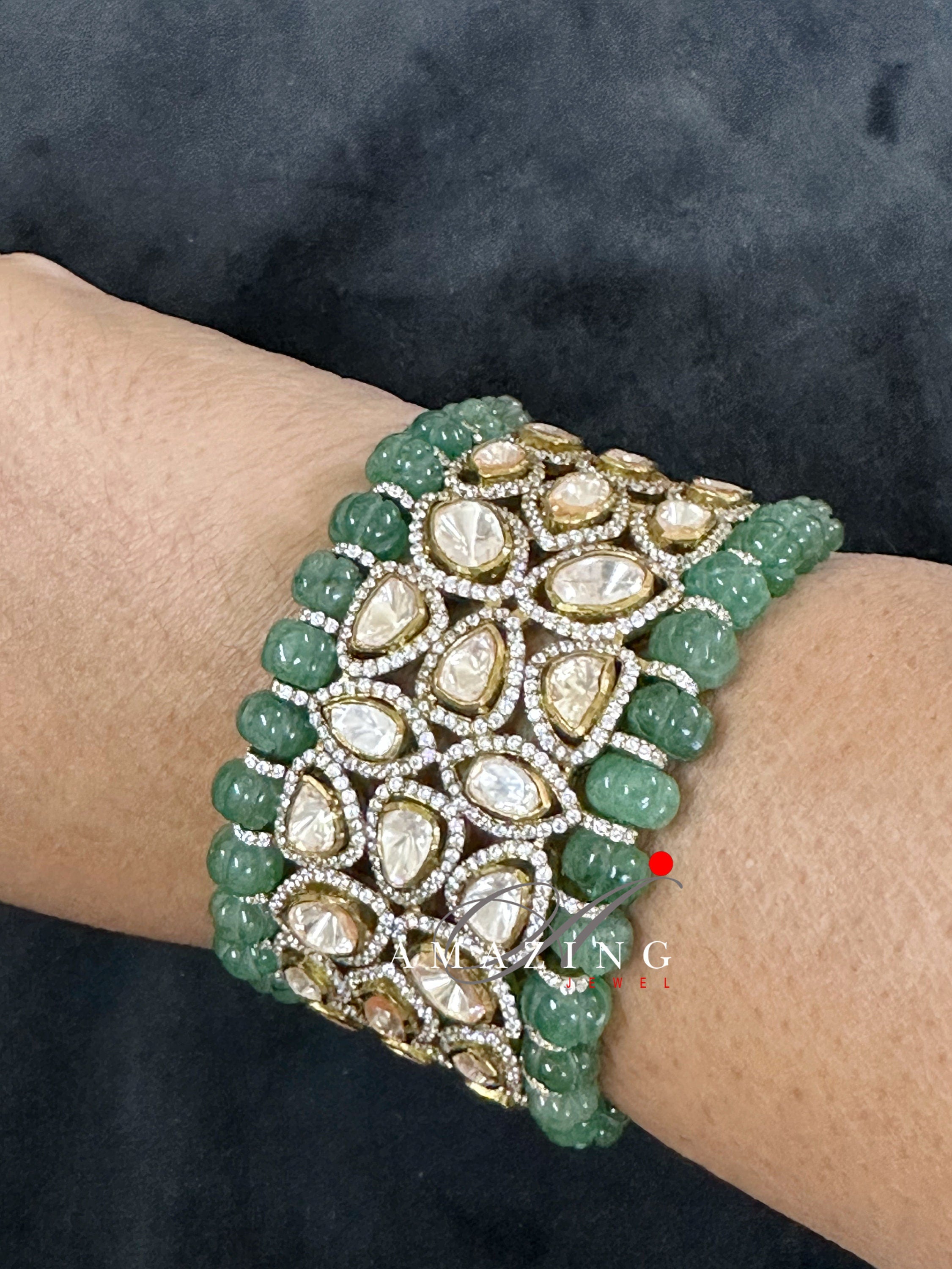 Silver Moissanite Polki Emerald Melon Oxidized Bangle, Moissanite Polki , Bangle, Wedding Jewellery, Sterling Silver, Polki Bangle, Kada