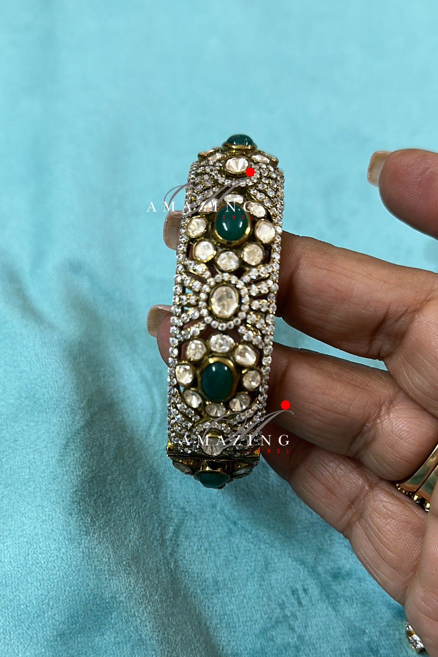 Silver Moissanite Polki Emerald Oxidized Bangle, Moissanite Polki Bangles, Bangles, Wedding Jewelery, Sterling Silver, Polki Bangles