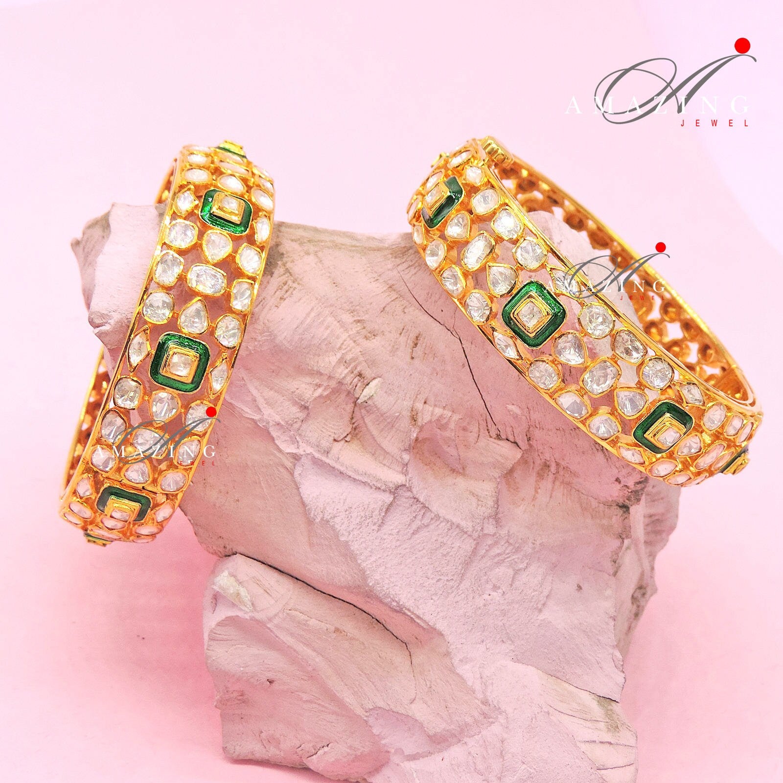 Silver Moissanite Polki Enamel Bangles, Polki Bangles, Traditional Bangles, Wedding Jewellery, Openable Bangles, Classic Bangles, Bangles