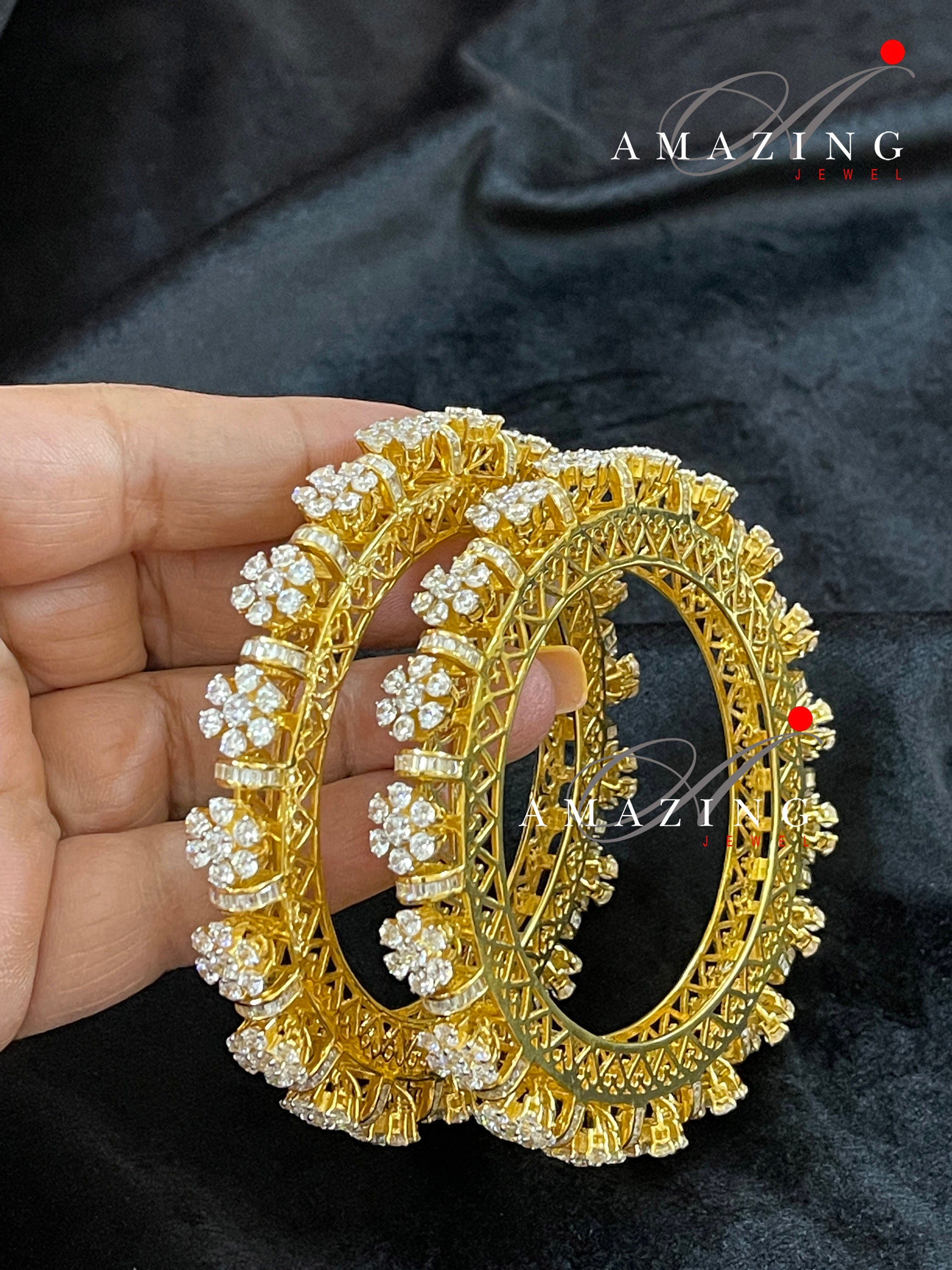 Silver Swarovski Cubic Zirconia Bangle,Traditional Bangles,Bangles,Wedding Jewelry ,925 Silver Studded Bangles ,Indian Wedding Jewellery