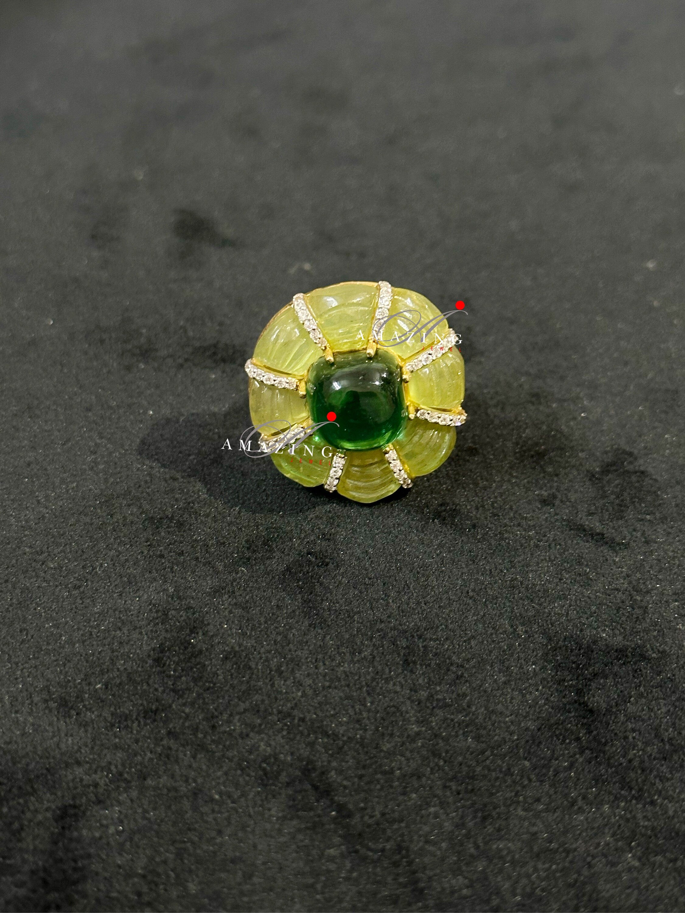 Silver Swarovski Emerald Carved Ring, Cocktail Ring, Cubic Zirconia Emerald Ring, Statement Ring, Silver Cocktail Ring, 925 Silver Ring