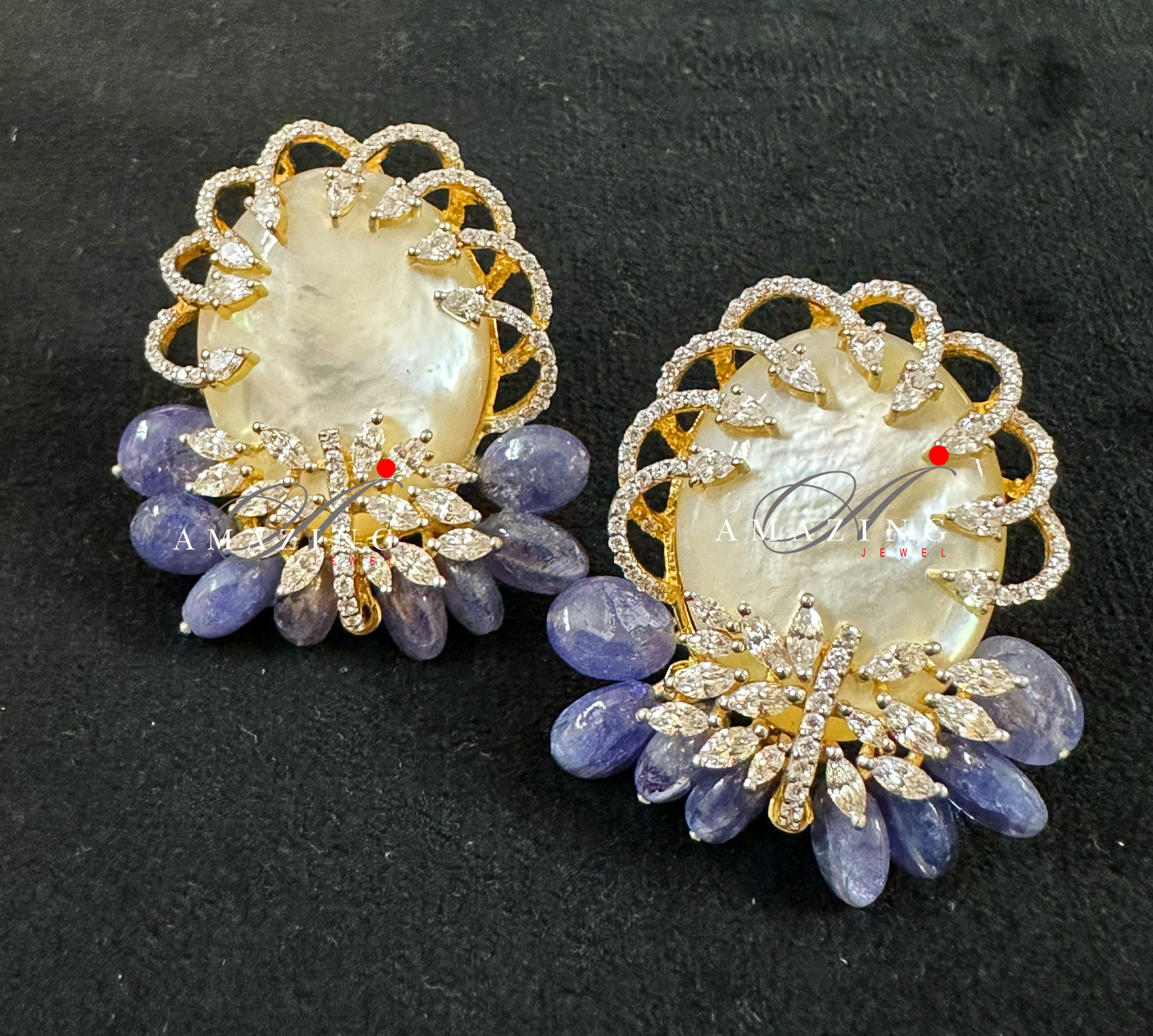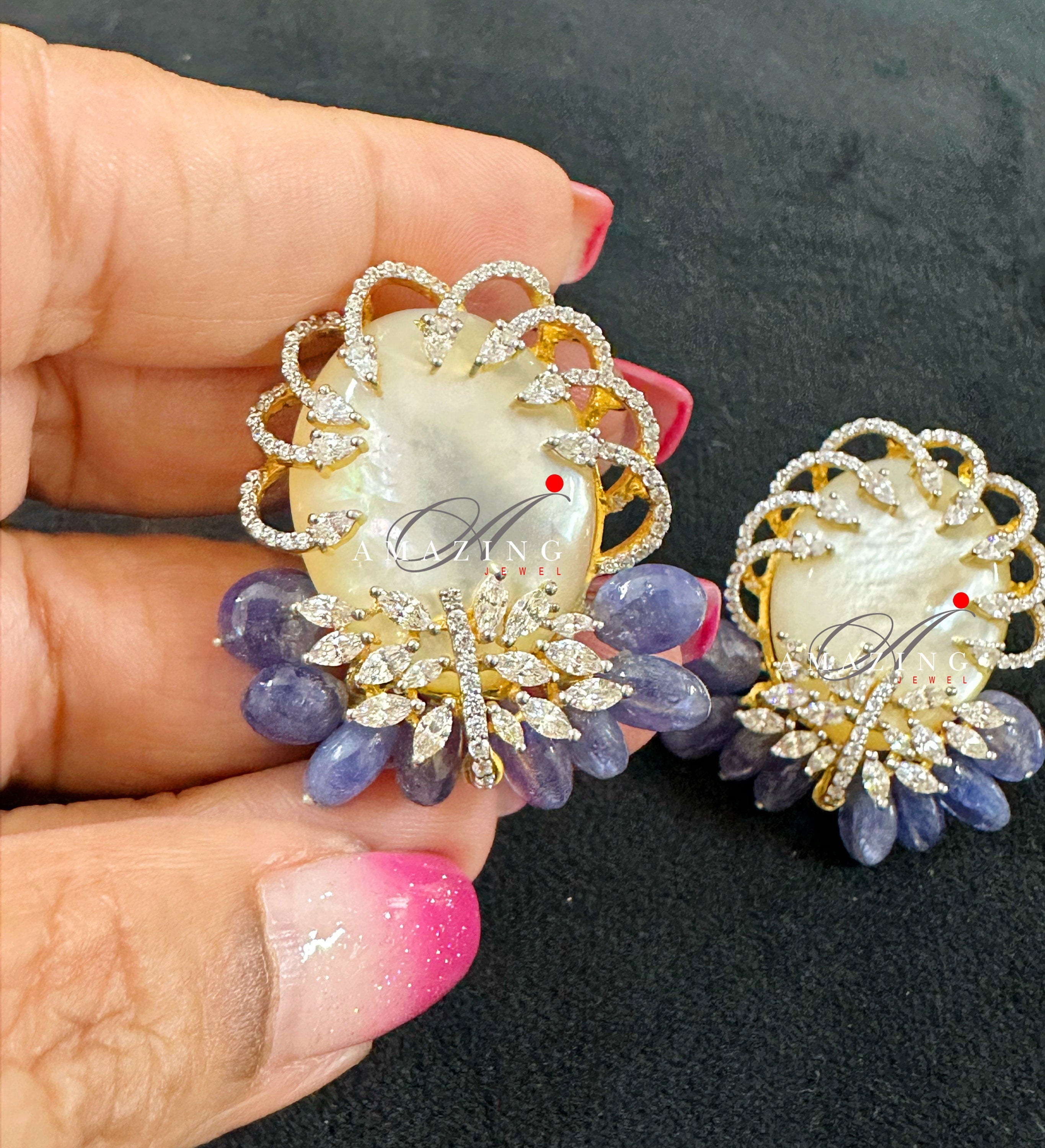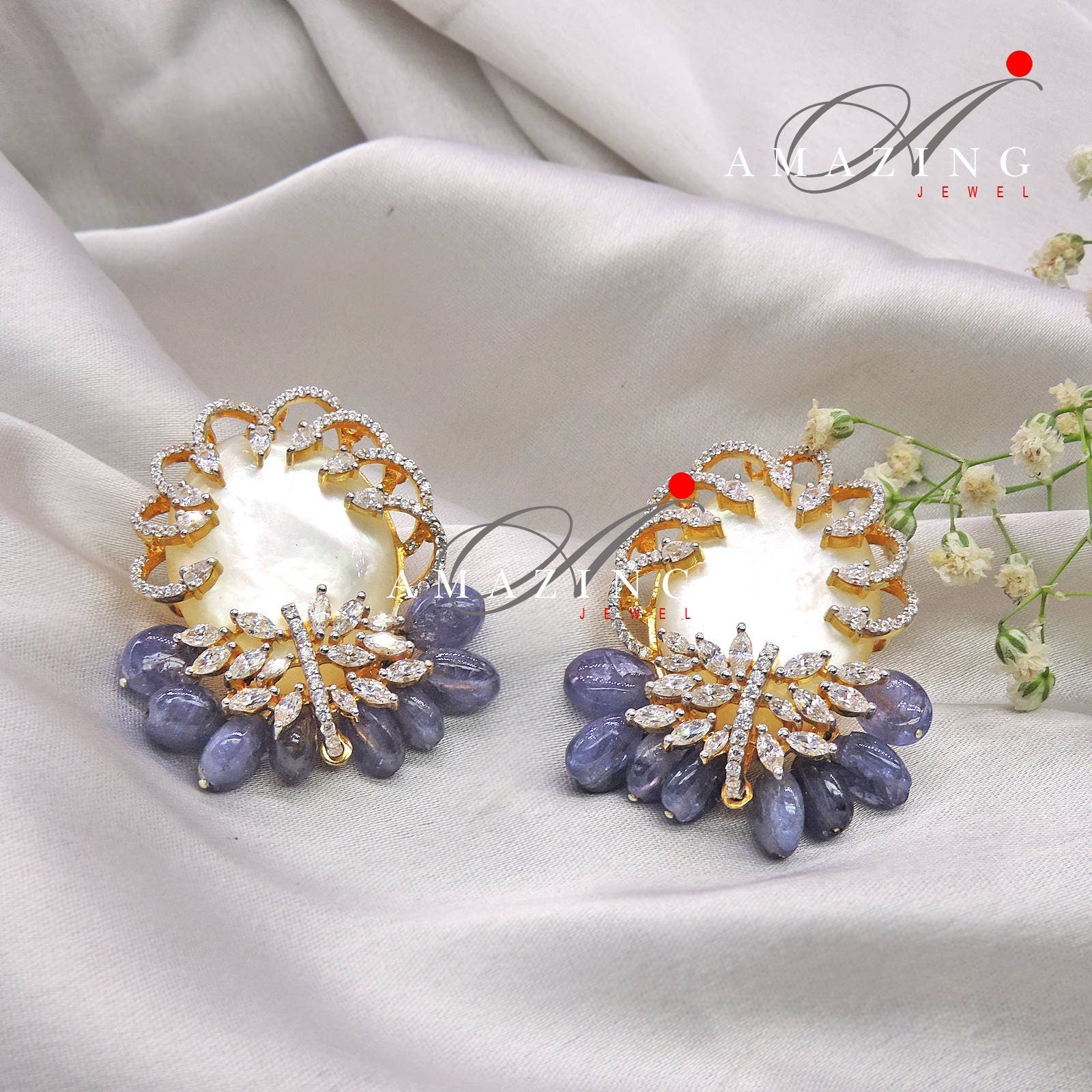 Silver Swarovski Cubic Zirconia Earring, Swarovski Studs, Contemporary Jewelery, Silver Studs, Fine Jewelery, Tanzanite Studs, Shell Pearl