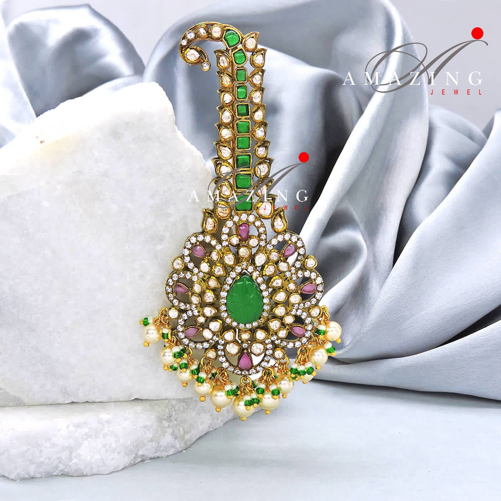 Silver Moissanite Polki Kilangi, Accessories, Moissanite Polki Turban Brooch, Kilangi, Groom Jewellery, Silver Kilangi, Groom Turban Brooch