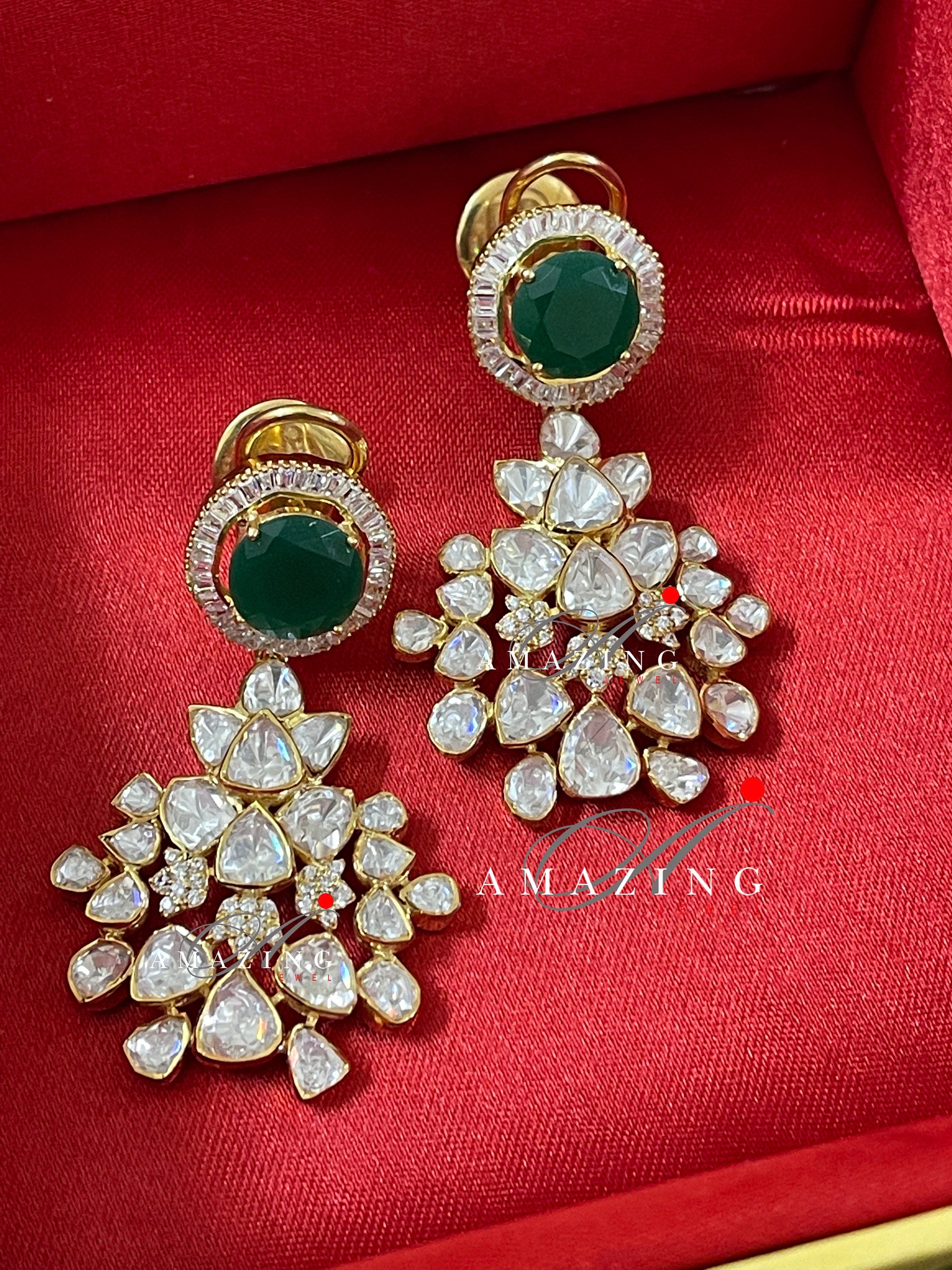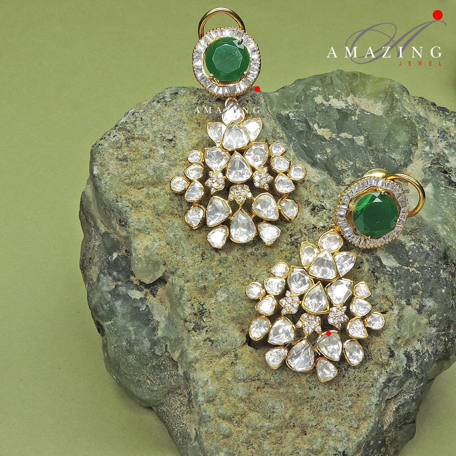 Silver Moissanite Polki Earring Moissanite Kundan Earring 925 Silver Earring Bridal Jewelery Traditional Jewelery Women Jewelry Bridal Jewel