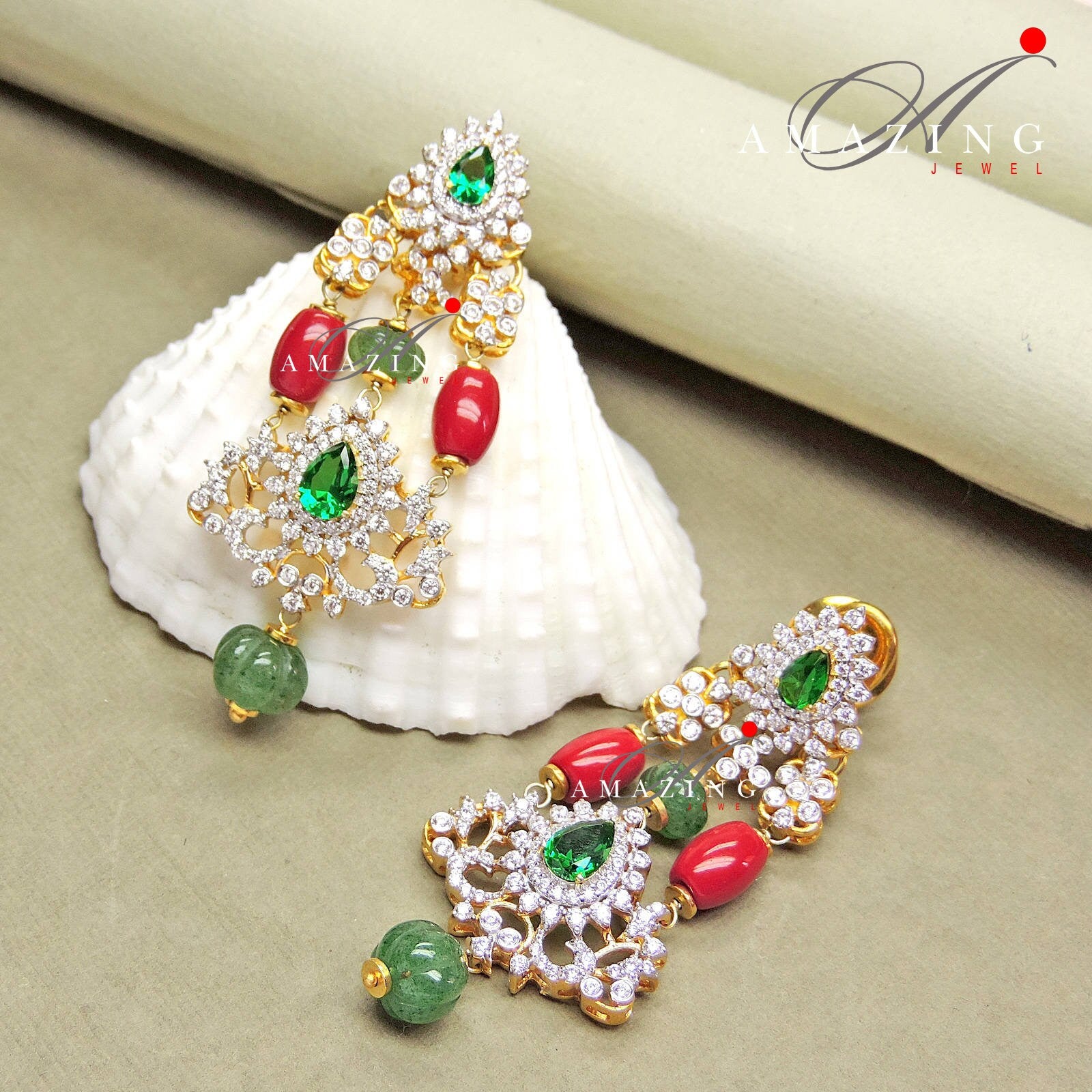 Silver Swarovski Hydro Emerald & Coral Stone Set Indian Wedding Jewelry Set Indian Traditional Jewelry 925 Sterling Silver Travel Jewelry
