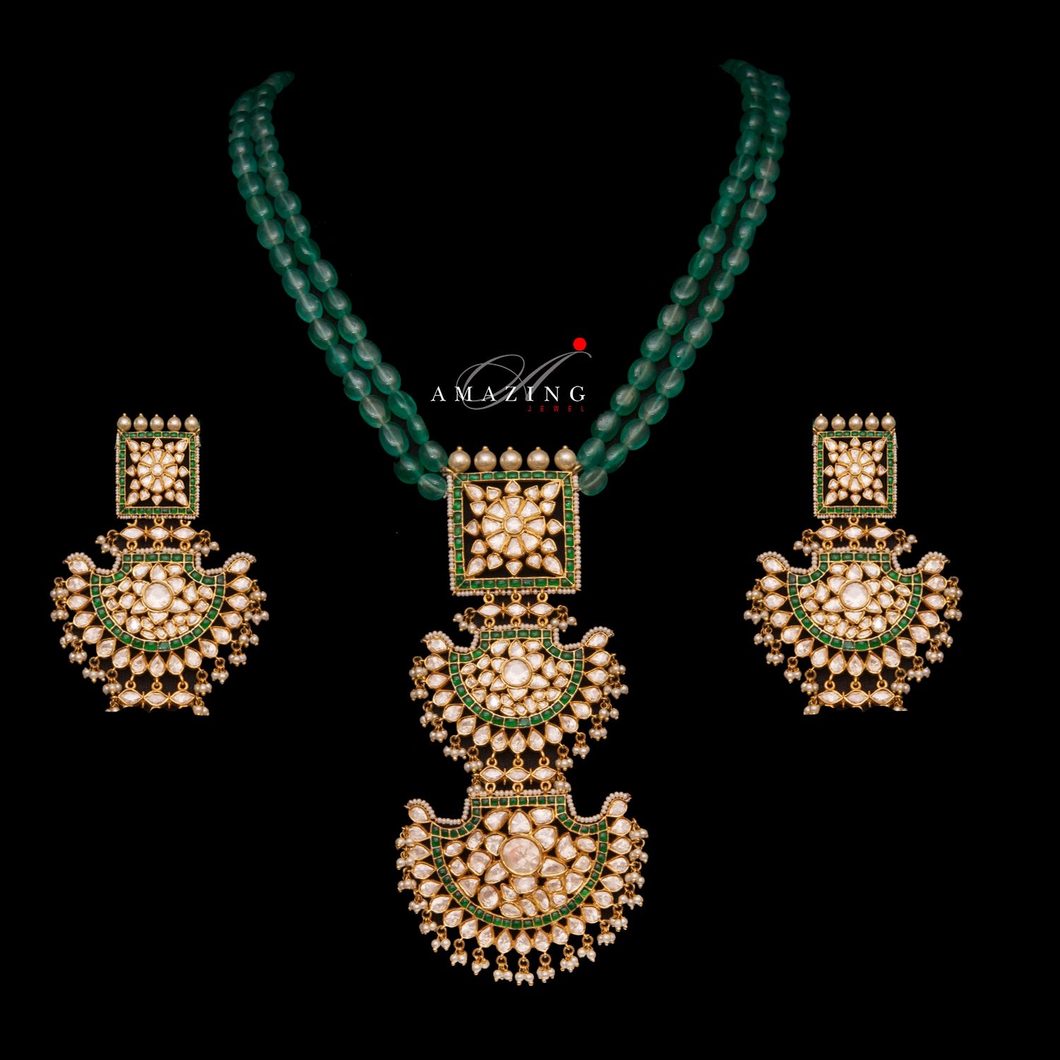 Silver Mossanite Polki Hydro Emerald Tumble & Chip Set,Indian Wedding Jewelry Set,Traditional Jewelry,Bridal Jewelry,Necklace set,Travel set