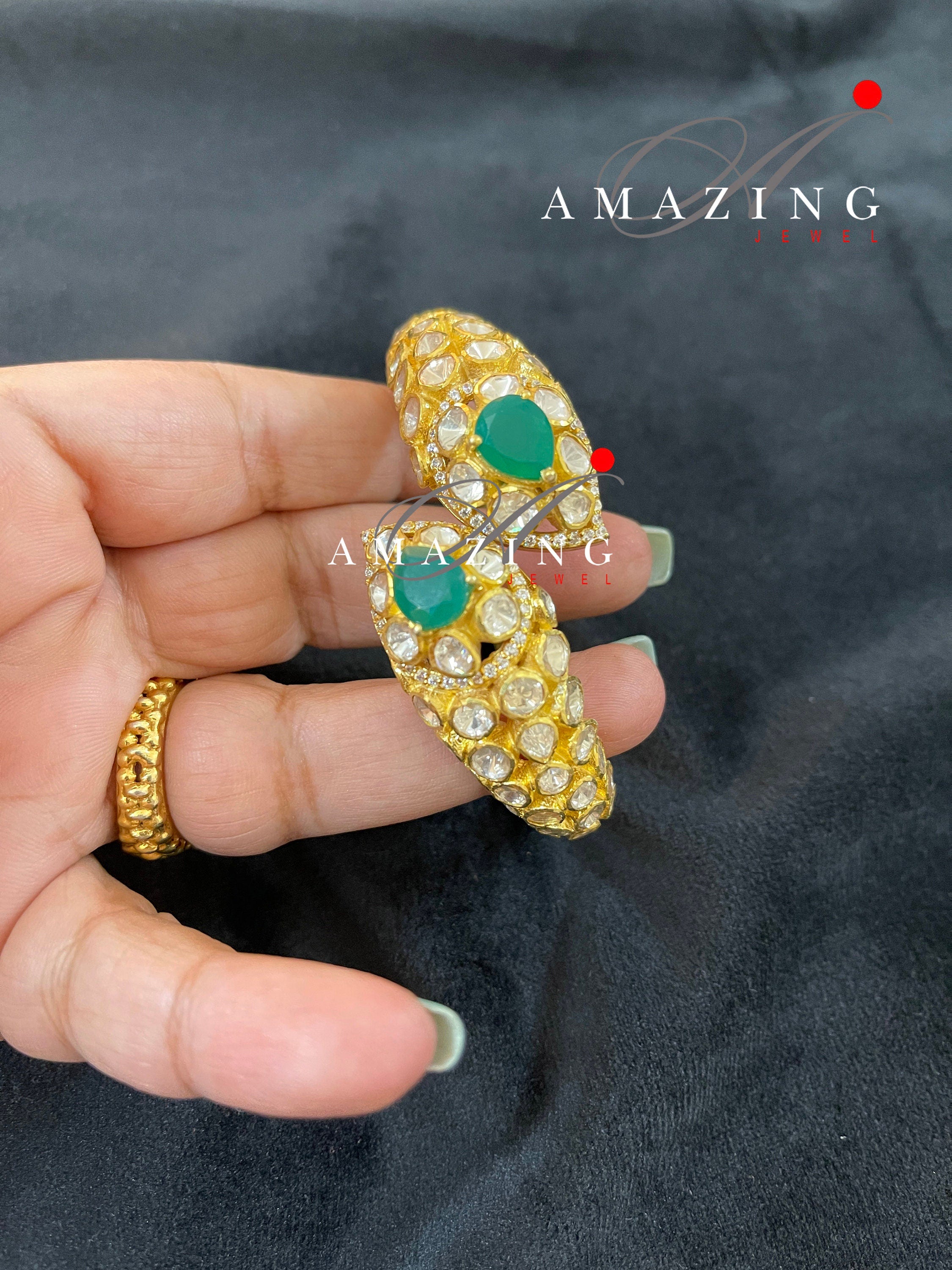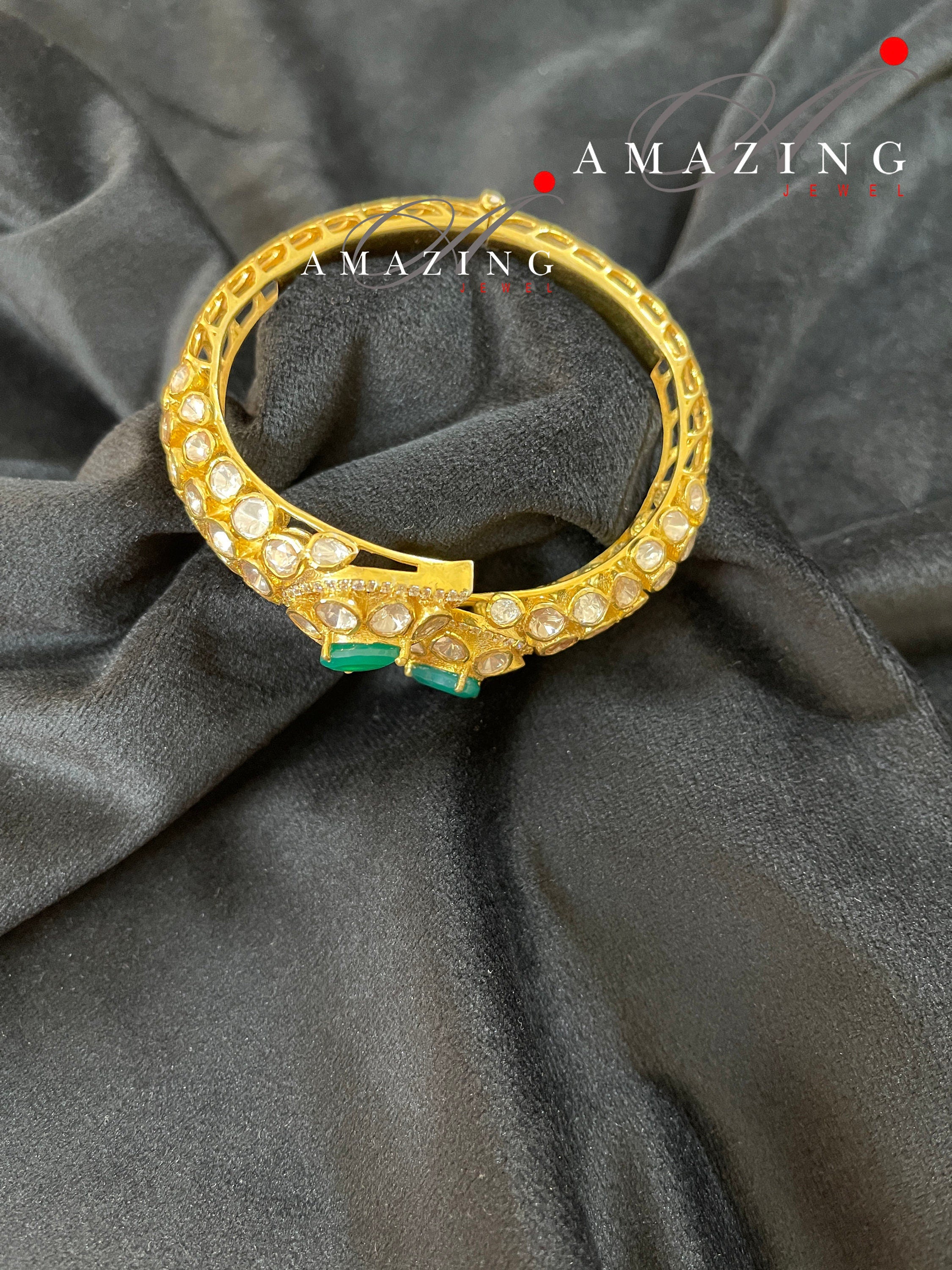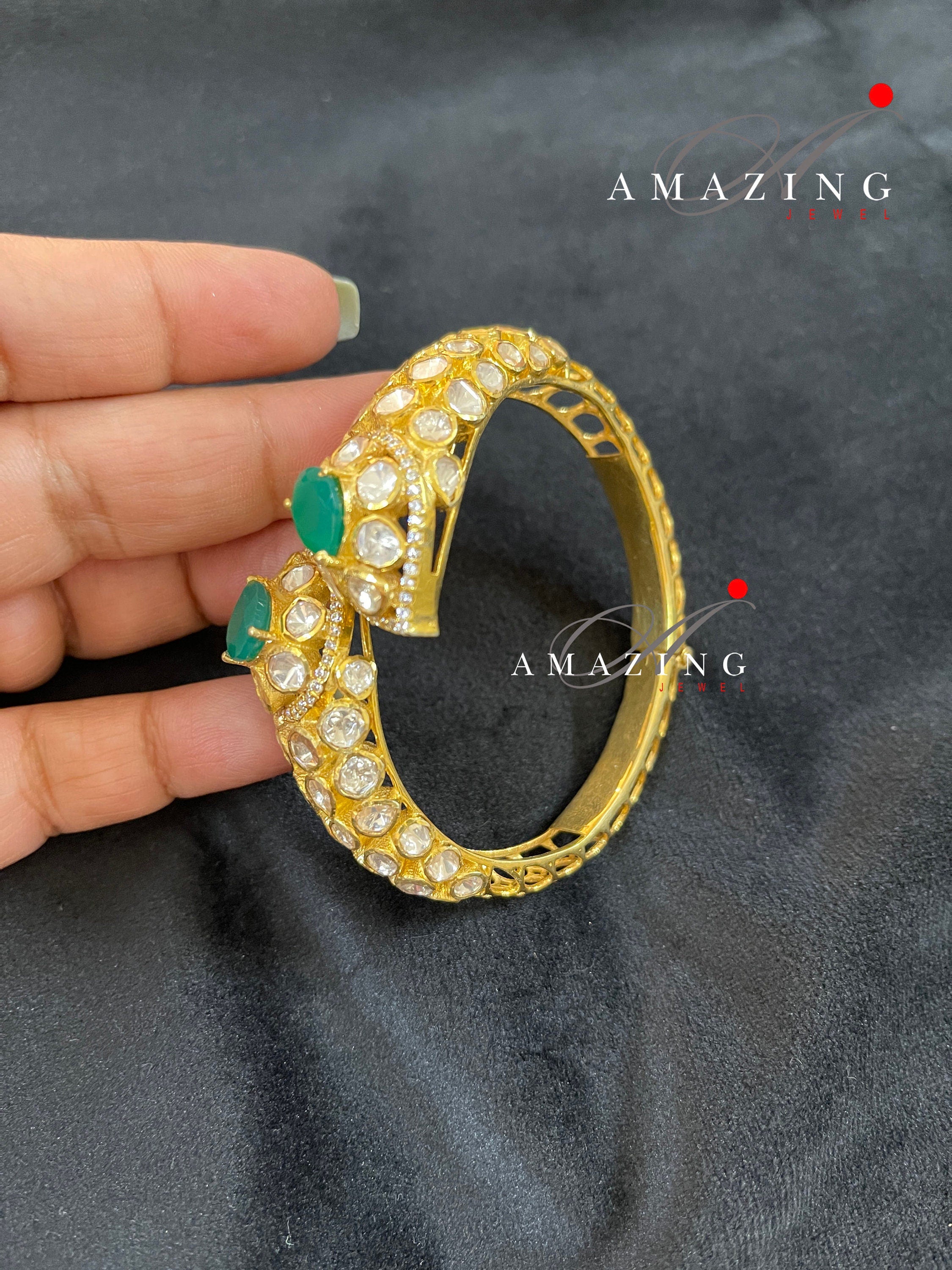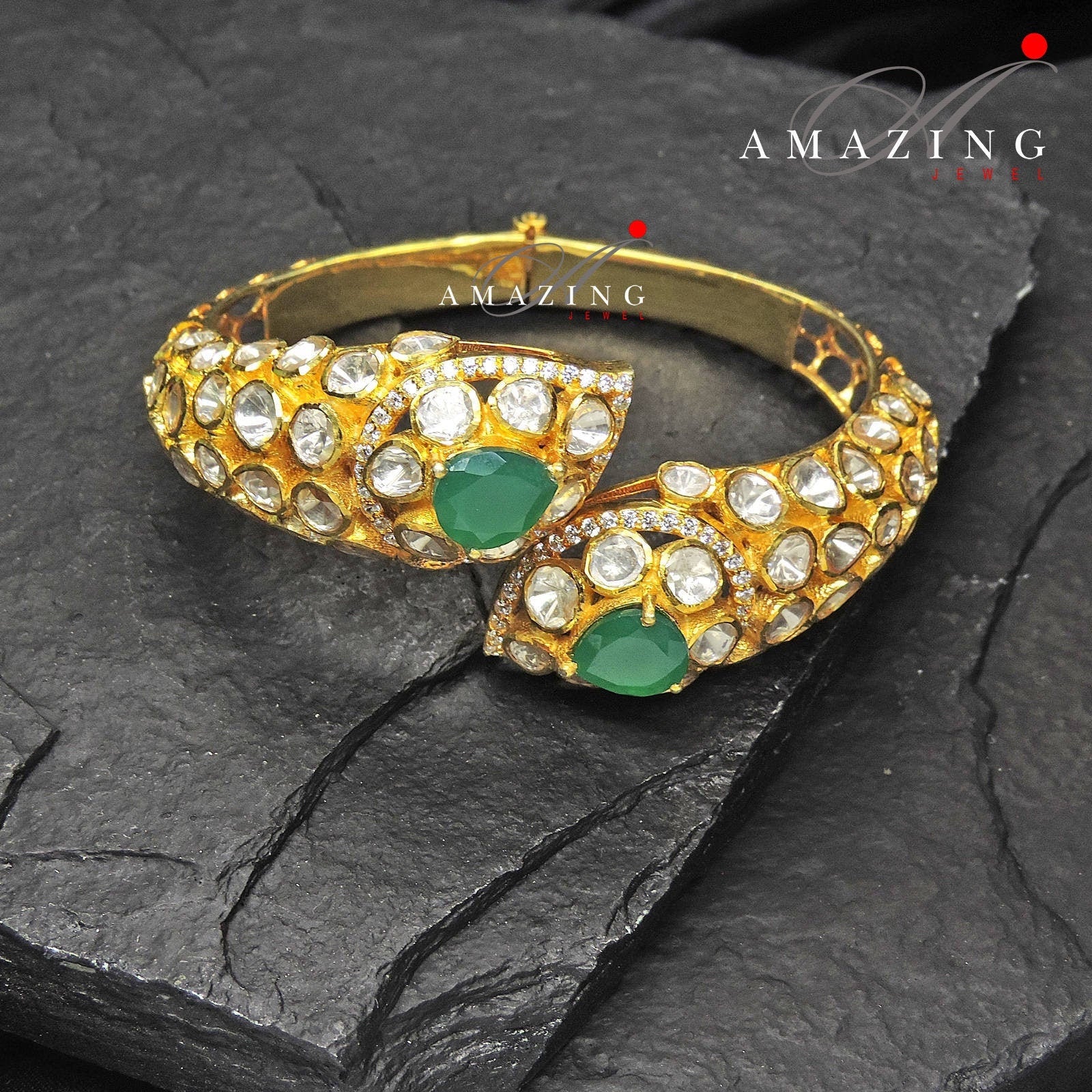 Silver Moissanite Polki Bracelet,Silver Polki Bracelet,Indian Polki Bracelet,Indian Bridal Jewellery,Indian uncut Jewellery,Travel Jewellery