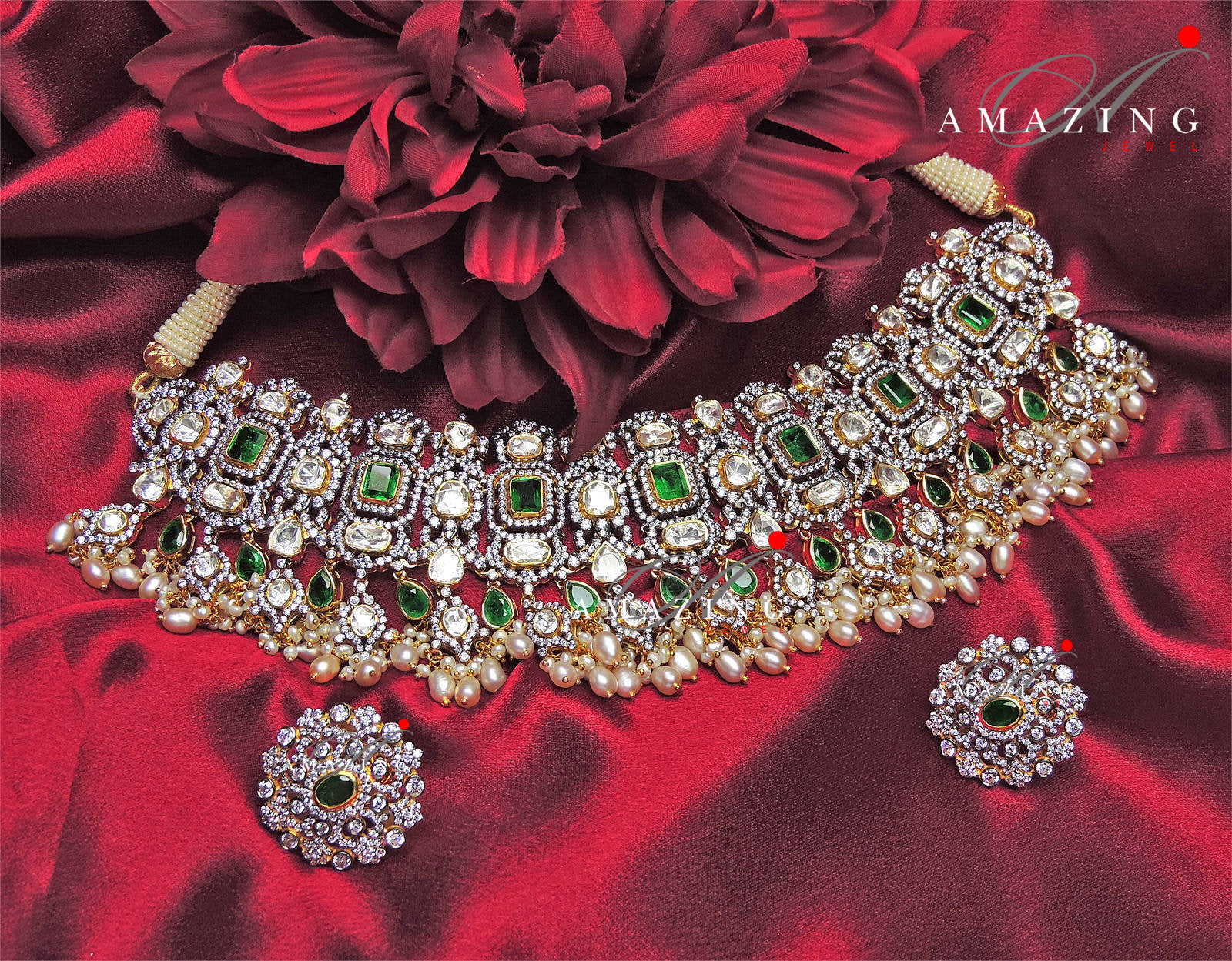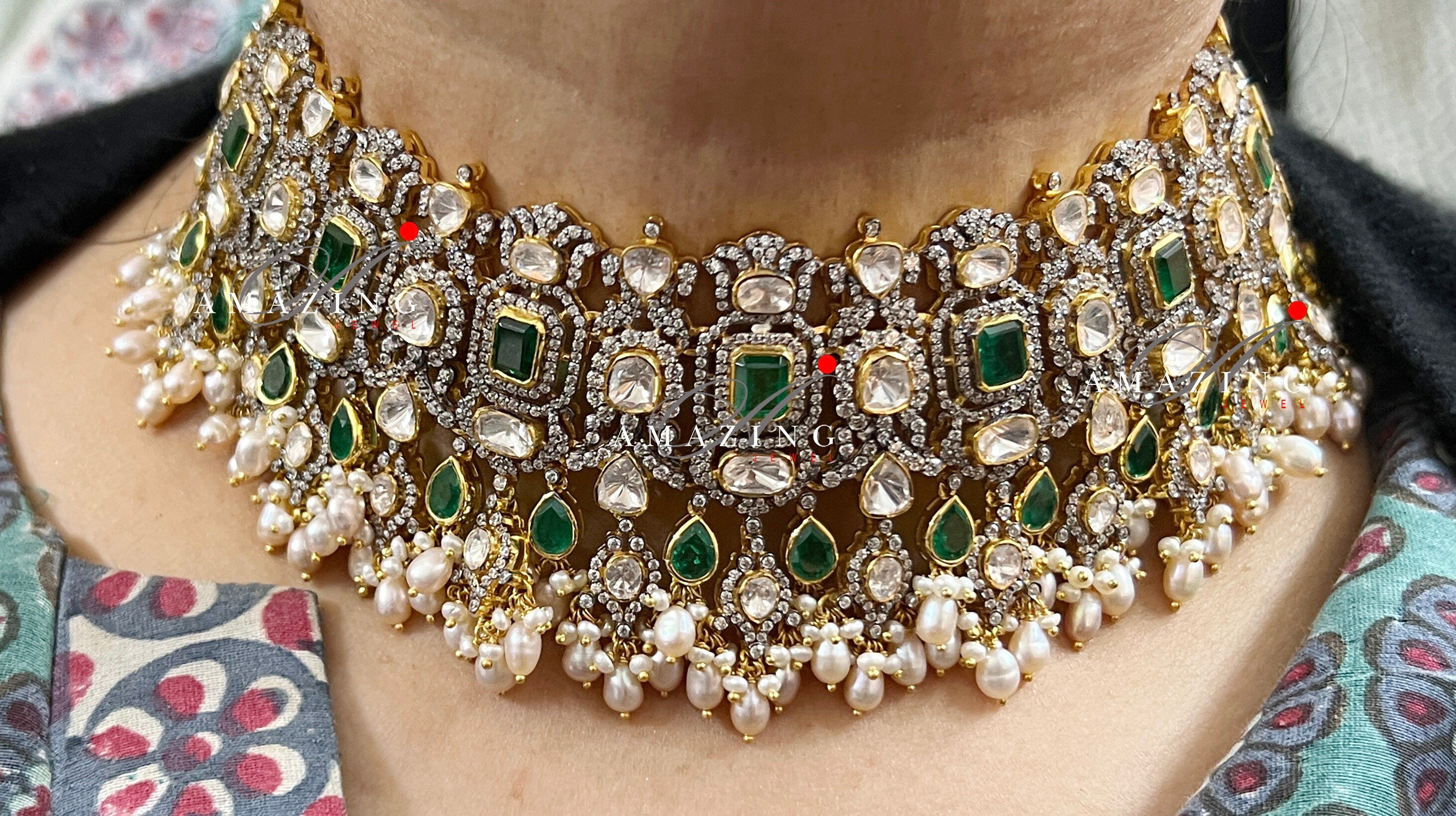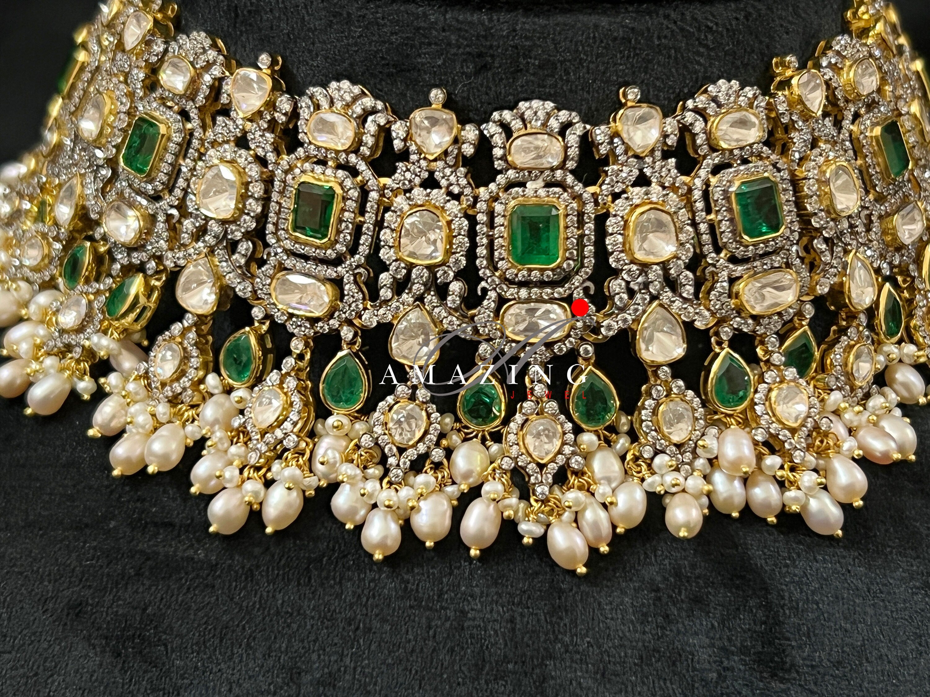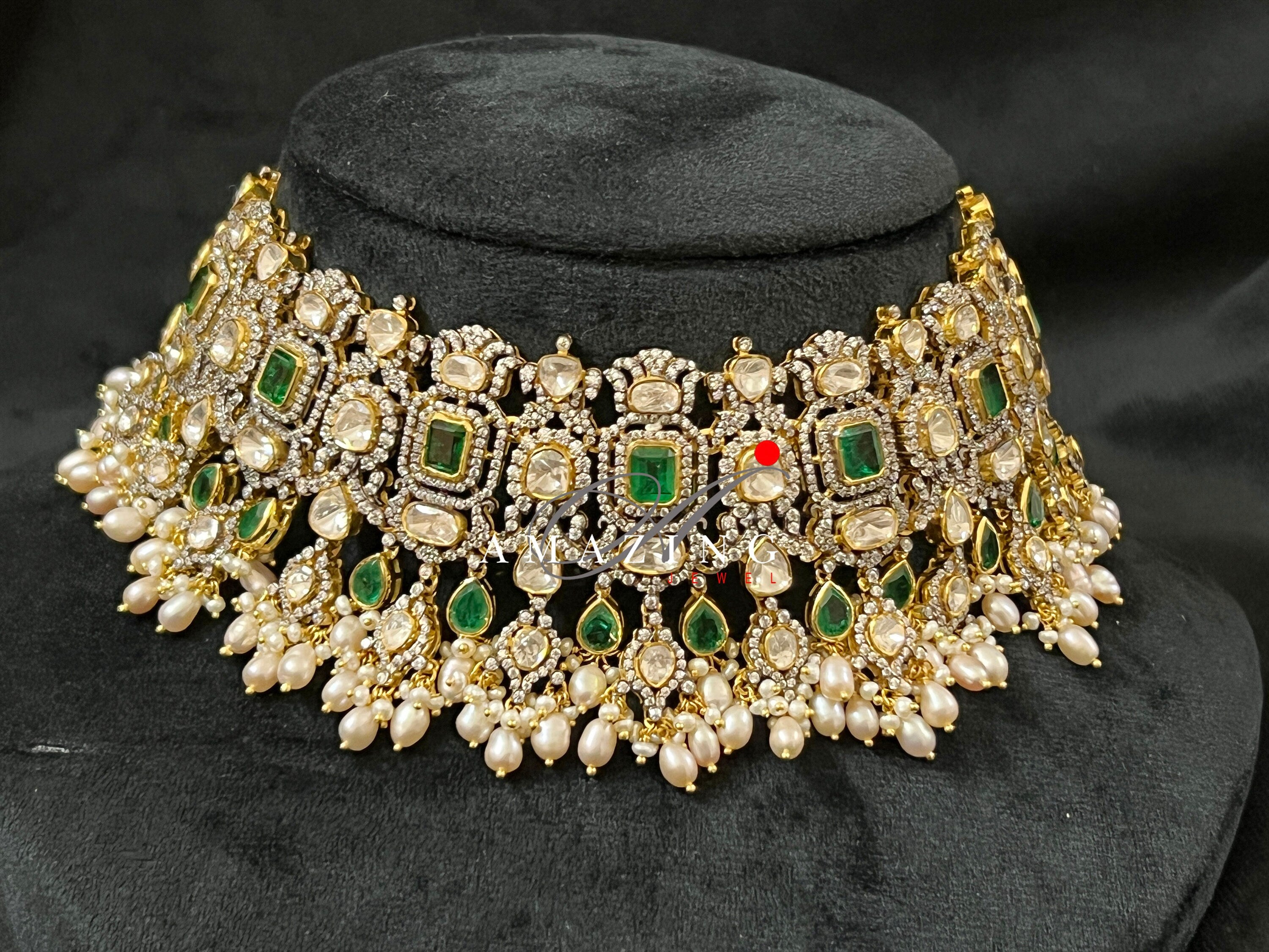 Silver Moissanite Polki Necklace, Bridal Necklace, Wedding Jewelry, Indian Jewelery, Silver Necklace, Polki Necklace, Oxidised Necklace