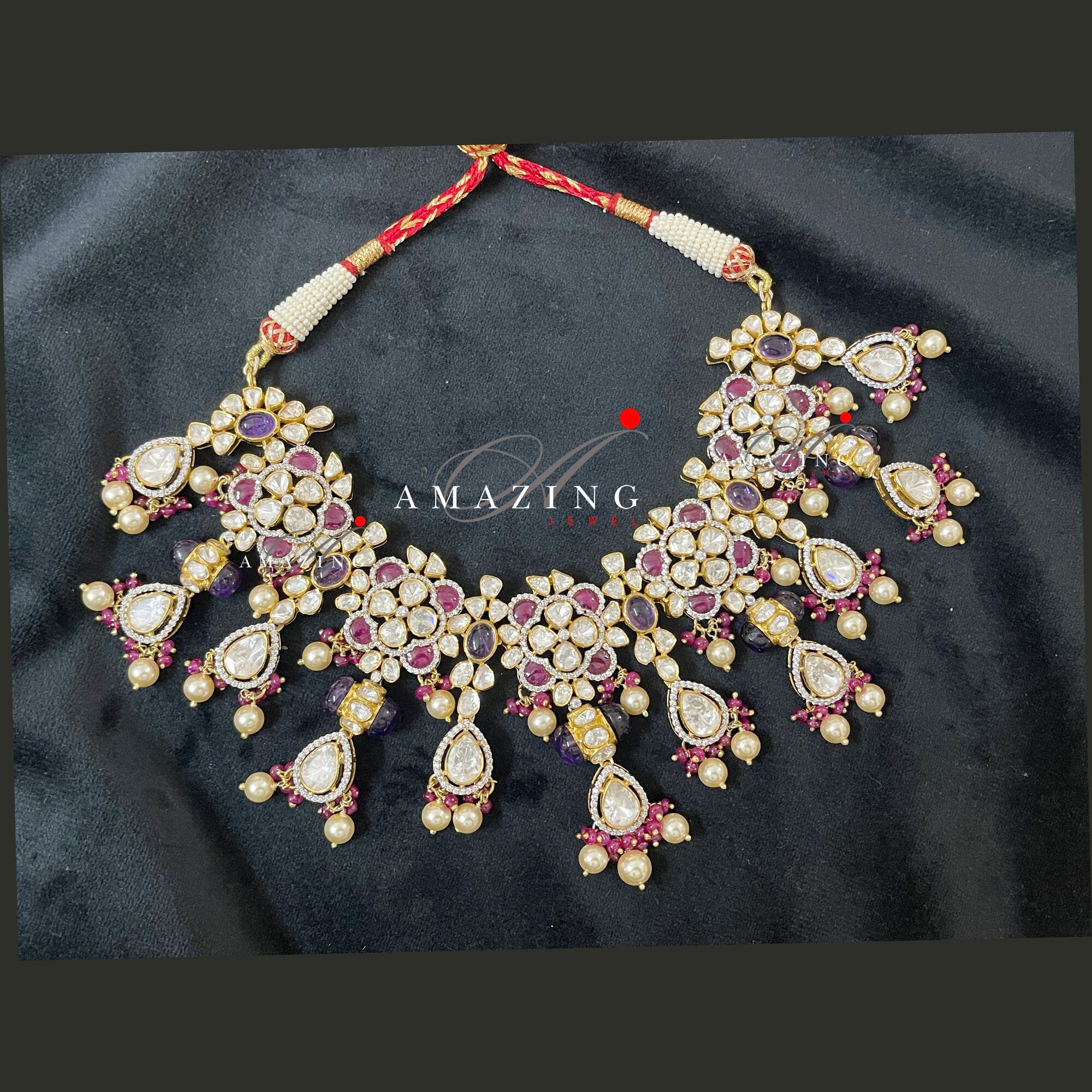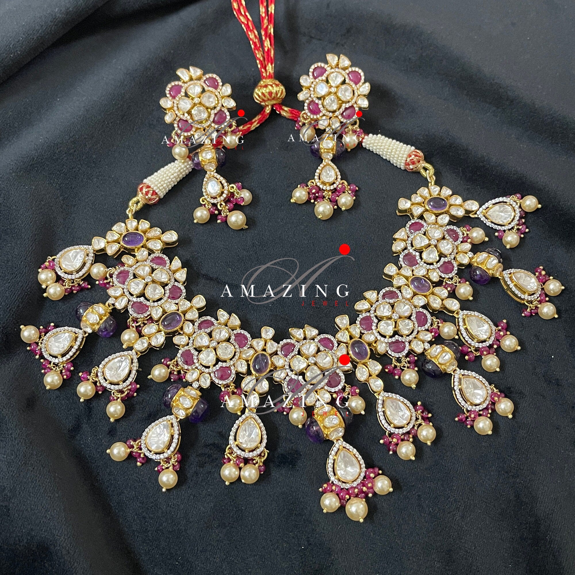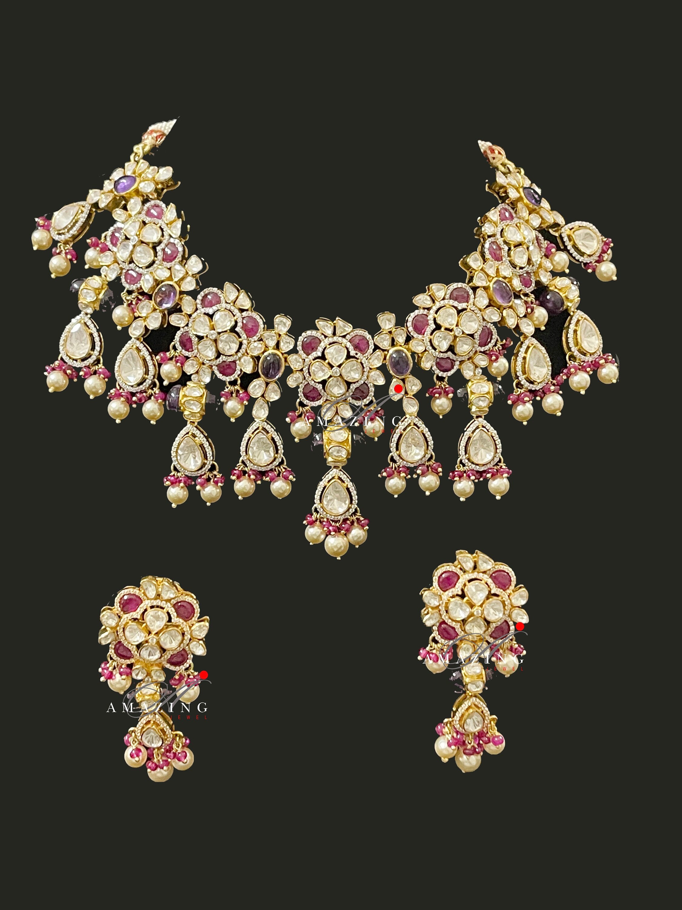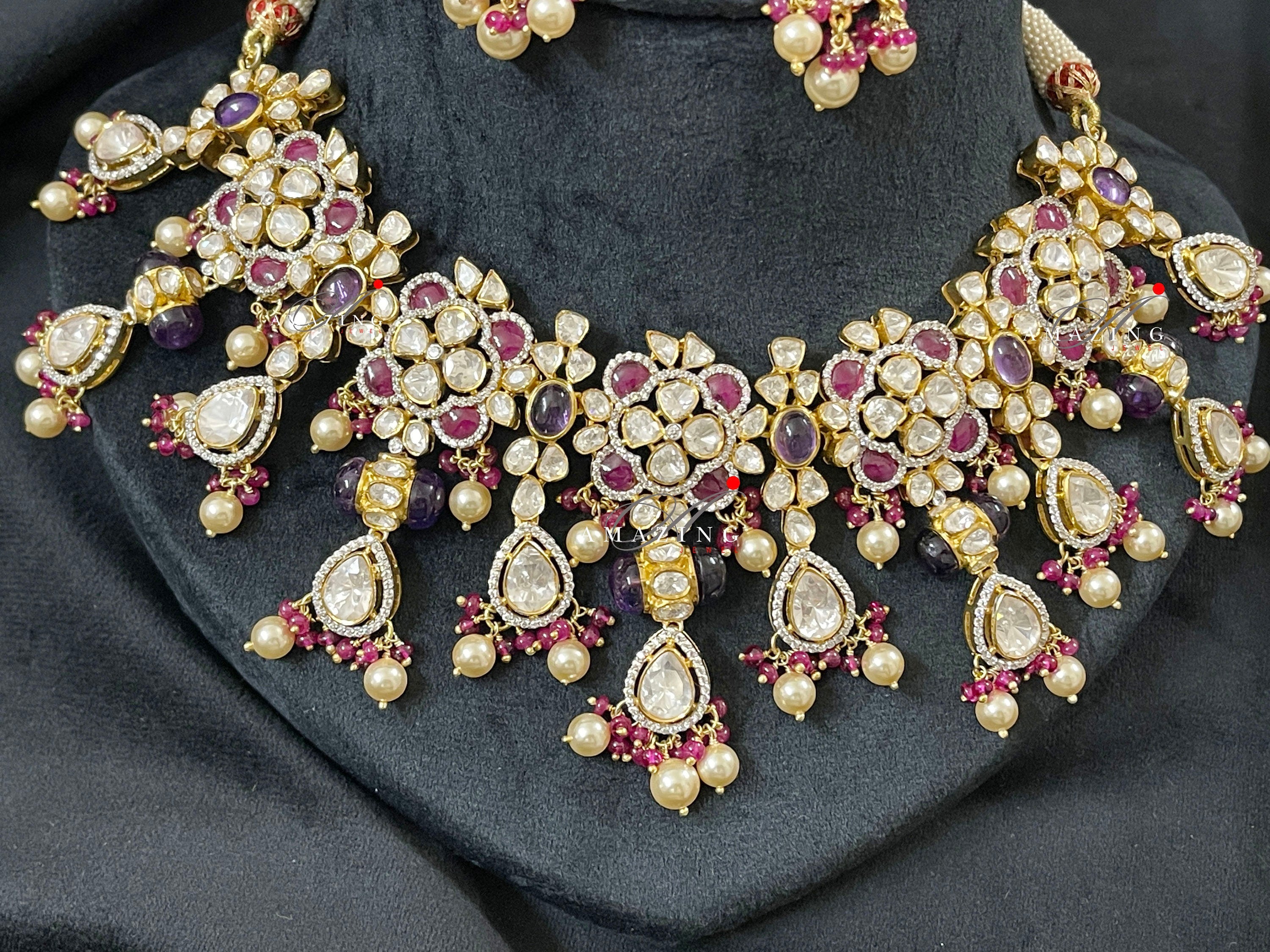 Silver Moissanite Polki Necklace Set Indian Traditional Wedding Jewelry Set Bridal Jewelry Women Jewelry 925 Sterling Silver Polki Set