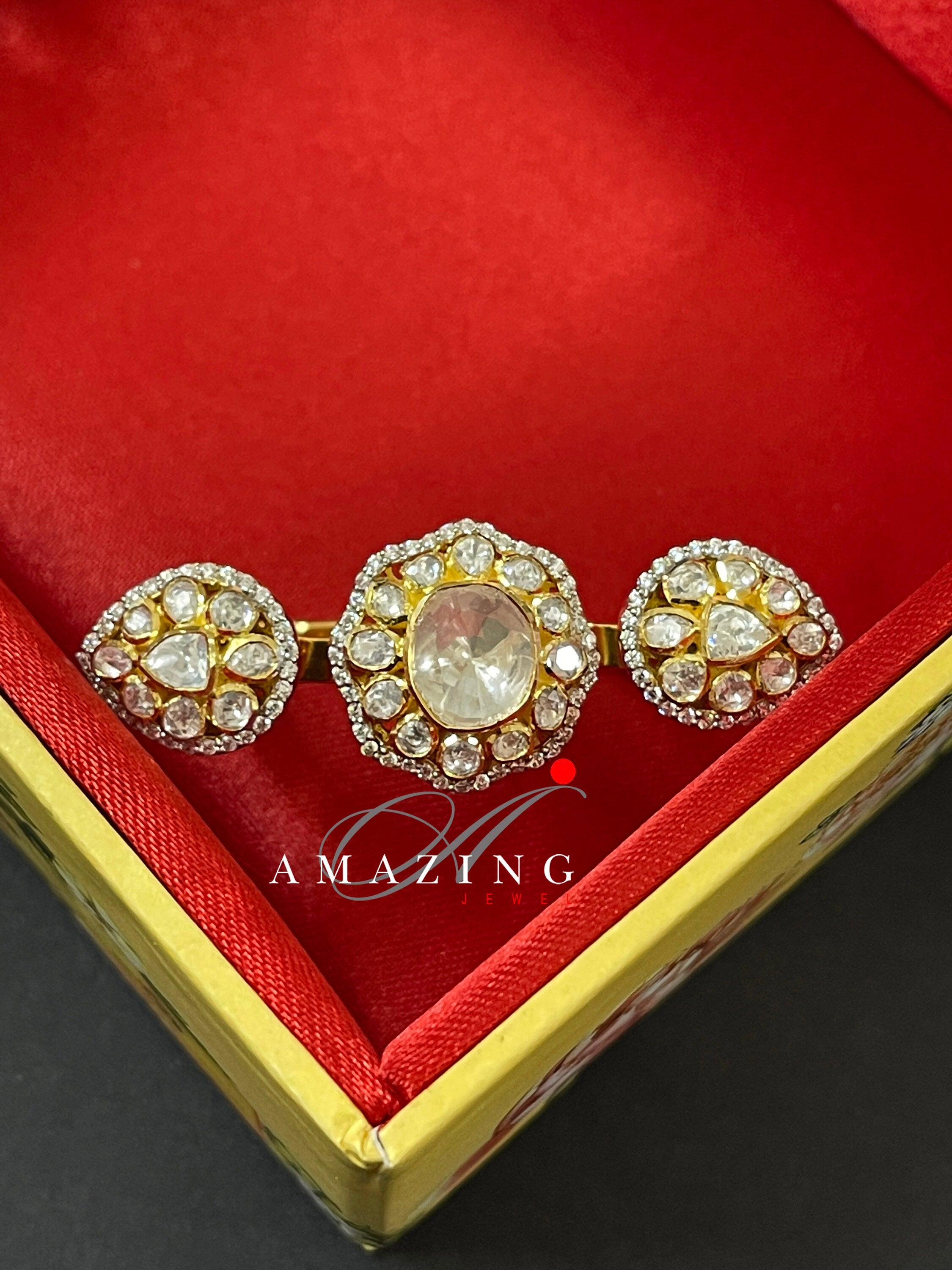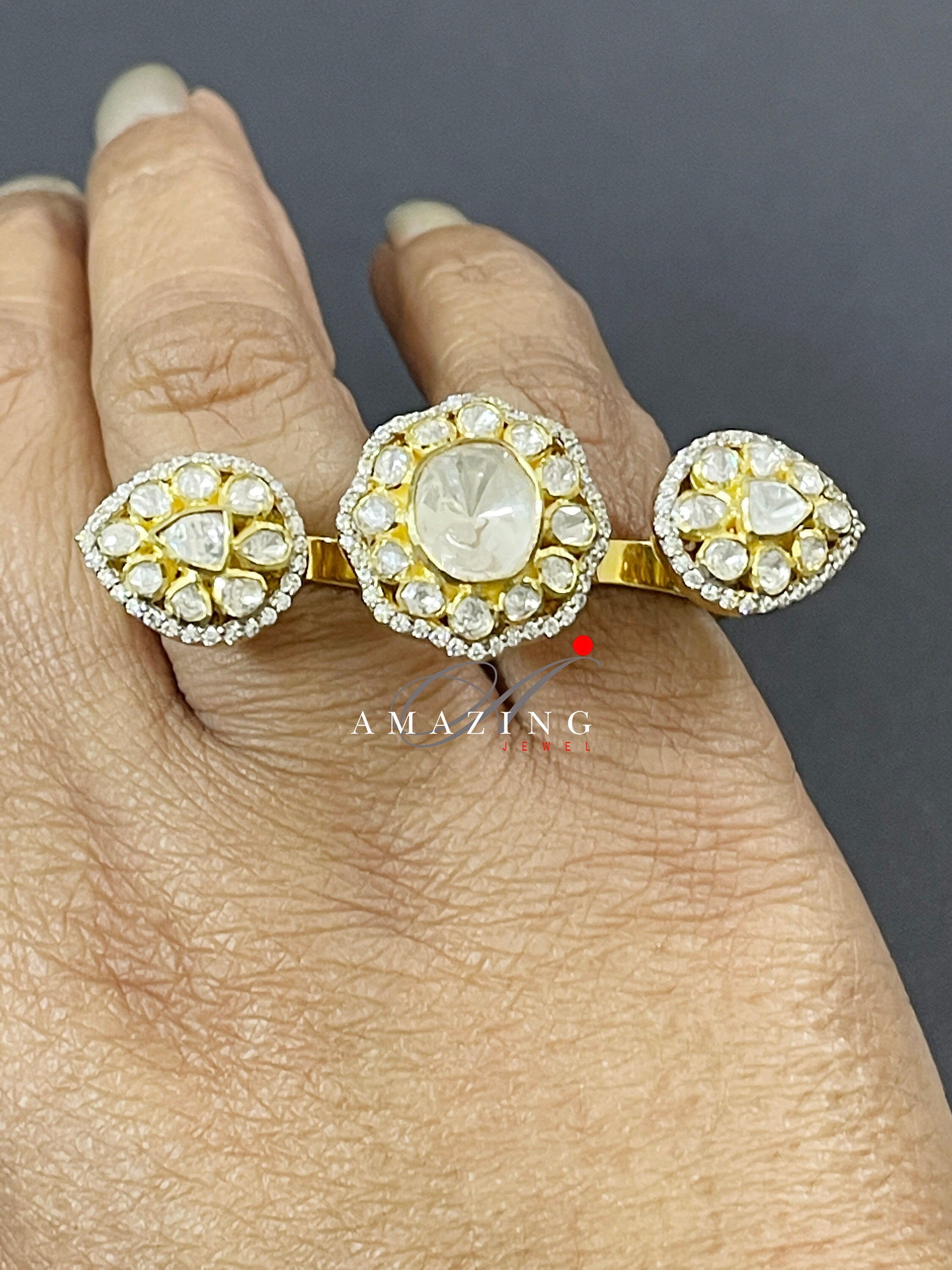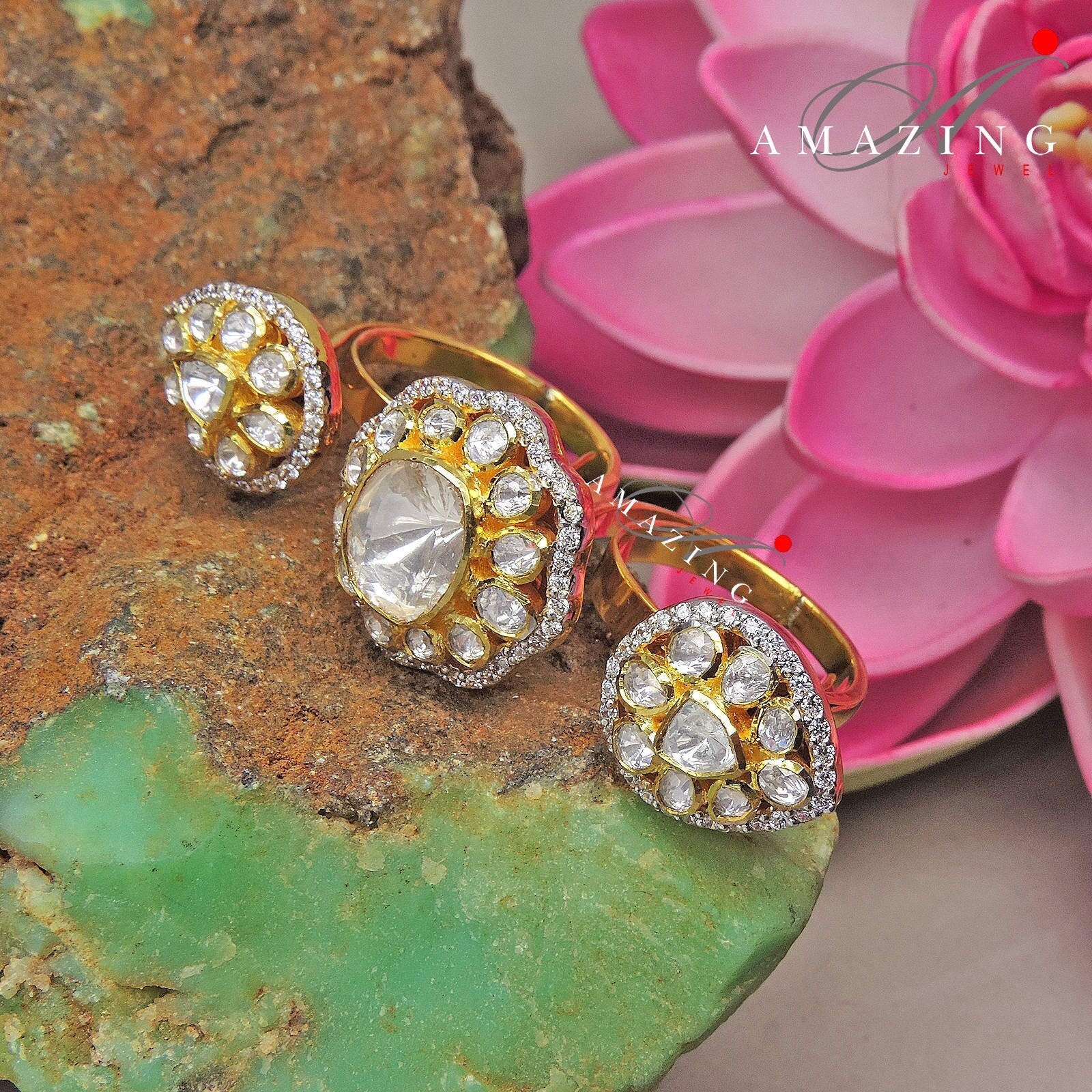 Silver Moissanite Polki Ring Indian Traditional Ring Polki Ring Moissanite Polki Ring Indian Polki Statement Ring Silver Cocktail Ring Ring