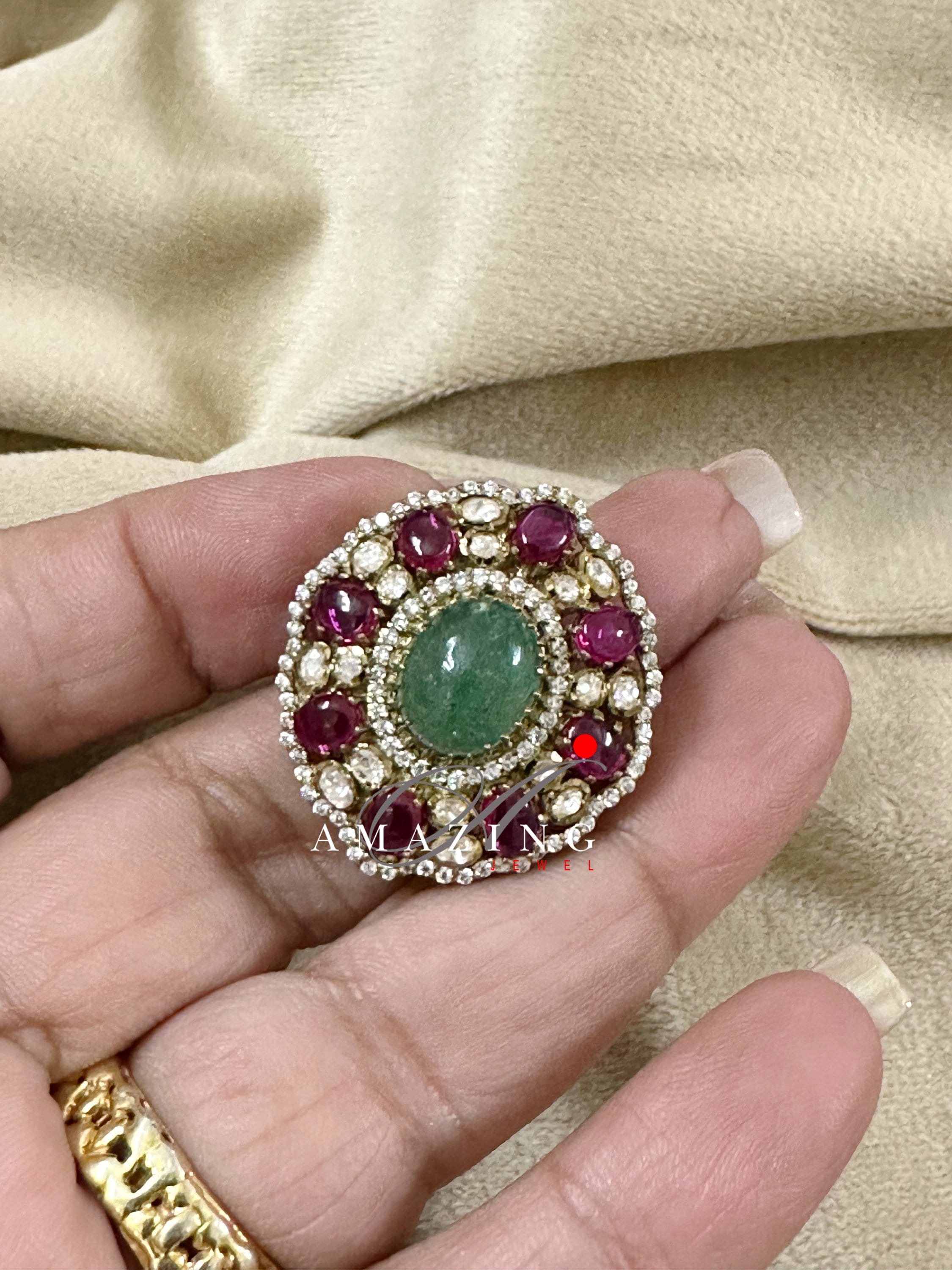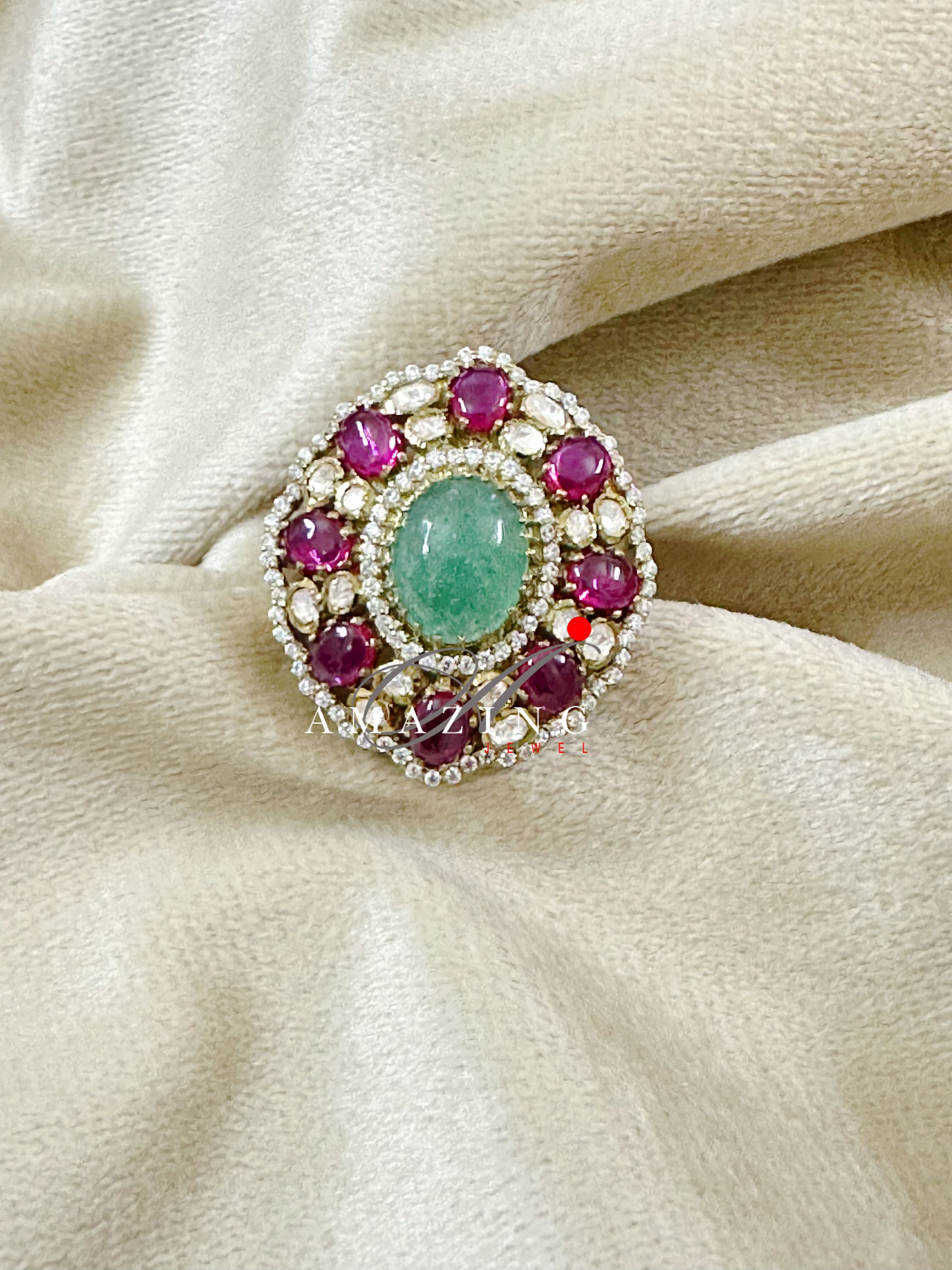 Silver Moissanite Polki Ring, Polki Ring, Moissanite Polki Ring, Cocktail Ring, Statement Polki Ring, Ruby Polki Cab Ring, Ring, Silver Ring