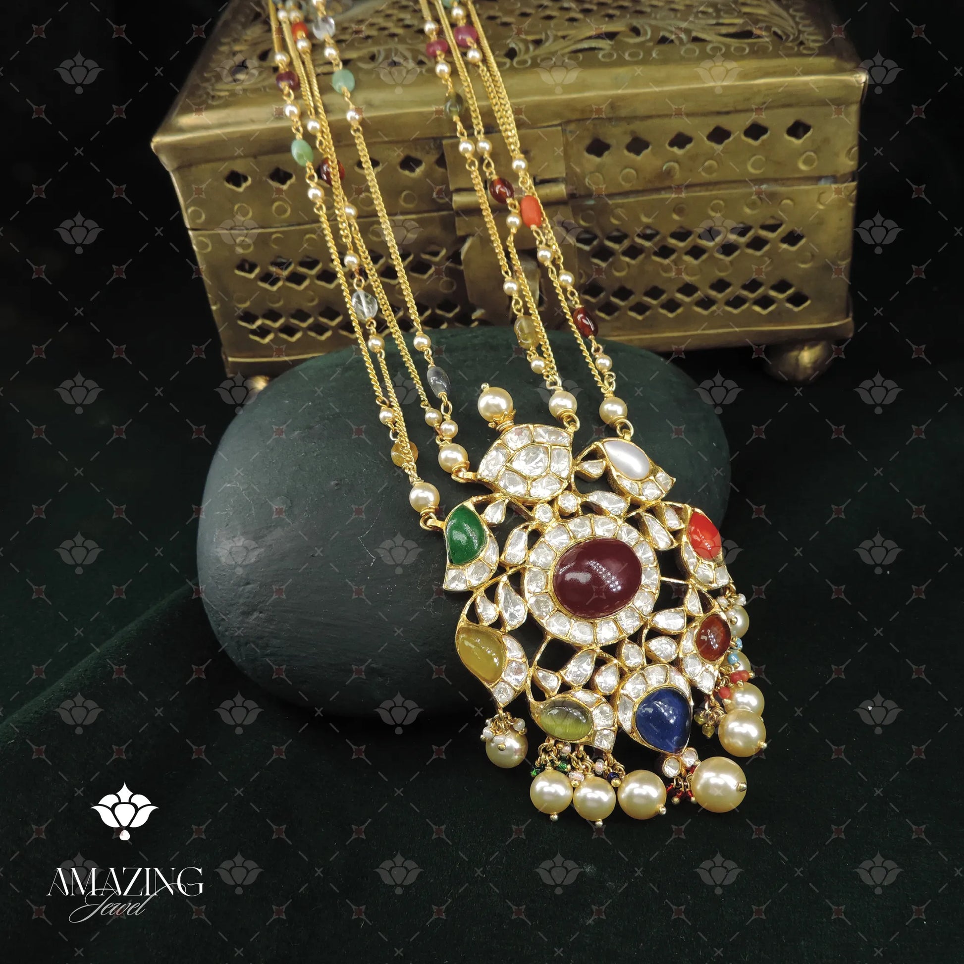 Material : Moissanite Polki, Navratan stone, Pearl