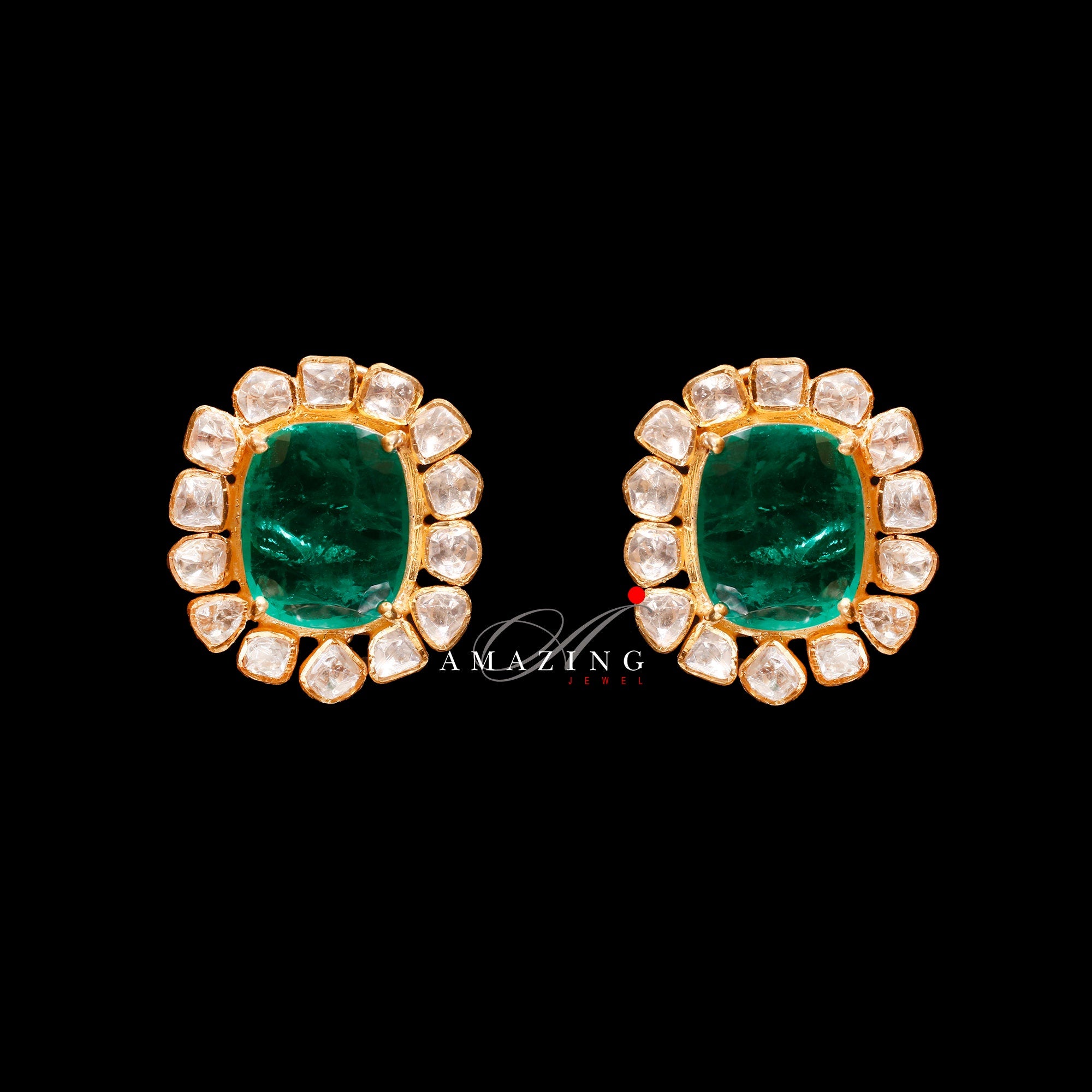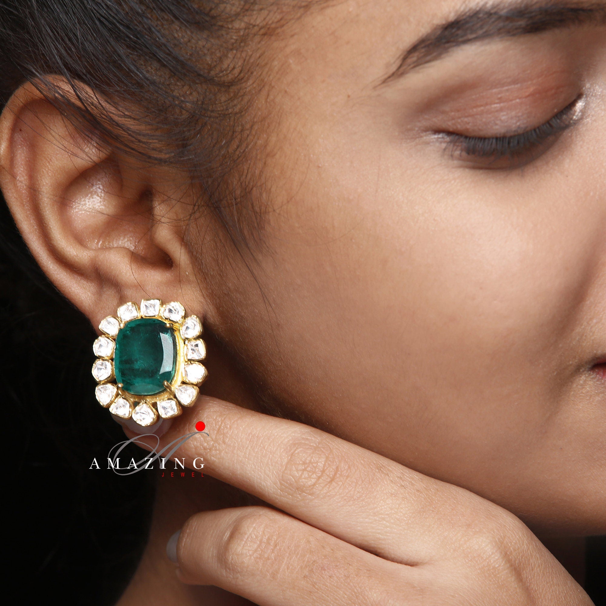 Silver Moissanite and Green Hydro Emerald Polki Earring Moissanite Polki Earring Wedding Jewelry Indian Jewelry Traditional Earring