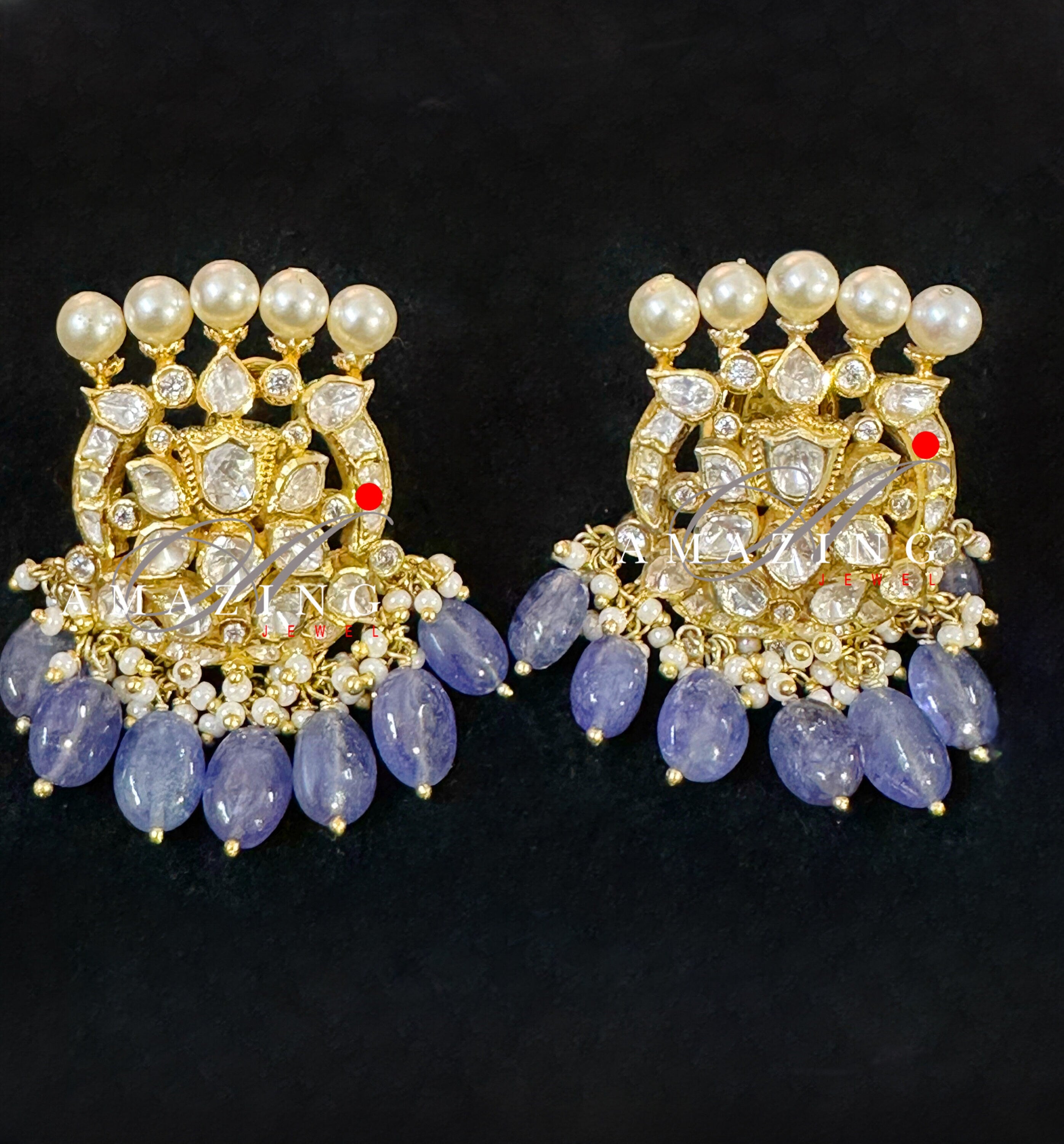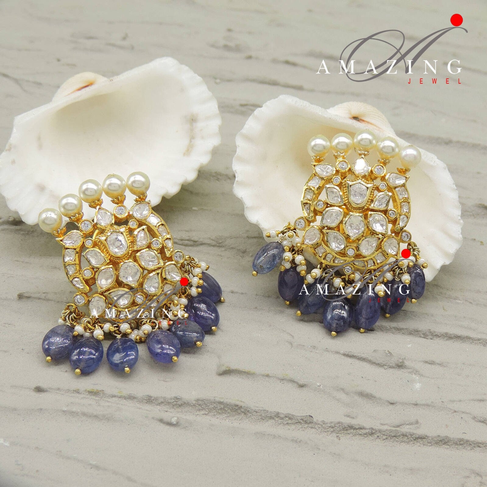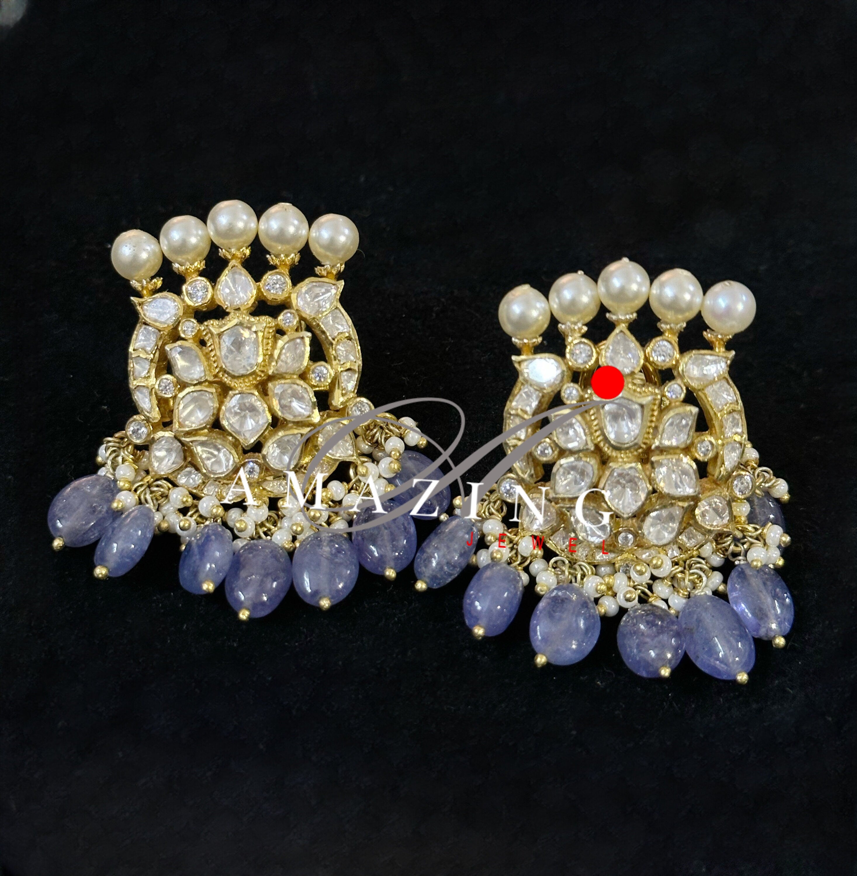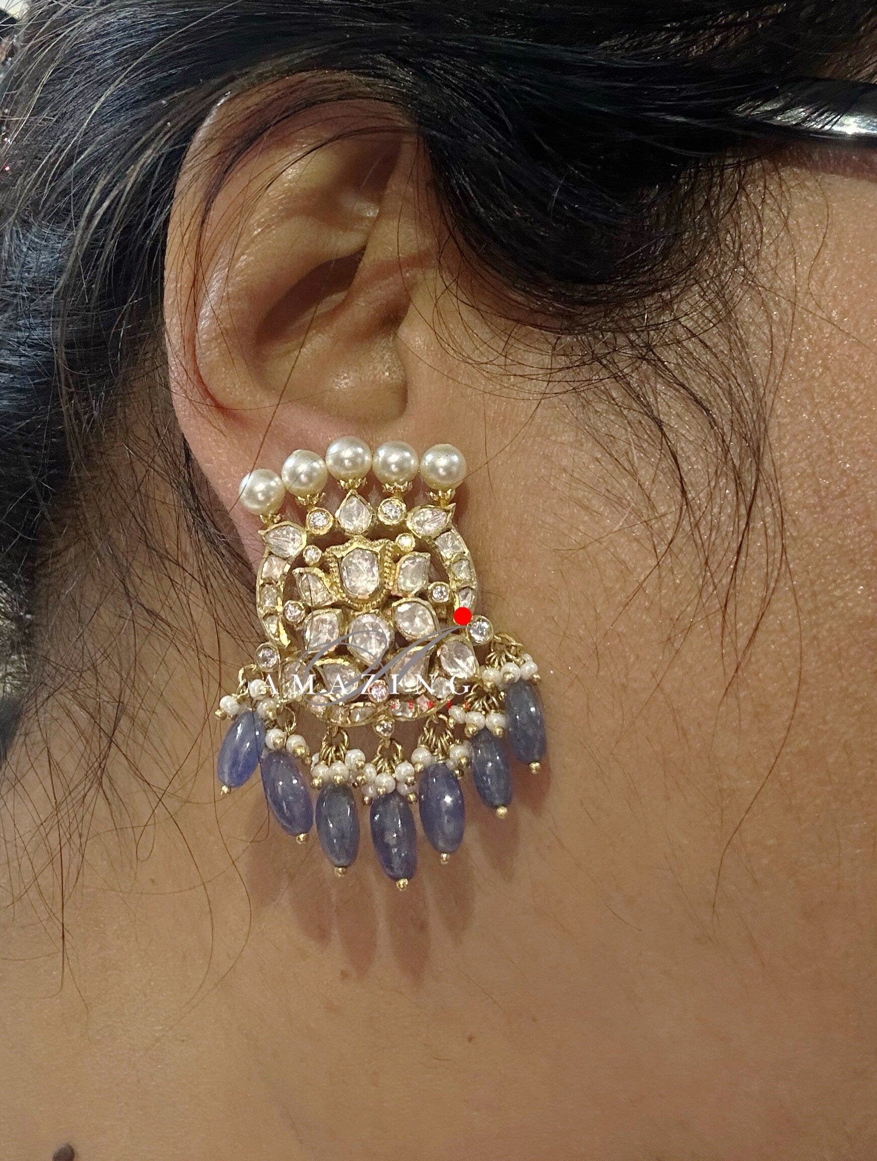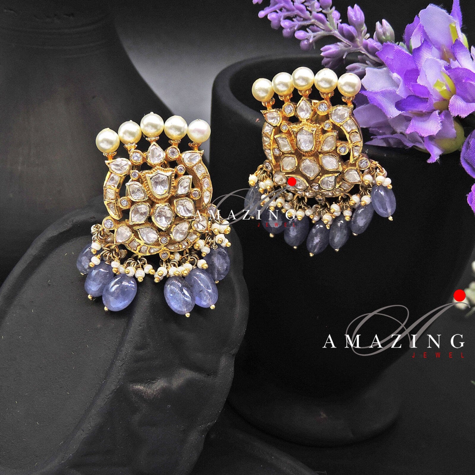 Silver Moissanite and Tanzanite Beads Polki Earring ,Moissanite Polki Earring, Wedding Jewellery ,Indian Jewellery, Traditional Earring,Stud
