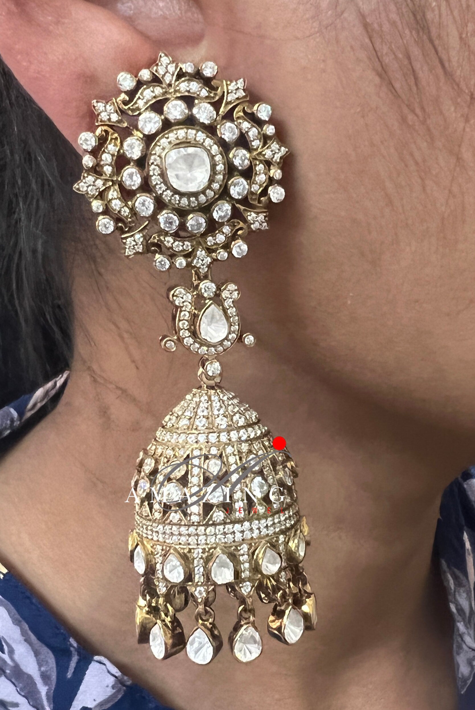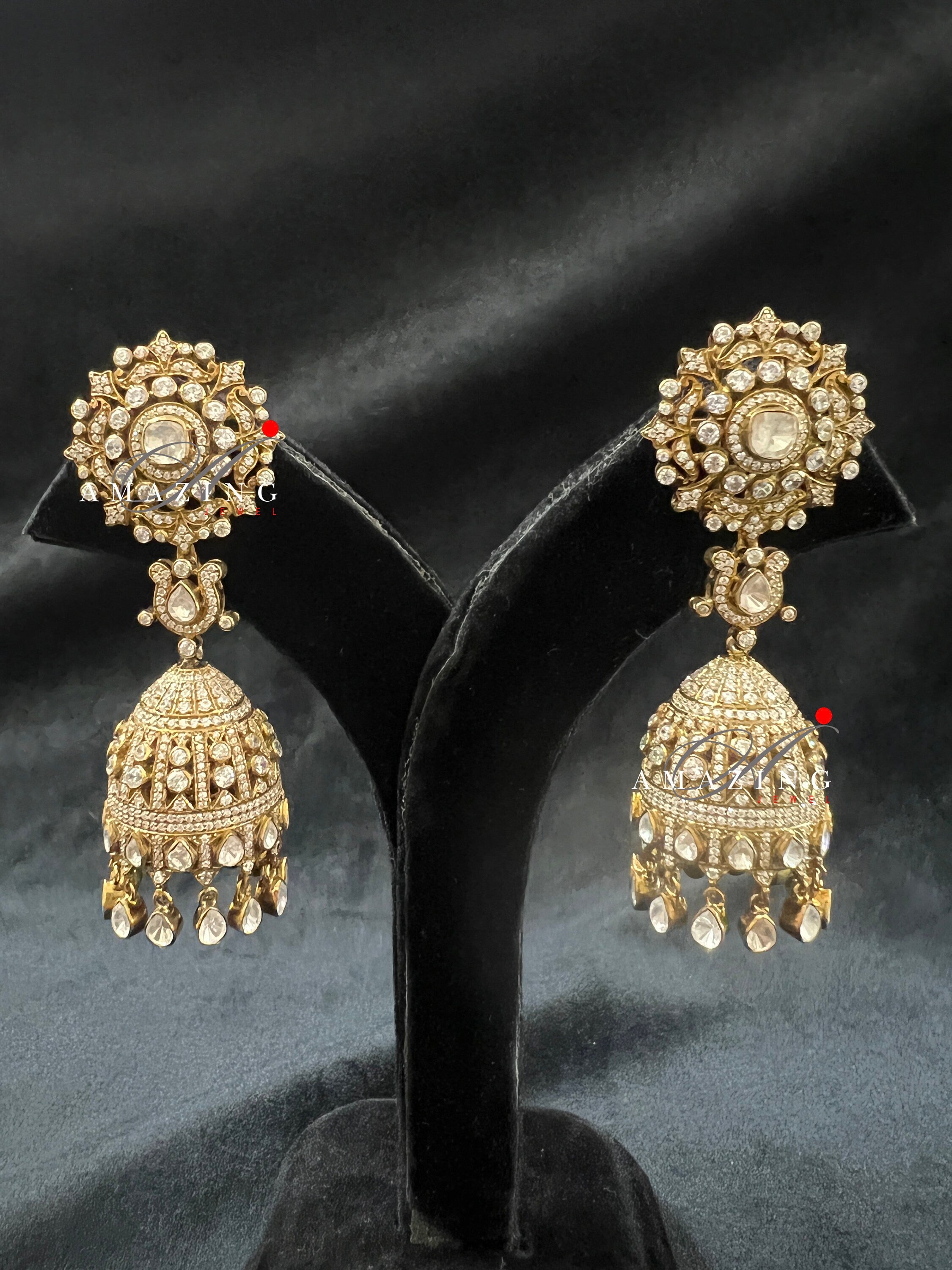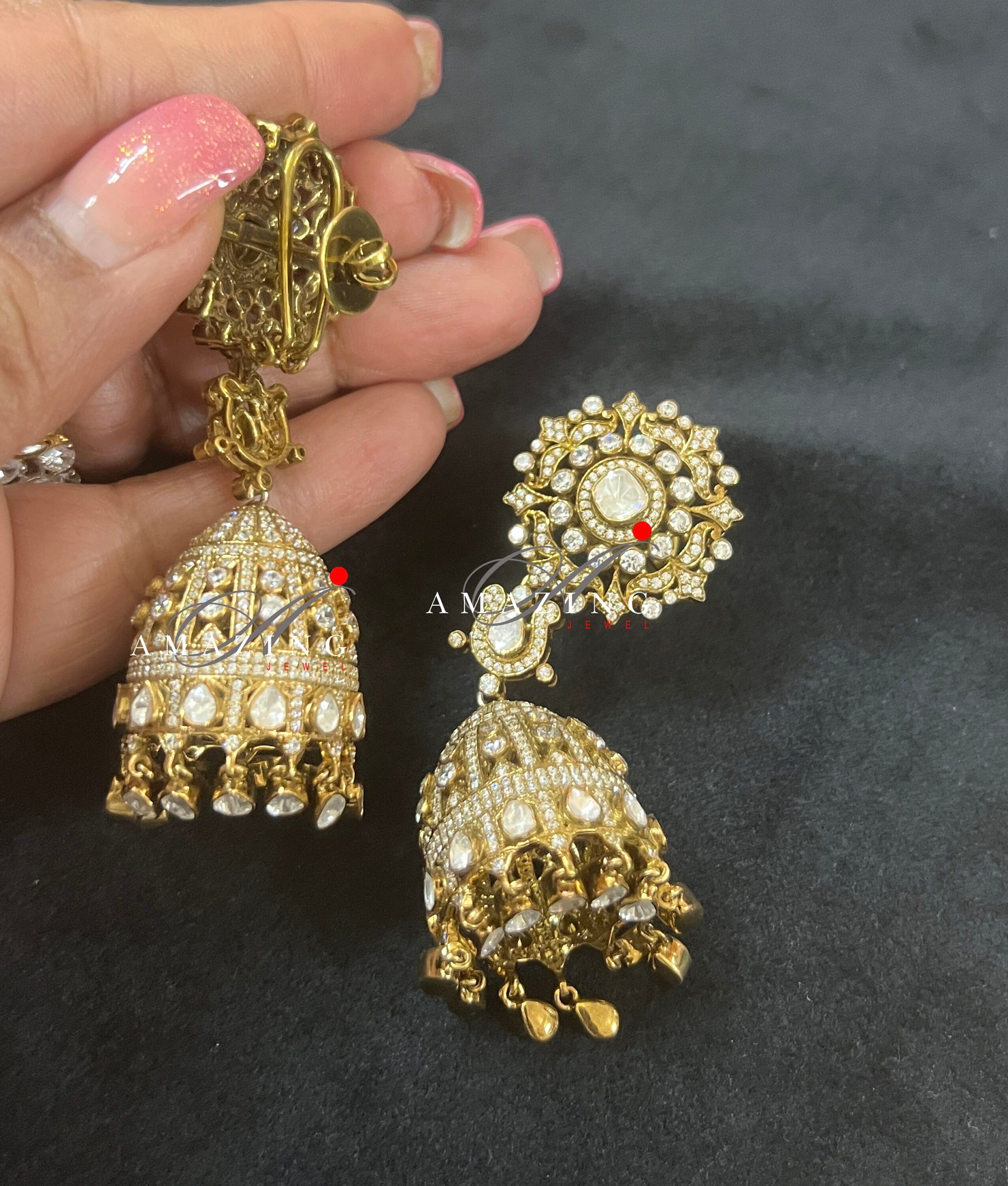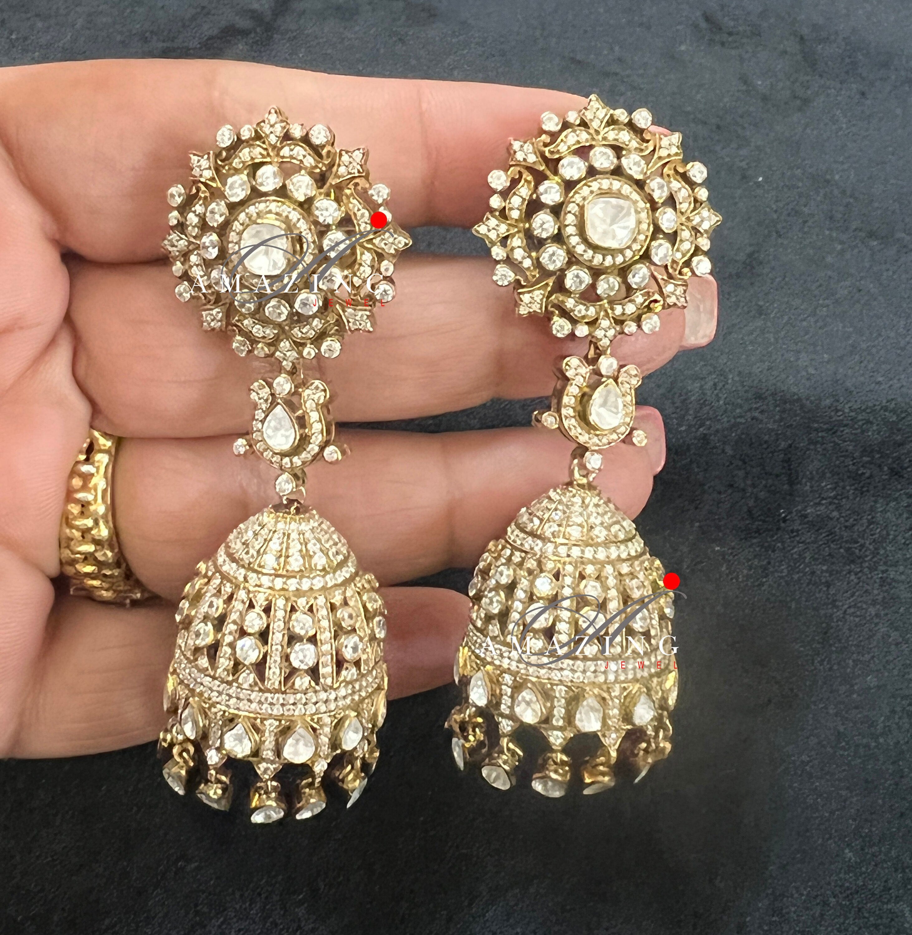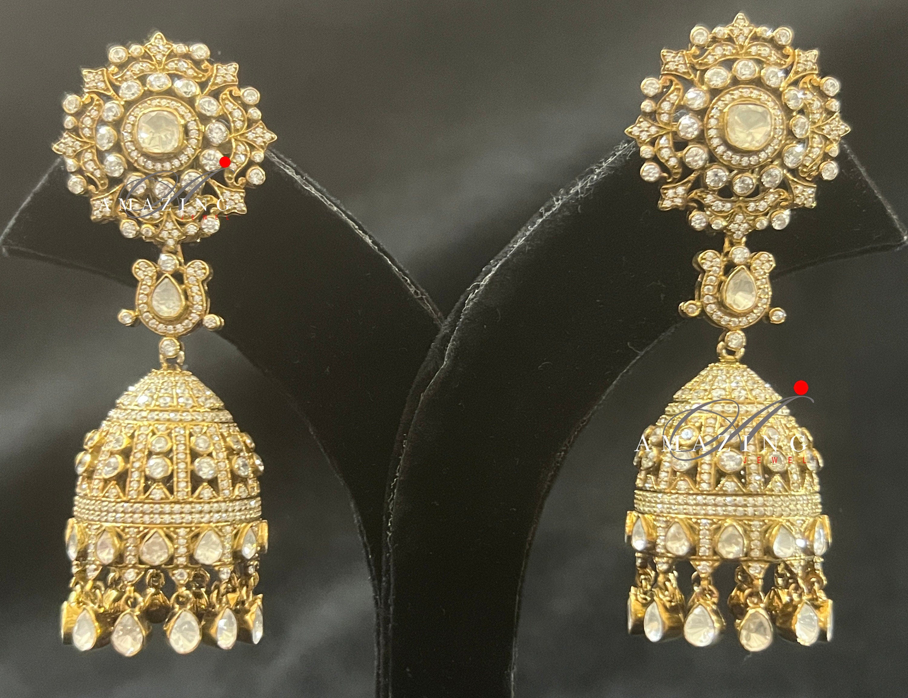 Silver Moissanite Polki Antique polish Jhumka, Polki Earring, Wedding Jewelery, Silver Moissanite Polki , Big Jhumka, Statement Earring