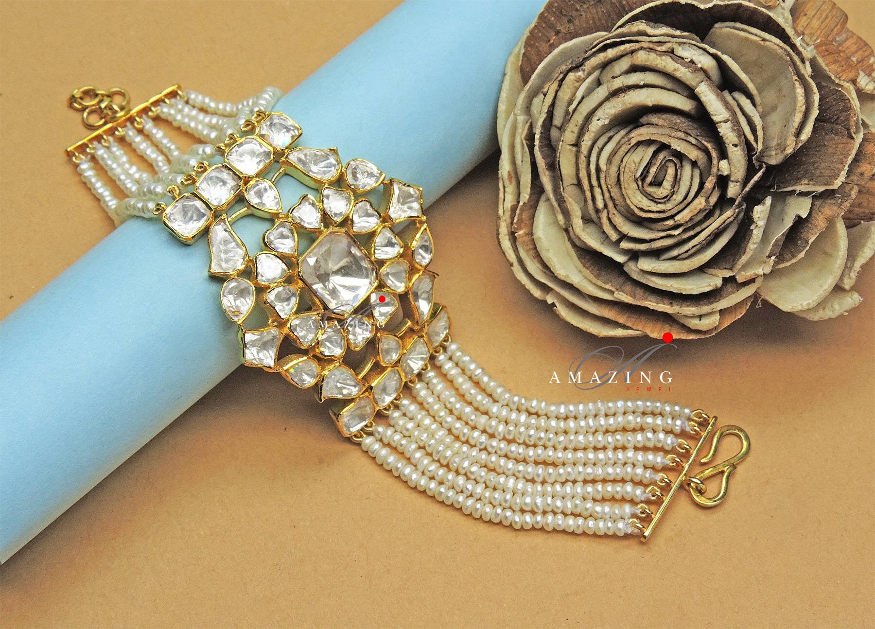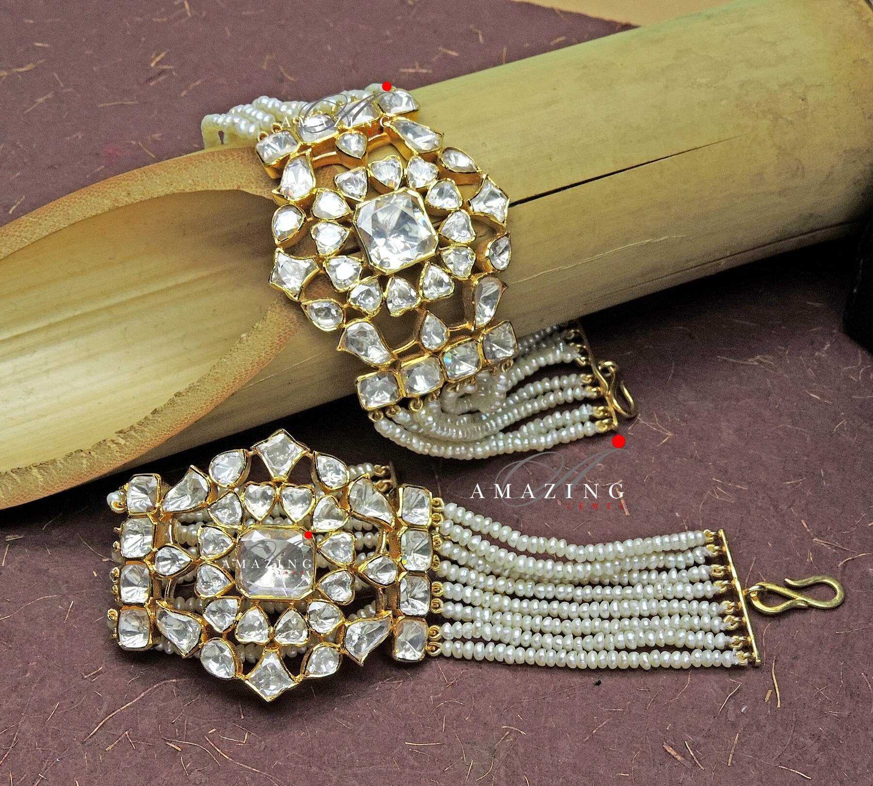 Silver Moissanite Polki Bracelet,Moissanite Polki Bracelets,Indian Traditional Bracelets,Moissanite Bracelets with Box lock,Bridal Jewelry