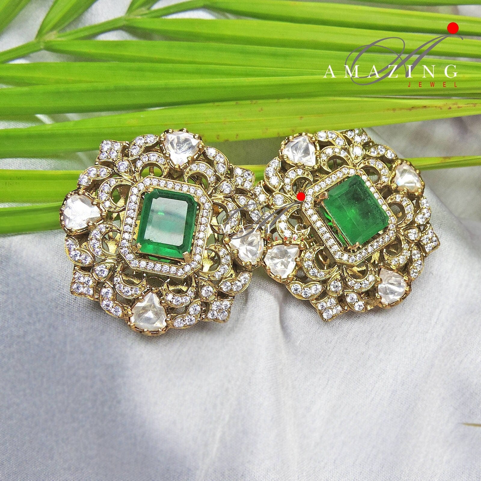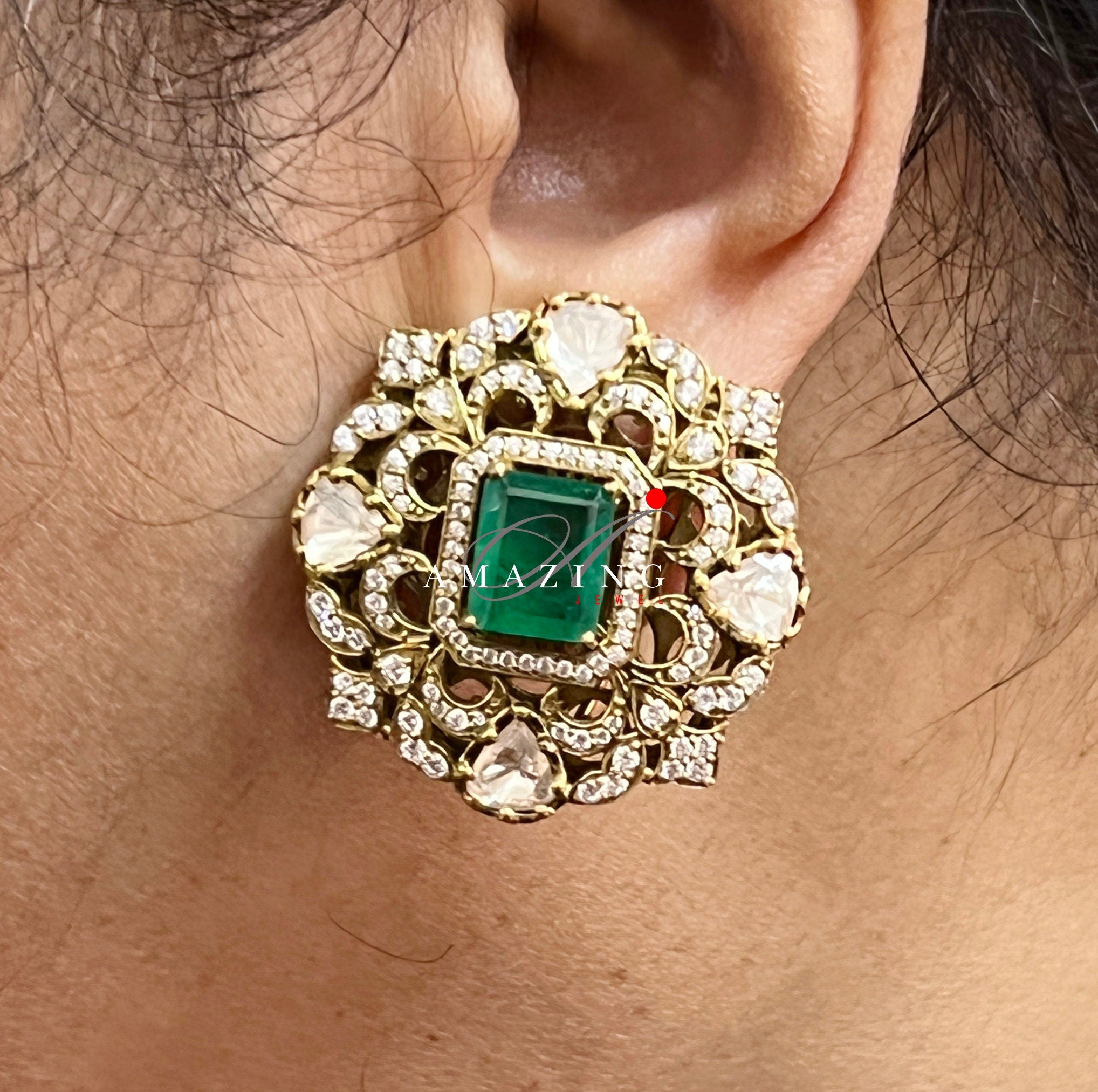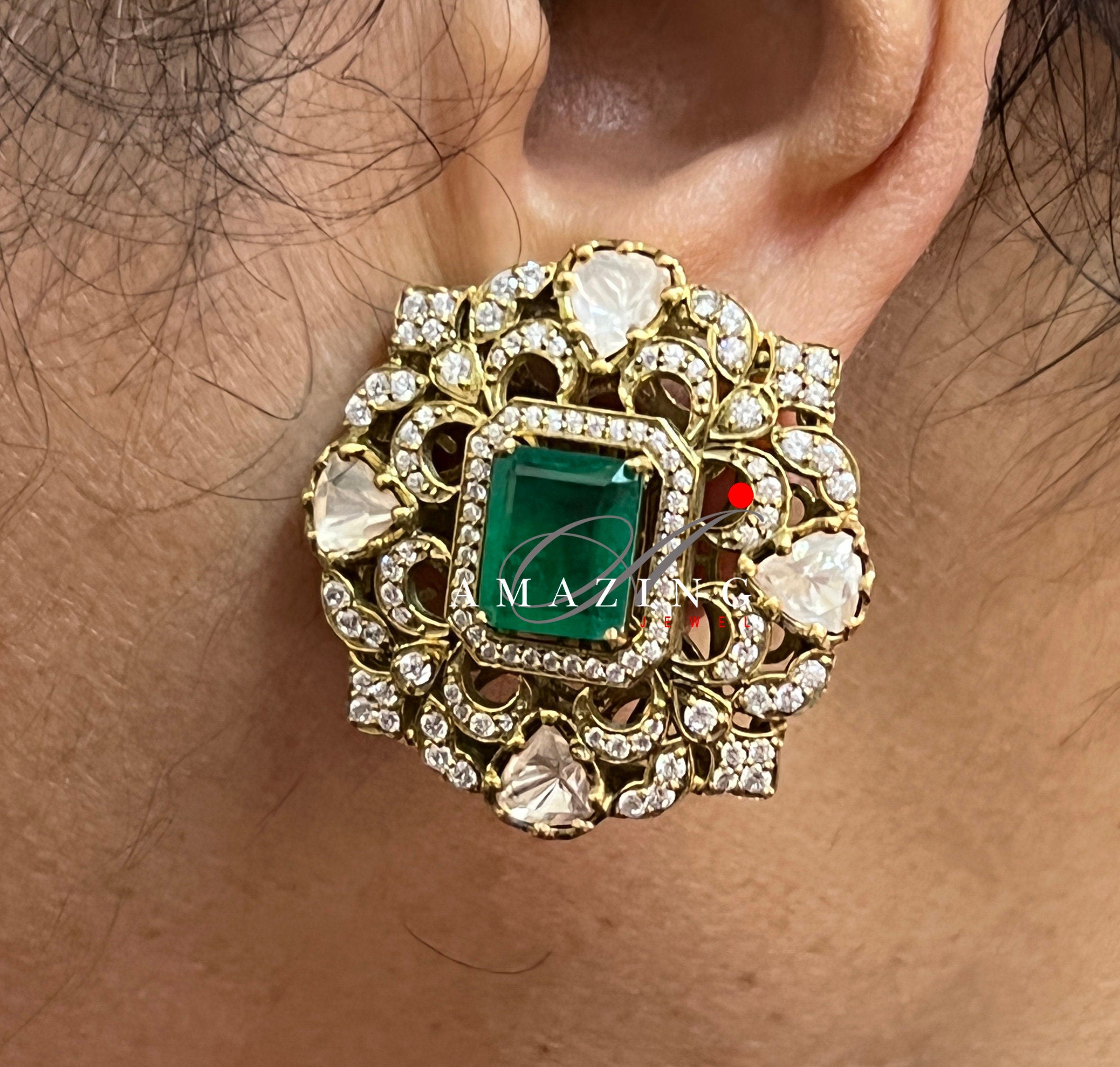 Silver Moissanite Polki Earring, Moissanite Antique Earring, 925 Silver Stud Earring, Bridal Jewelery, Traditional Jewelery, Sabyasachi Stud