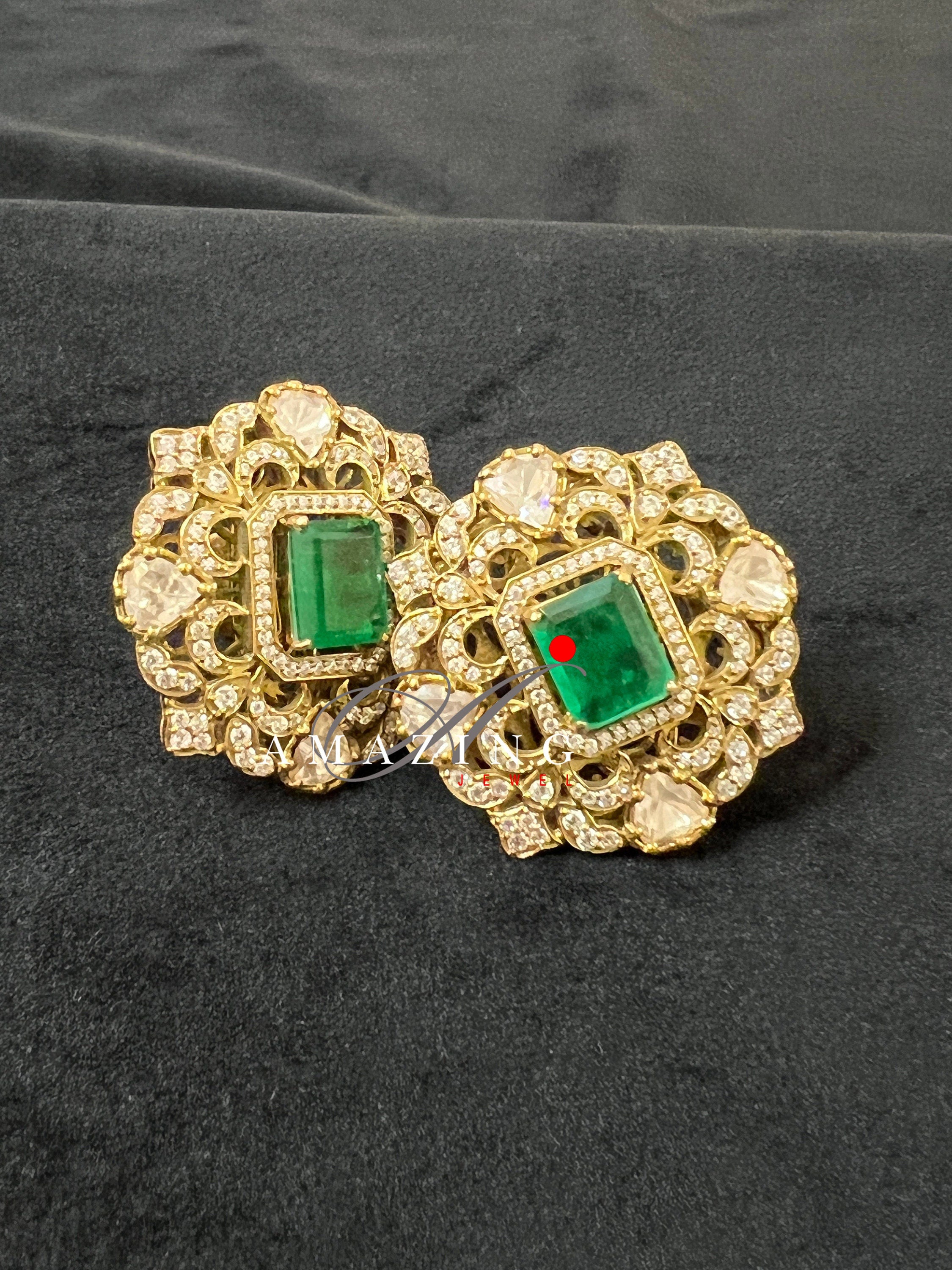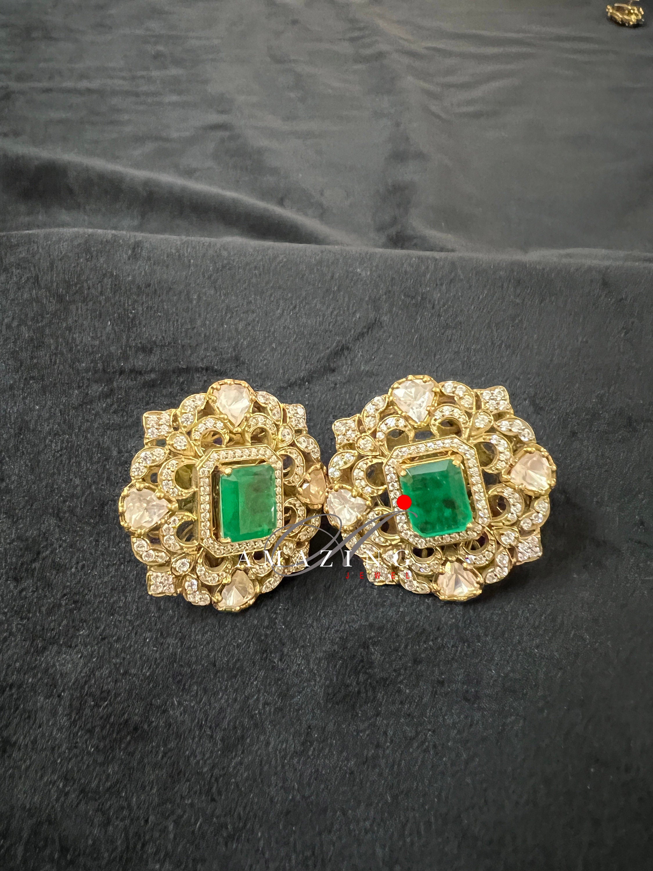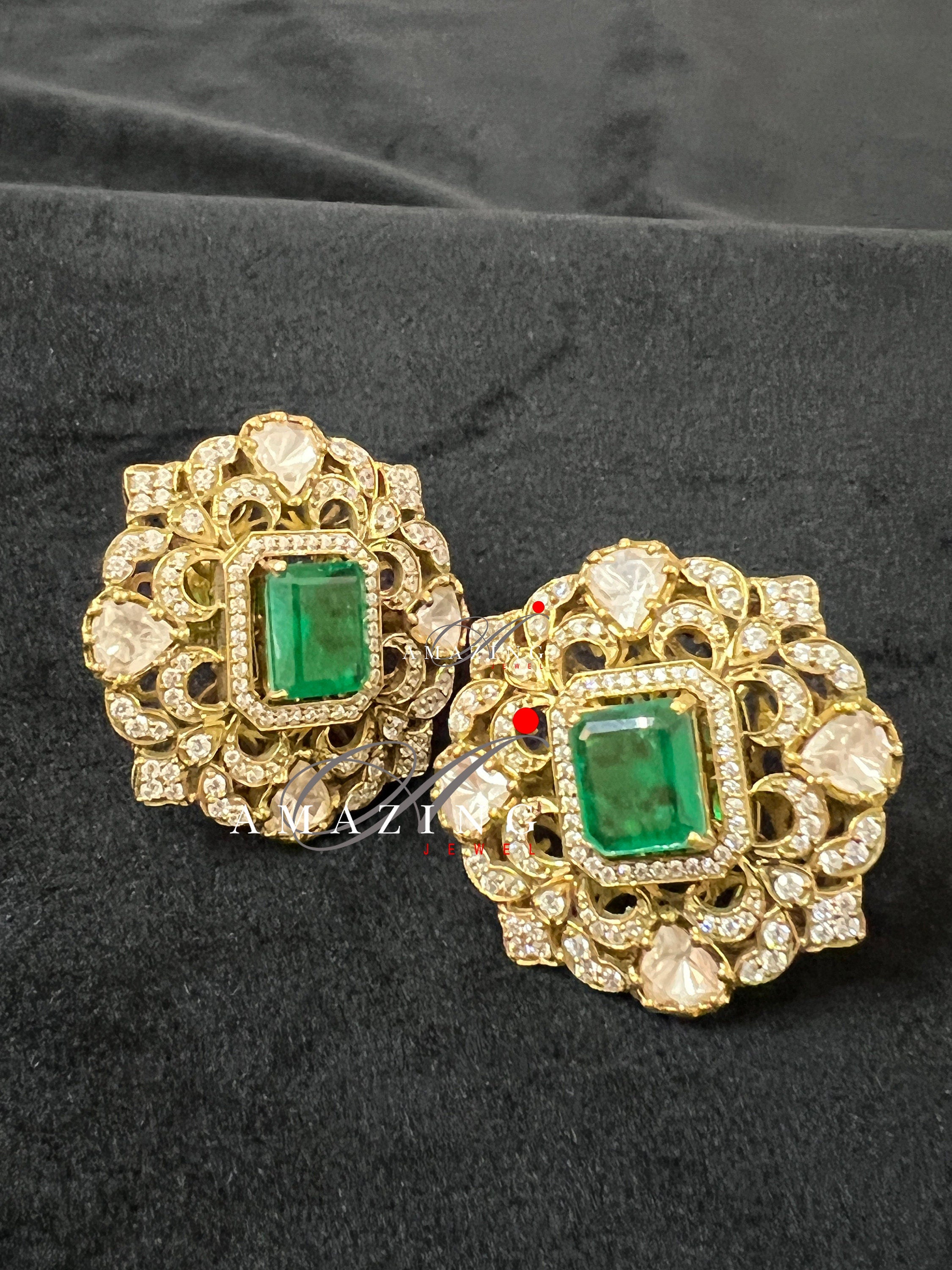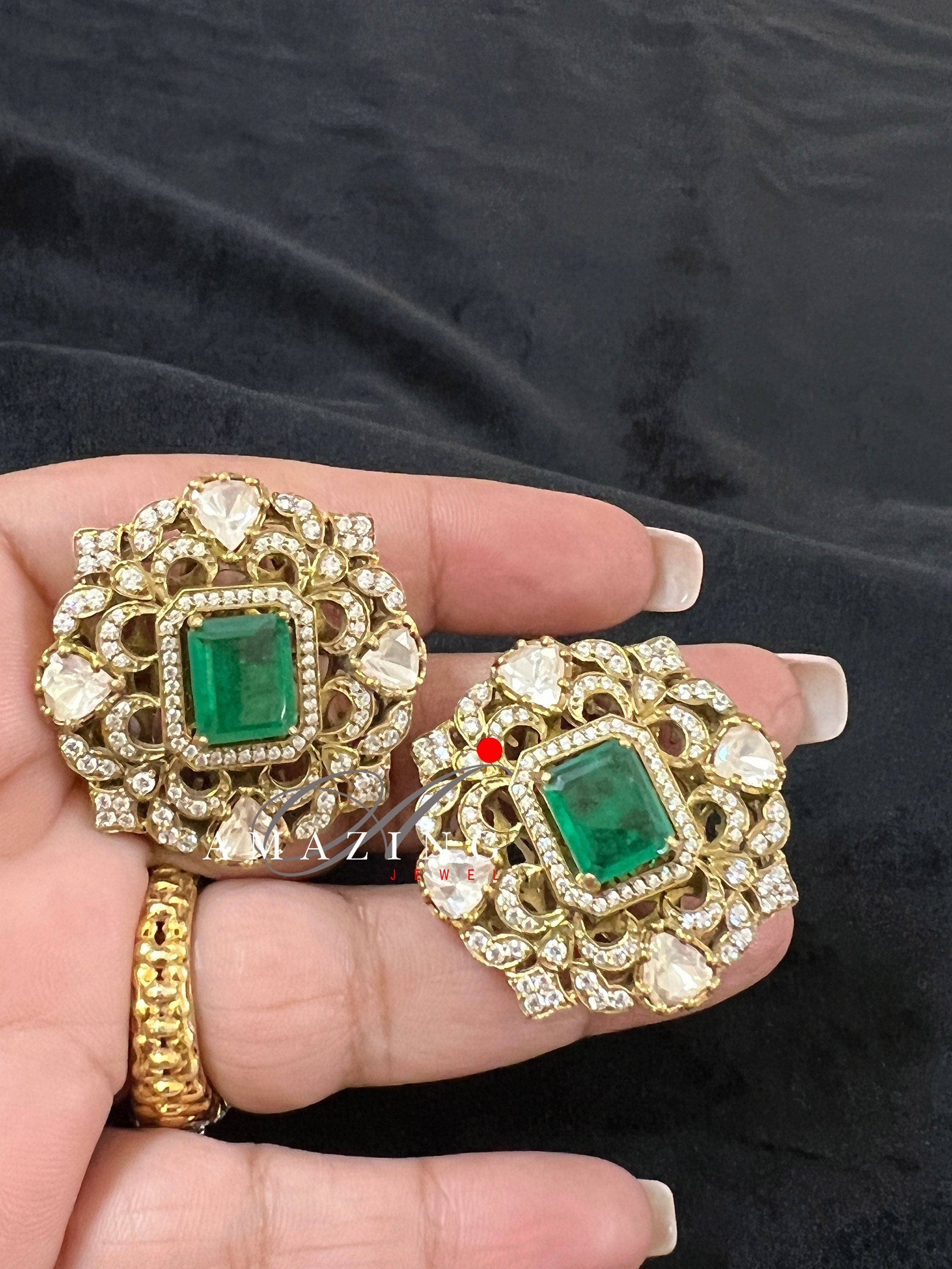 Silver Moissanite Polki Earring, Moissanite Antique Earring, 925 Silver Stud Earring, Bridal Jewelery, Traditional Jewelery, Sabyasachi Stud