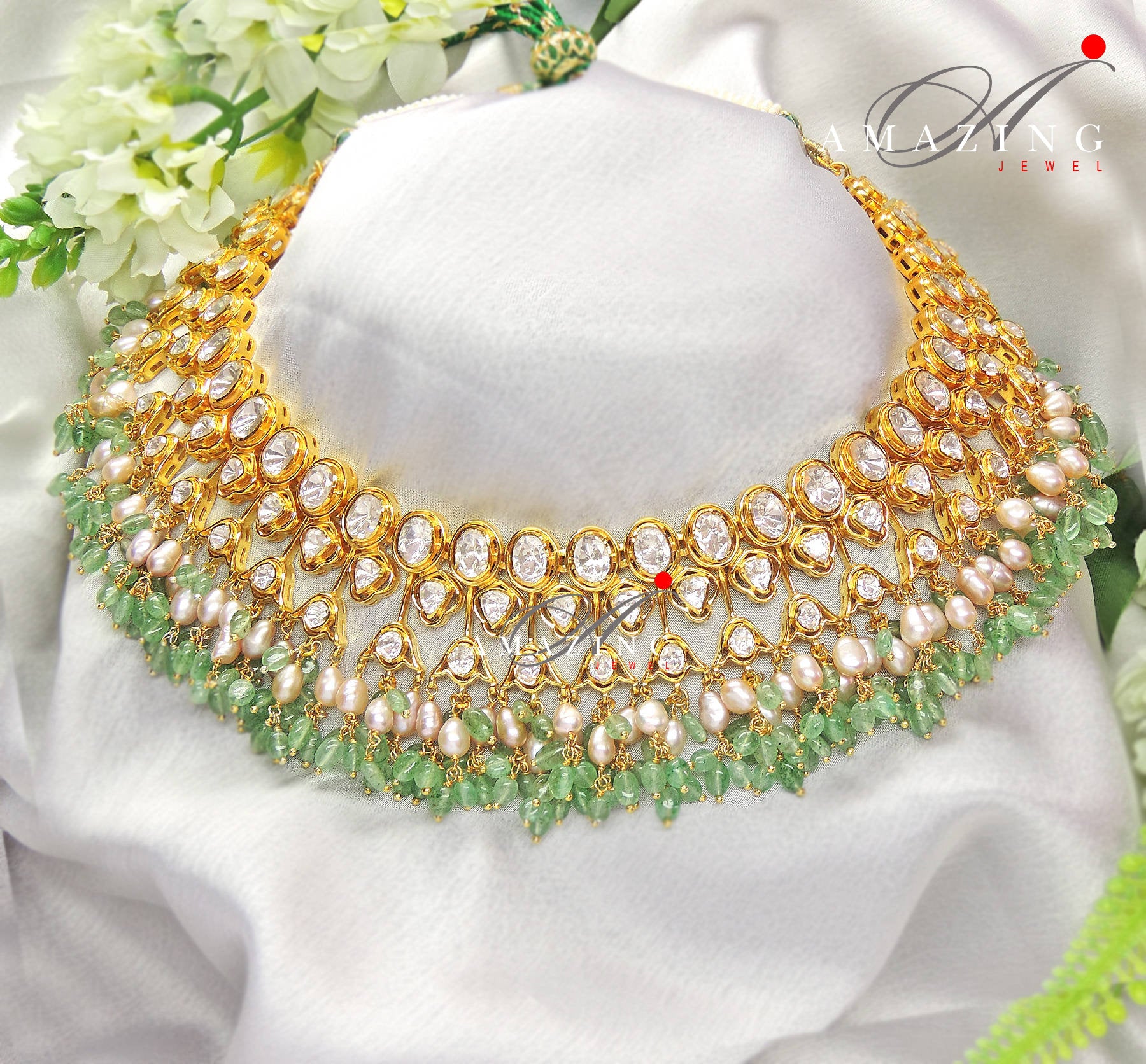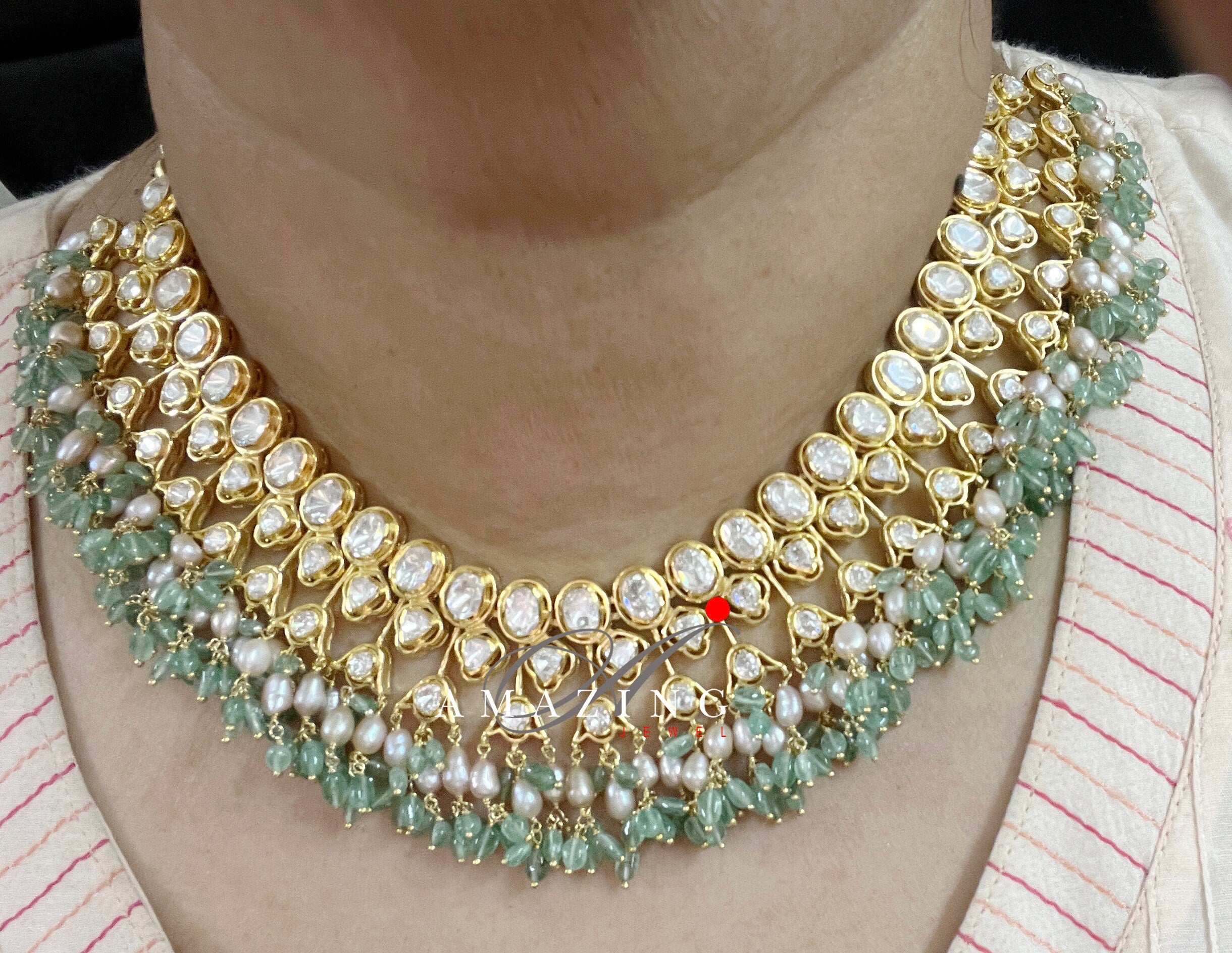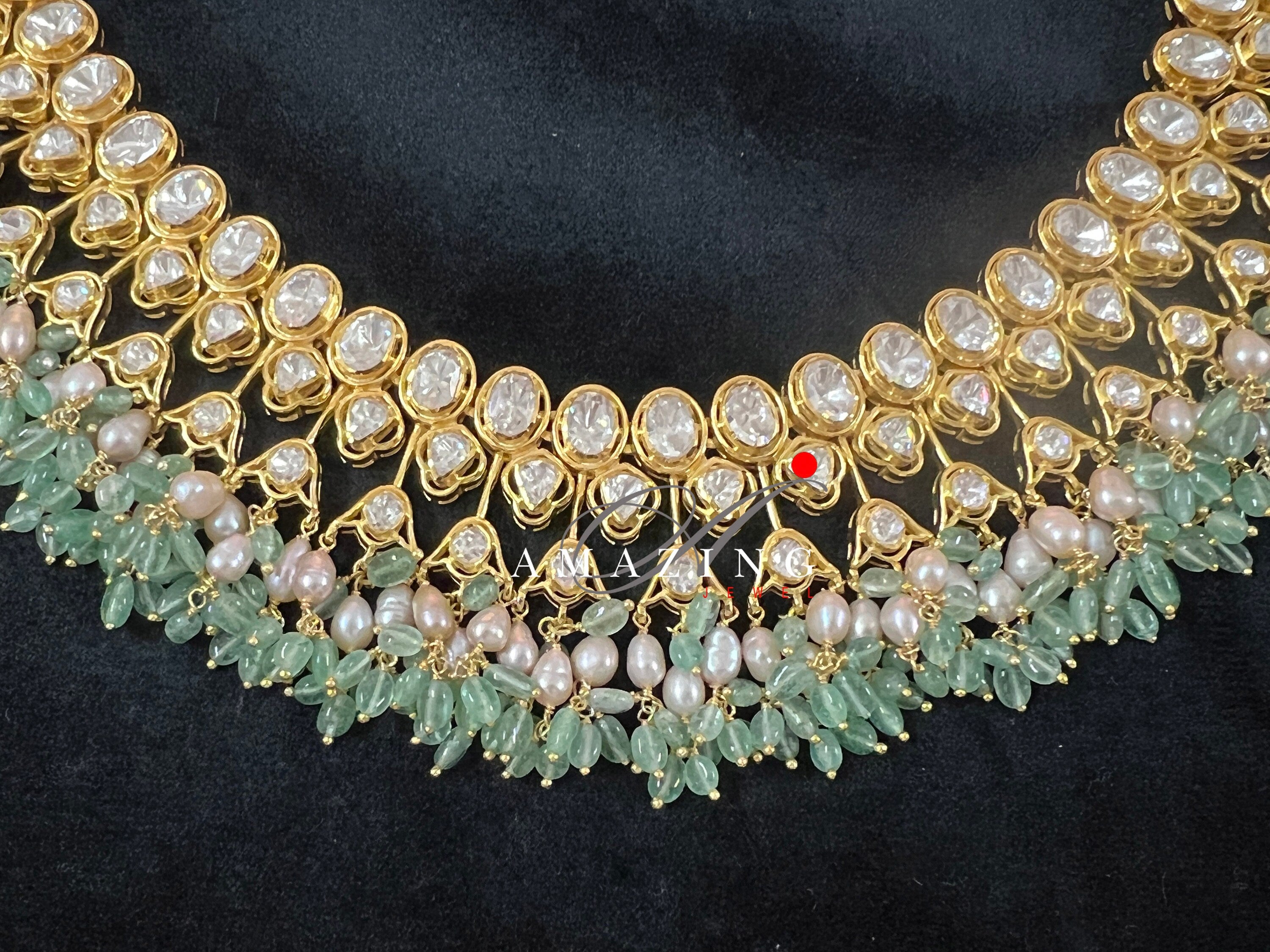 Silver Moissanite Polki Necklace, Polki Necklace, Wedding Jewelery, Indian Jewelery, Silver Necklace,Bridal Set,Statement Necklace, Necklace