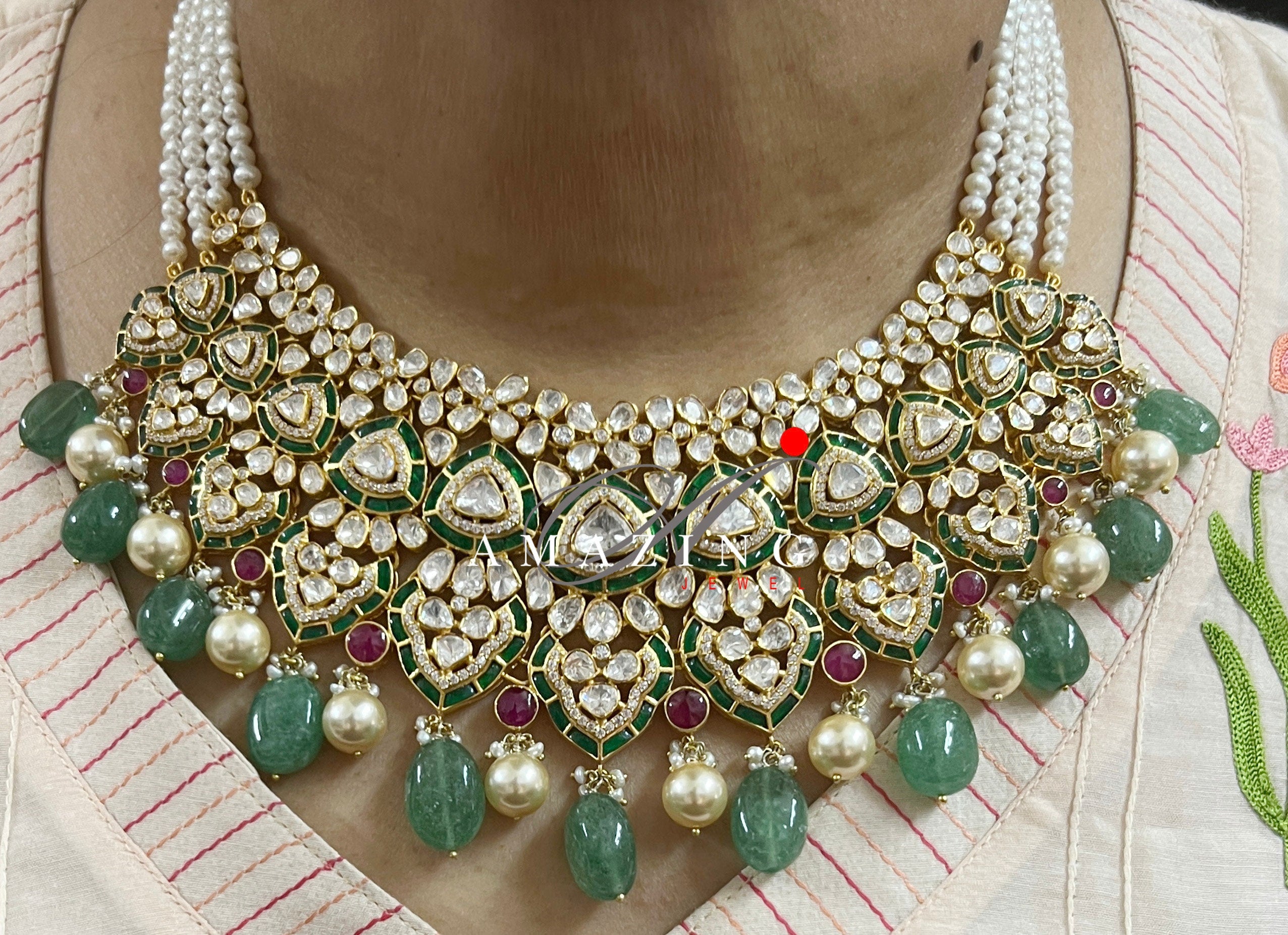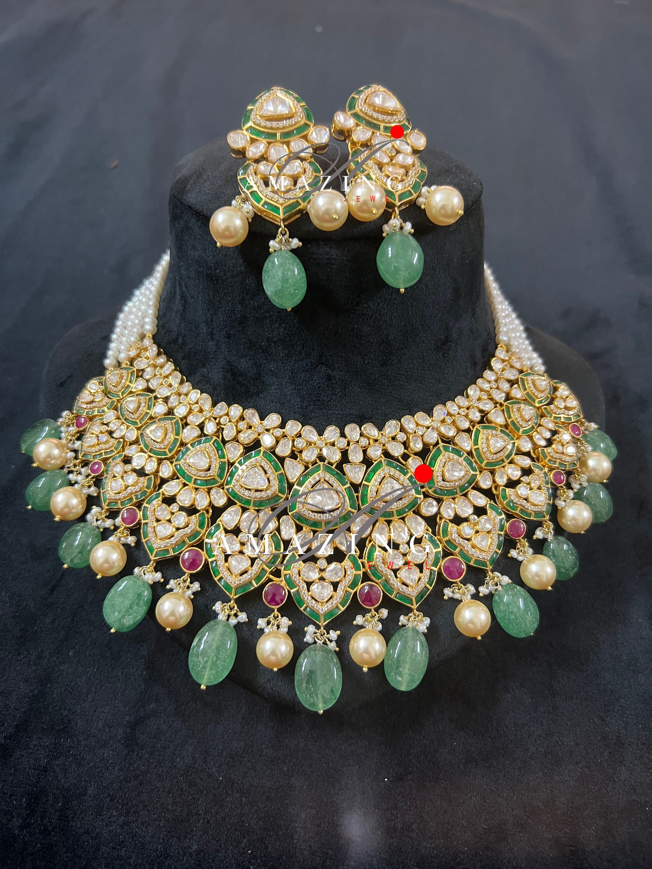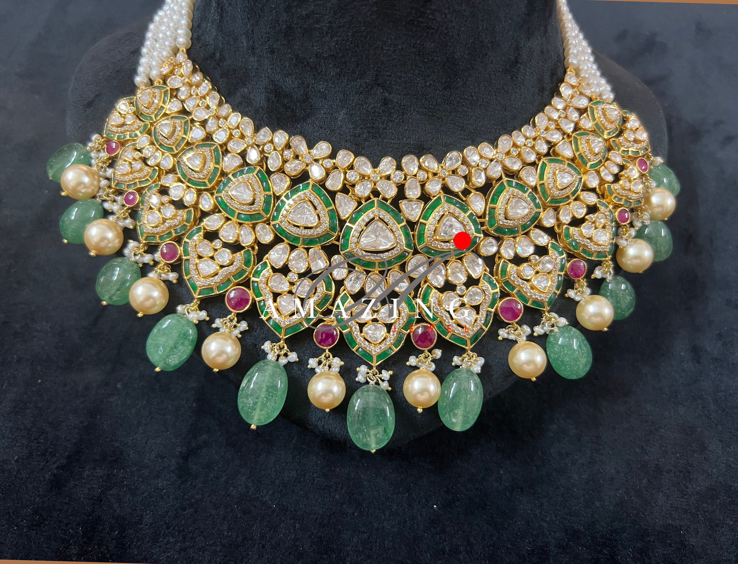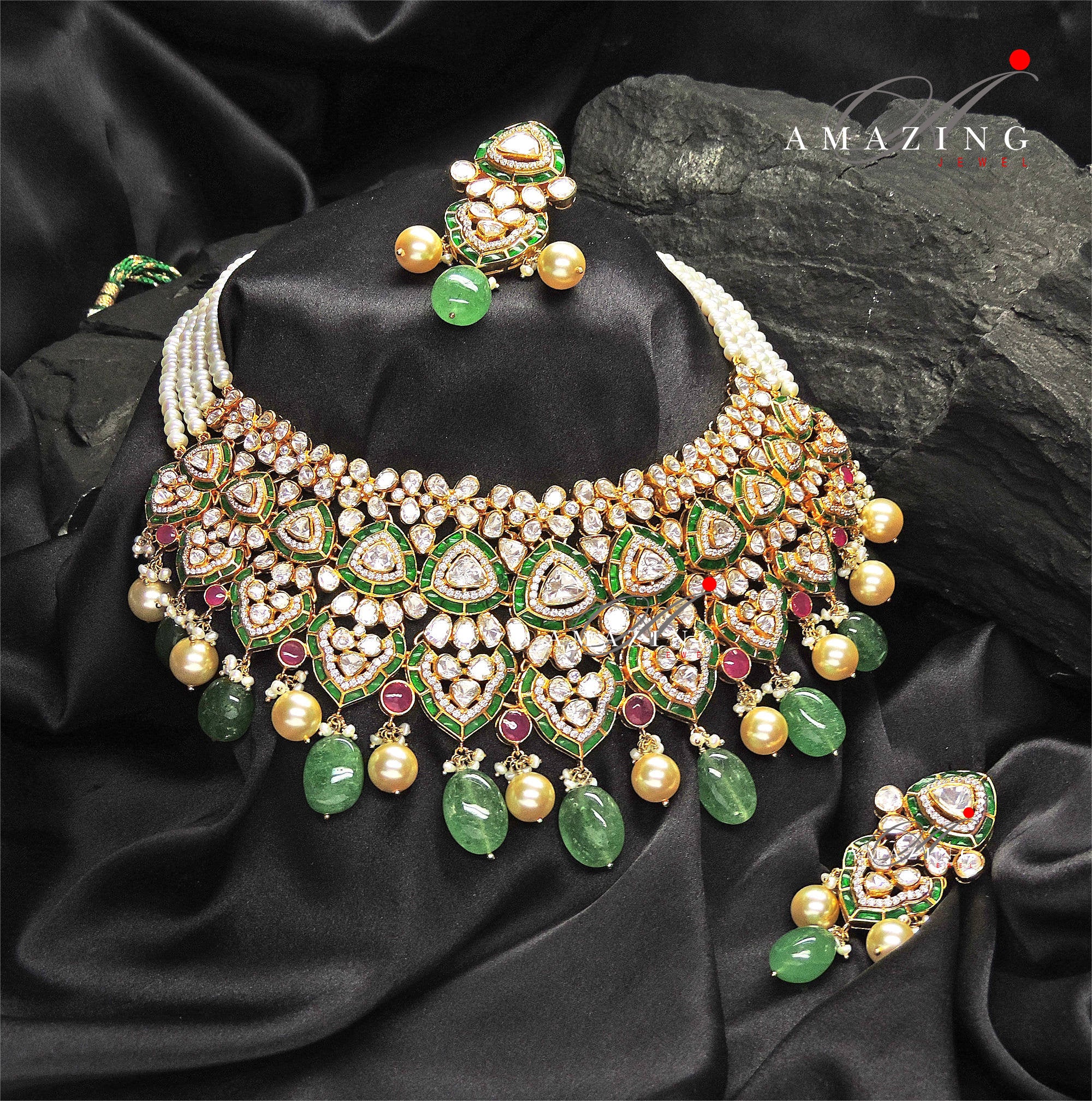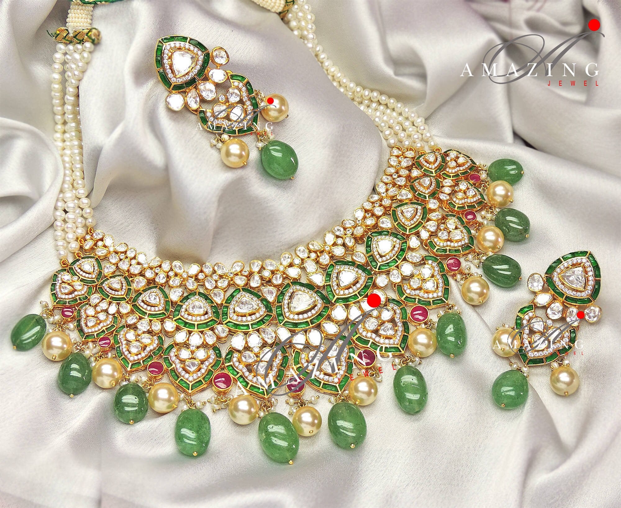 Silver Set, Polki Set ,Moissanite Polki Jewelery ,Indian Wedding Jewelery, South Indian Necklace Set, Statement Jewelery, Necklace Set