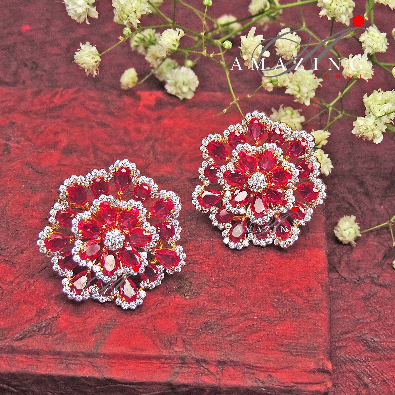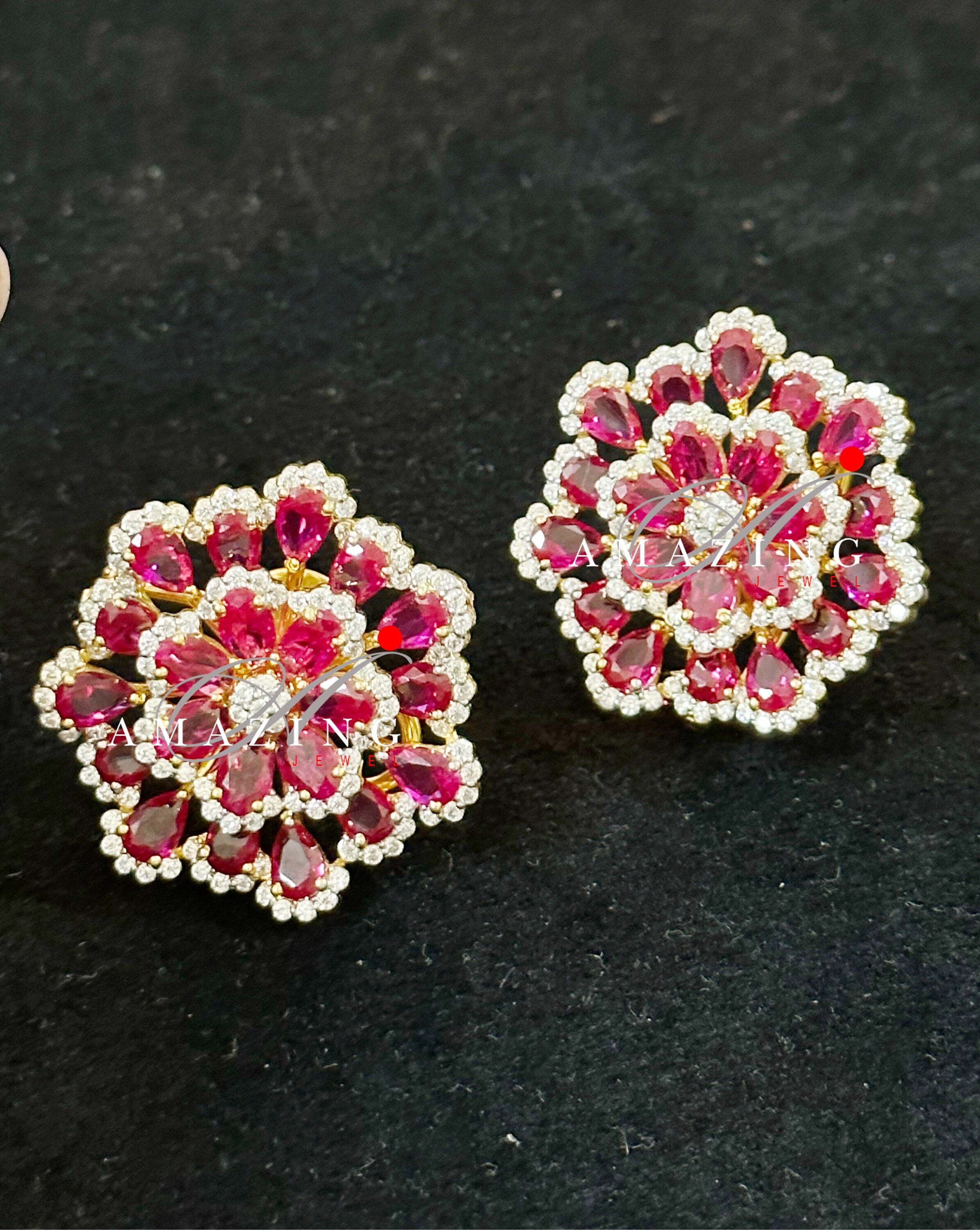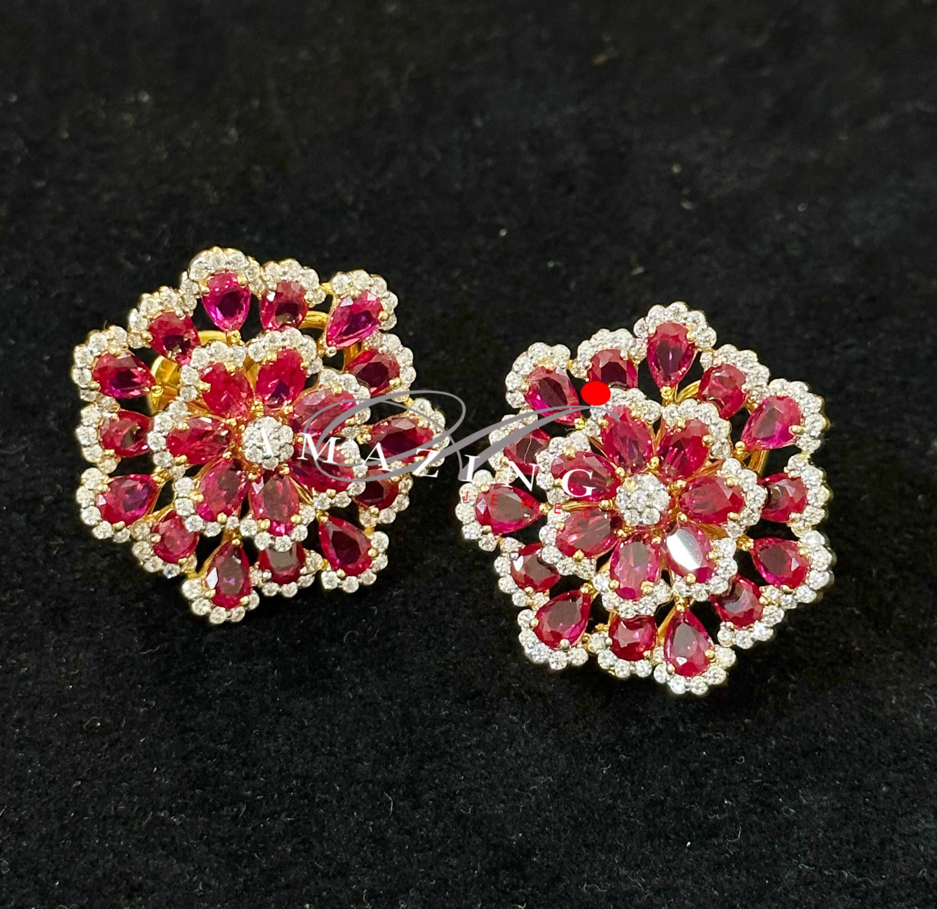 Silver Studded Cubic Zirconia Ruby Earring ,Swarovski Studs ,Bridal Jewelery ,Contemporary Jewelery , Silver Earring ,Fine Jewelery, Stud