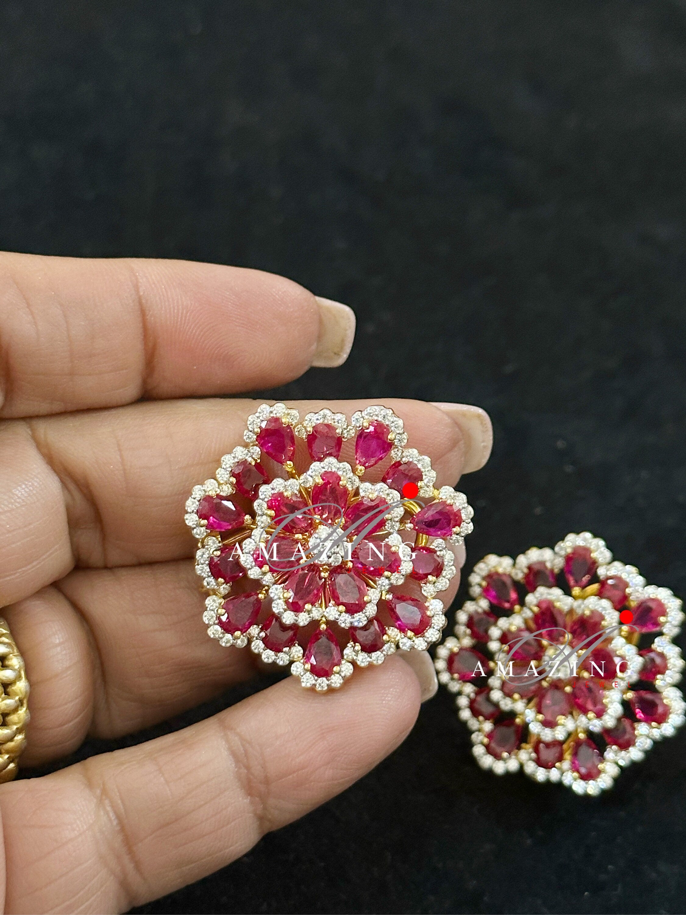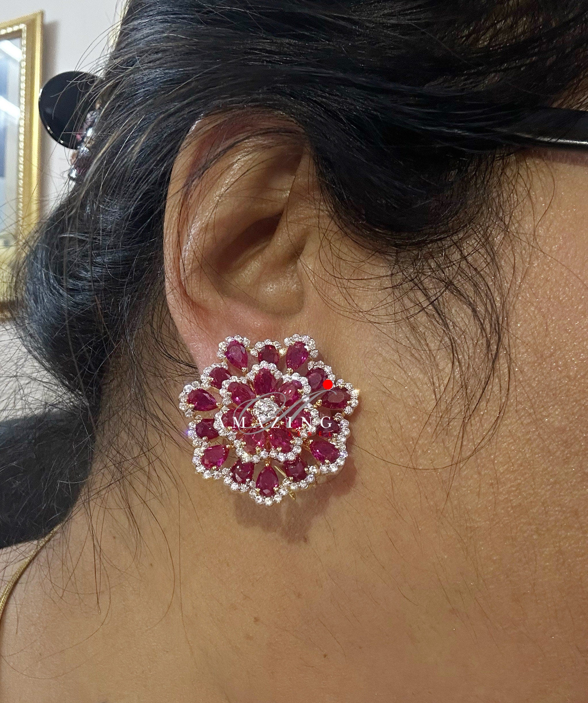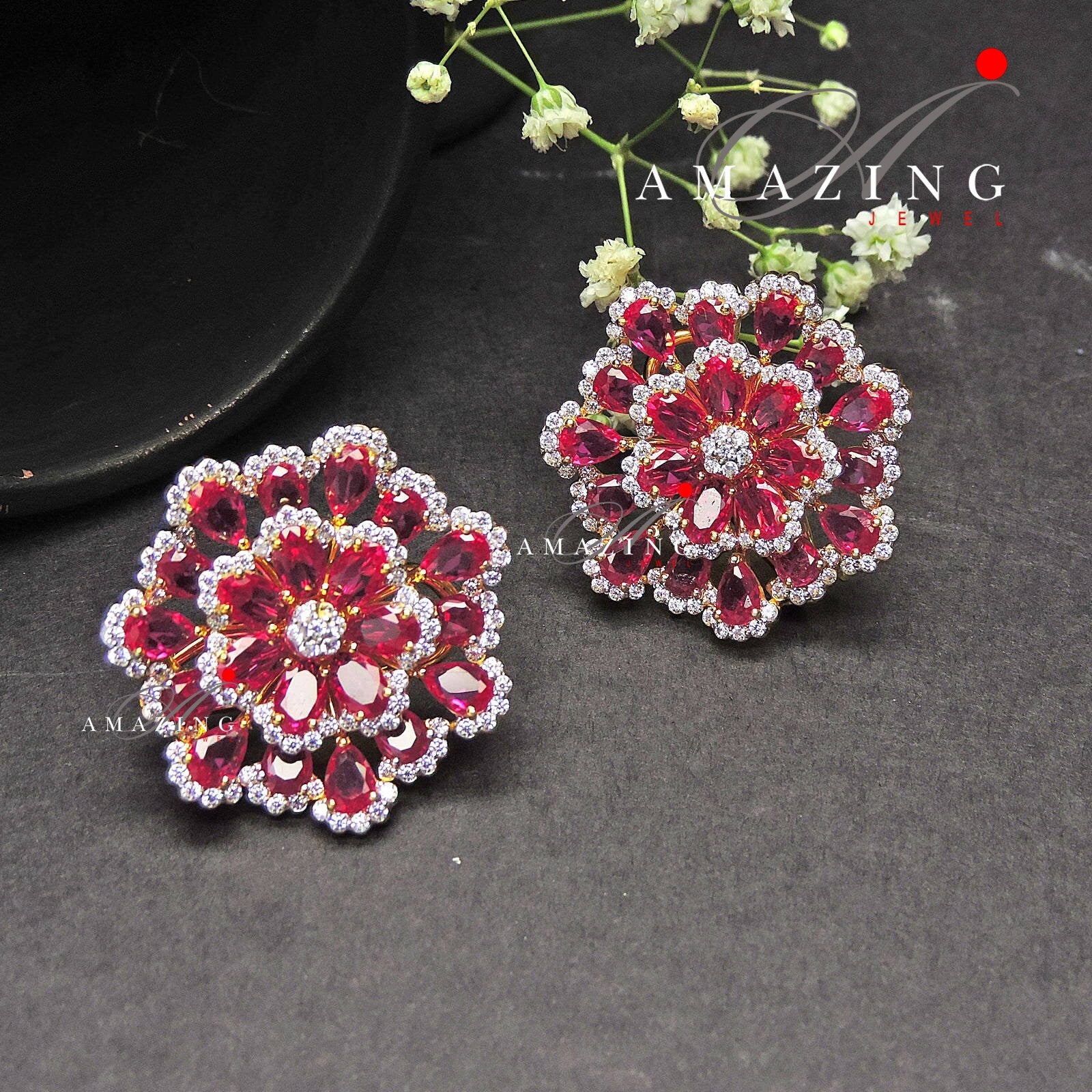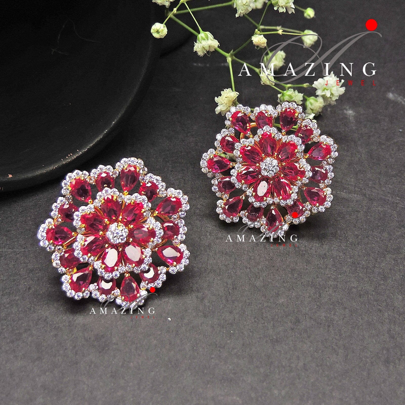 Silver Studded Cubic Zirconia Ruby Earring ,Swarovski Studs ,Bridal Jewelery ,Contemporary Jewelery , Silver Earring ,Fine Jewelery, Stud