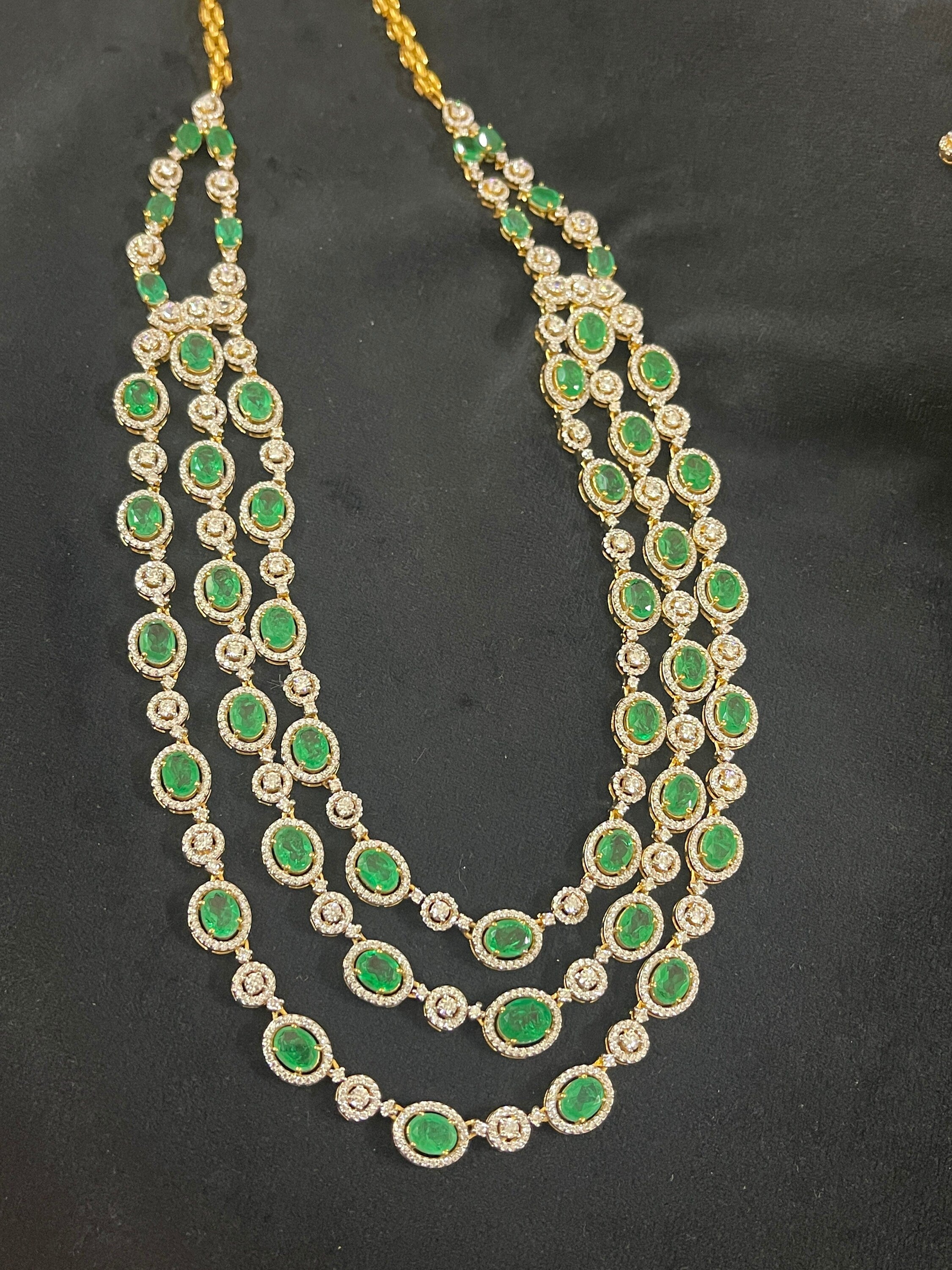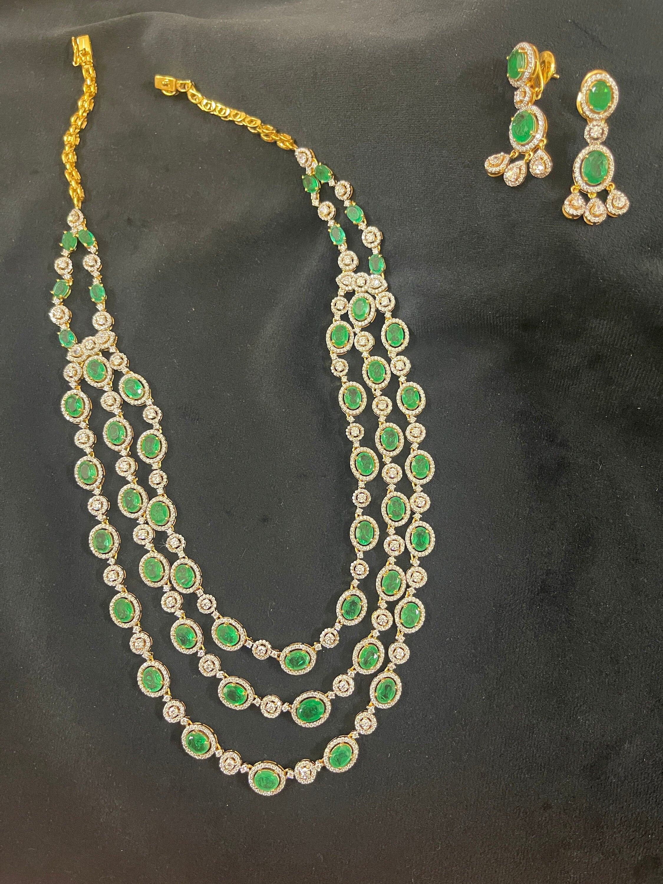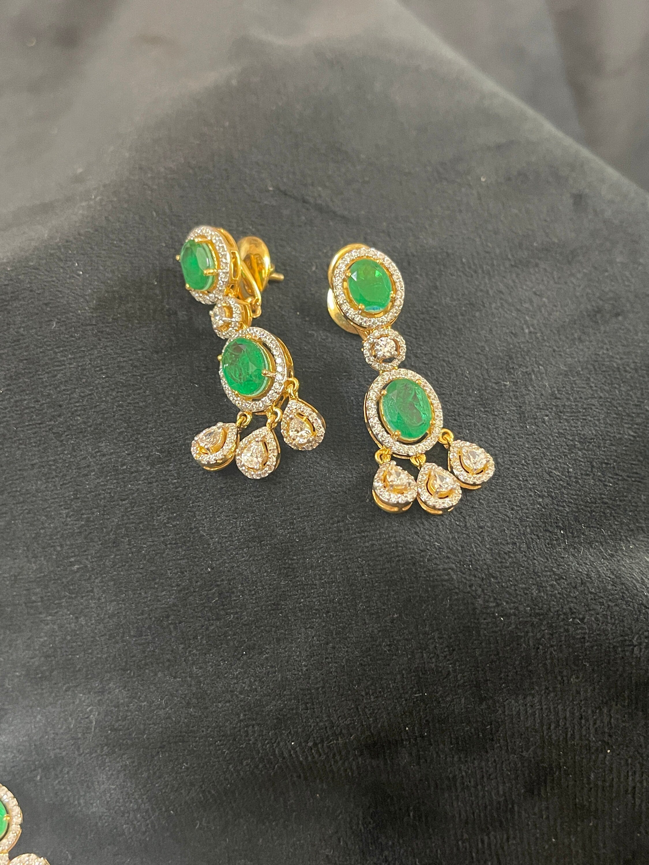 Silver Swarovski &Hydro Emerald Set Indian Wedding Jewelery Traditional Jewelery Bridal Jewelery 925 Silver Necklace Set Party Wear Jewelery