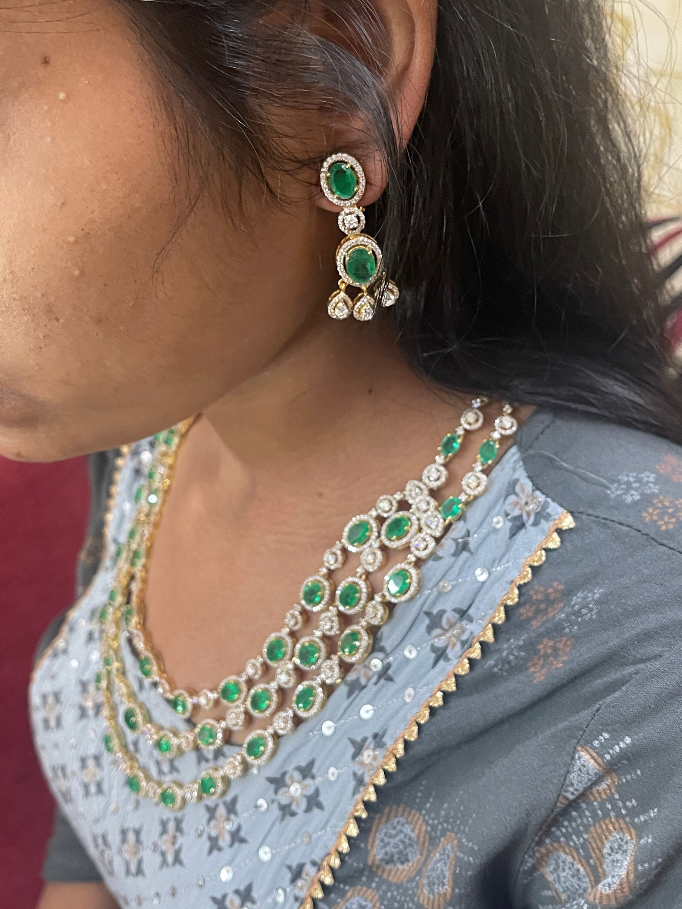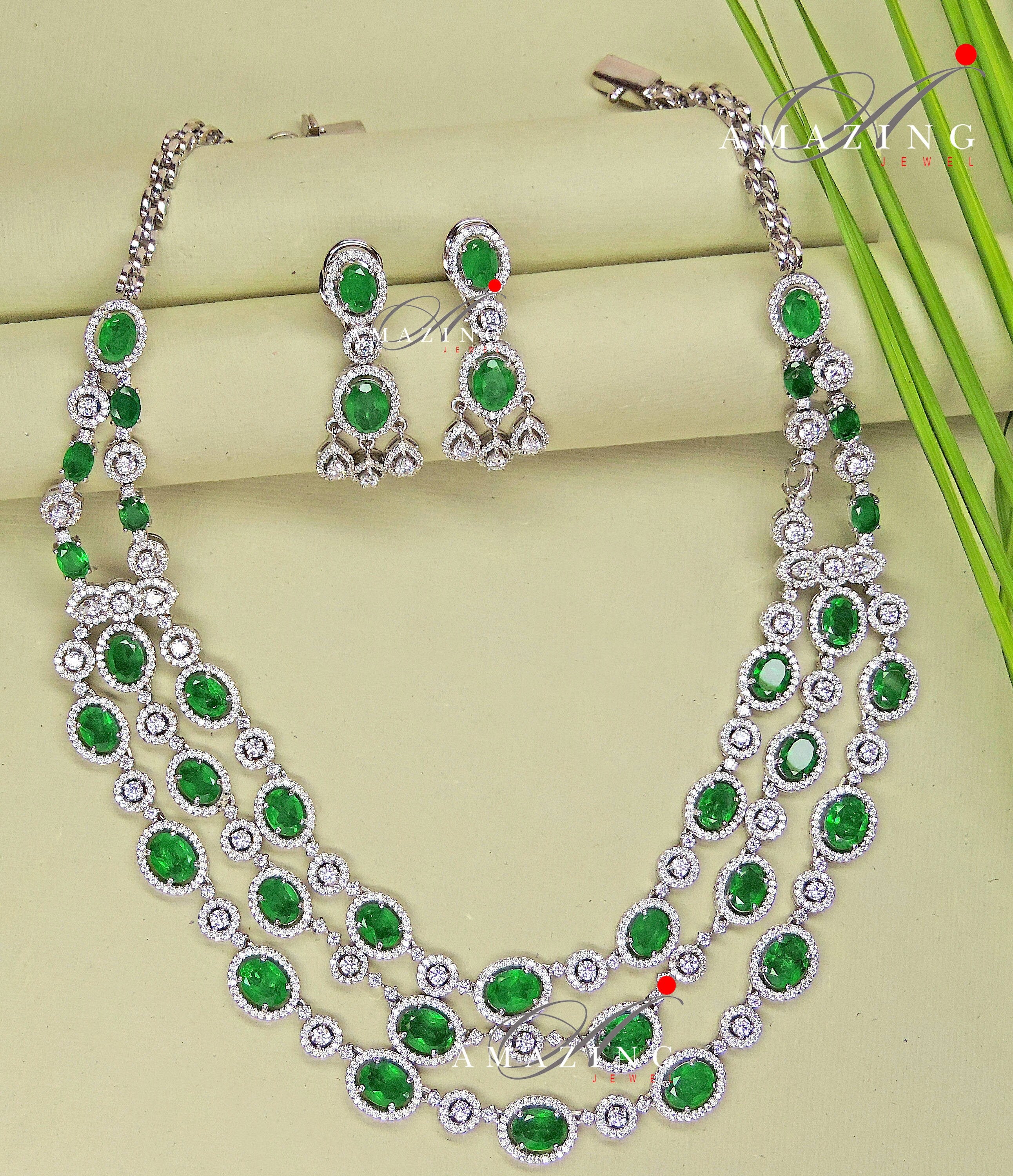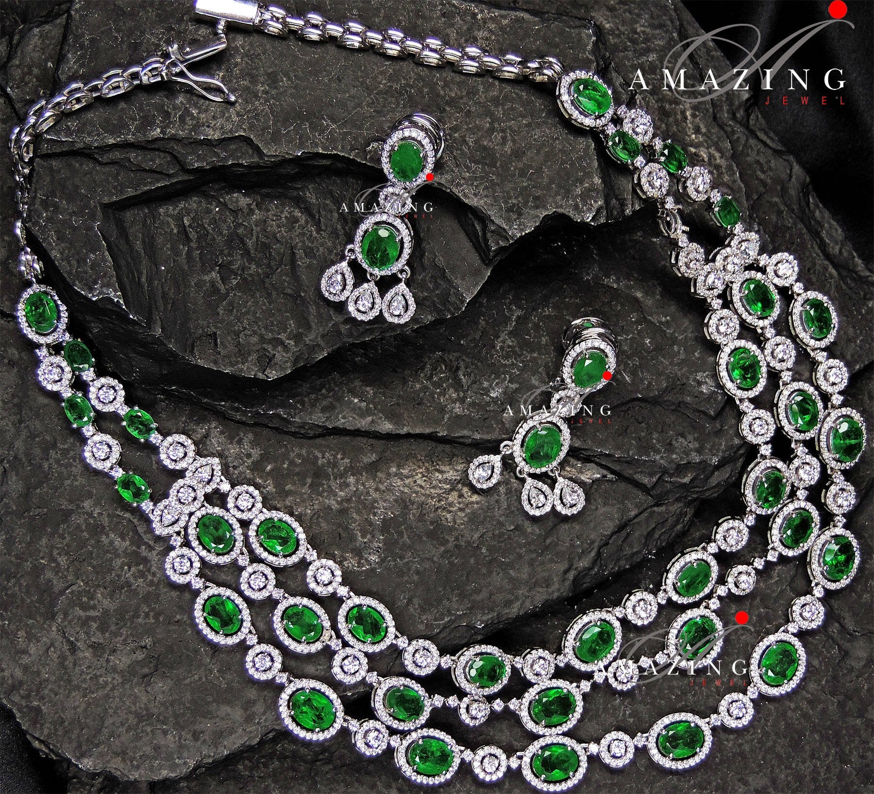 Silver Swarovski &Hydro Emerald Set Indian Wedding Jewelery Traditional Jewelery Bridal Jewelery 925 Silver Necklace Set Party Wear Jewelery